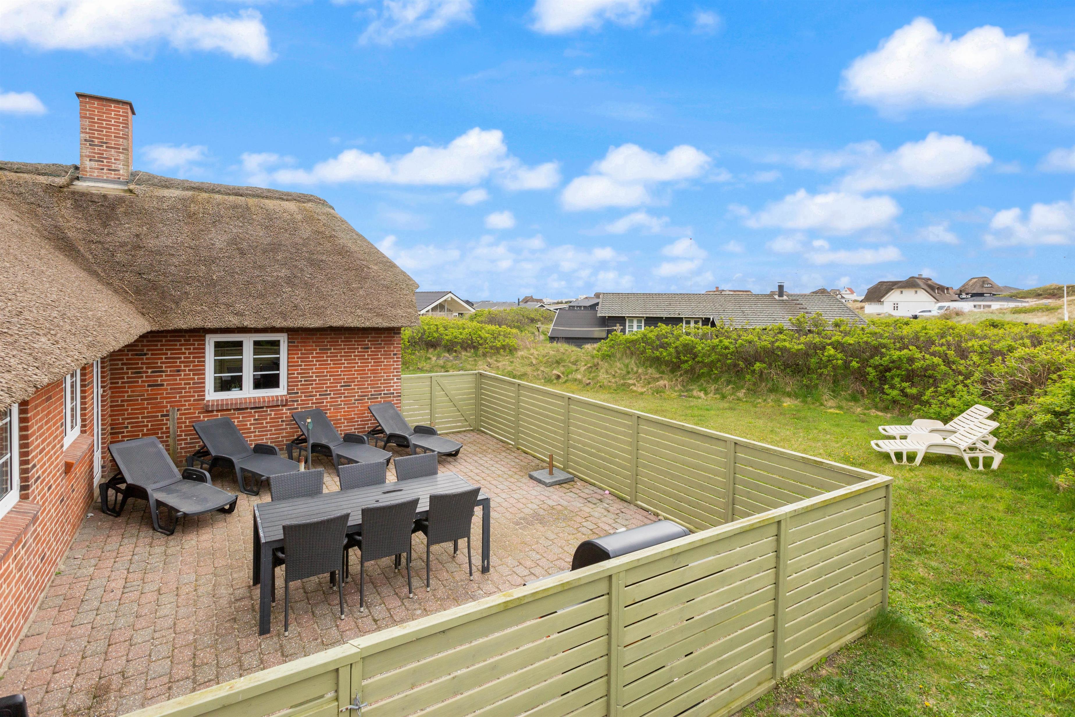 Drømmer I om at holde ferie med Vesterhavet som nabo? Så tag et kig på det skønne stråtækte sommerhus på Hafavej 20 i Søndervig. Her går feriedrømmene i opfyldelse! Sommerhuset med plads til otte personer ligger kun 150 meter fra Vesterhavet, er hyggeligt indrettet og er ovenikøbet udstyret med spabad og sauna. Og hunden? Den tager I også bare med på ferie.