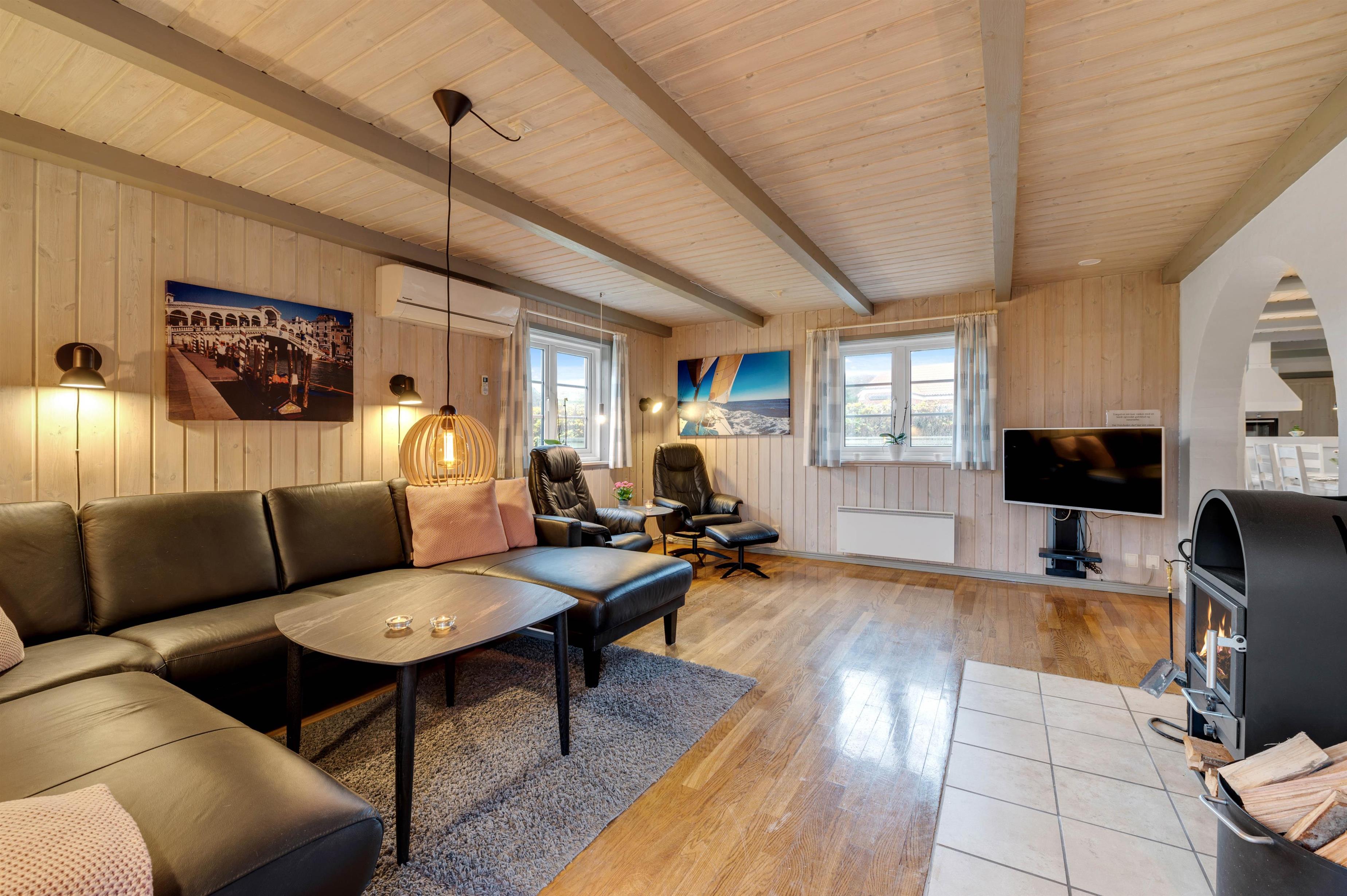 Der er noget ganske særligt over et sommerhus, der ligger med kort afstand til havet. Det er næsten som om, at bølgernes brus har en afsmittende effekt på husets sjæl. Der er i hvert fald dømt vaskeægte sommerhushygge i sommerhuset på Hafavej. Huset er indrettet i klassisk sommerhusstil med bløde møbler, panelvægge og synlige loftsbjælker. Og så er der naturligvis også en lun brændeovn, der sørger for at kaste sin stråleglans på feriedagene med et ekstra drys hygge.