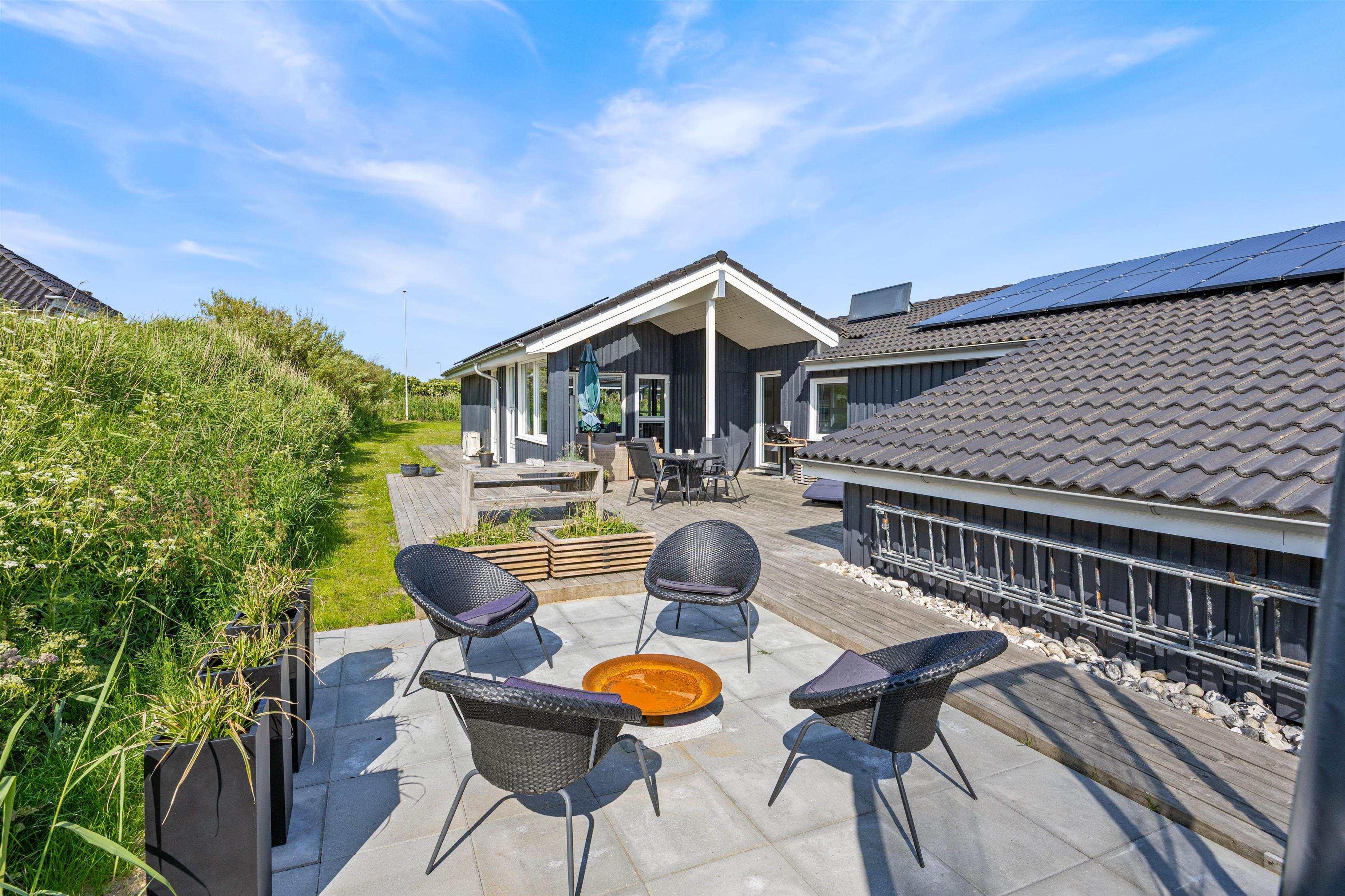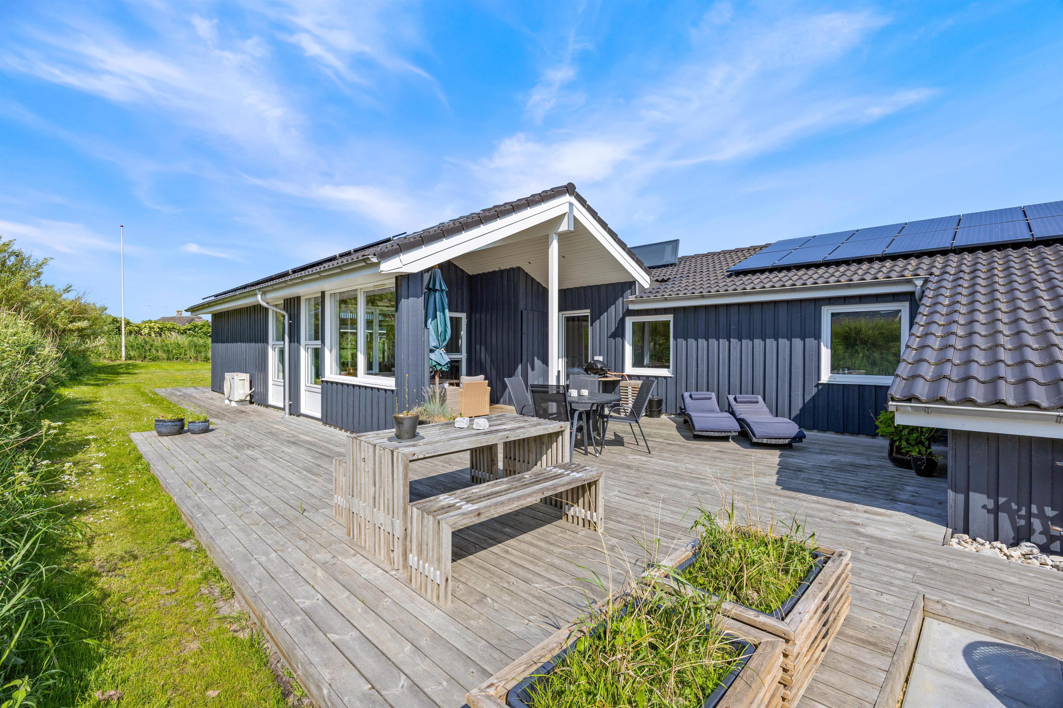 Omkring meget af sommerhuset løber en stor træterrasse, hvor I kan nyde de solrige feriedage fra havemøblerne og liggestolene. I kan også tilbringe ferieaftenerne på terrassen, hvor I kan tilberede en lækker middag på grillen.