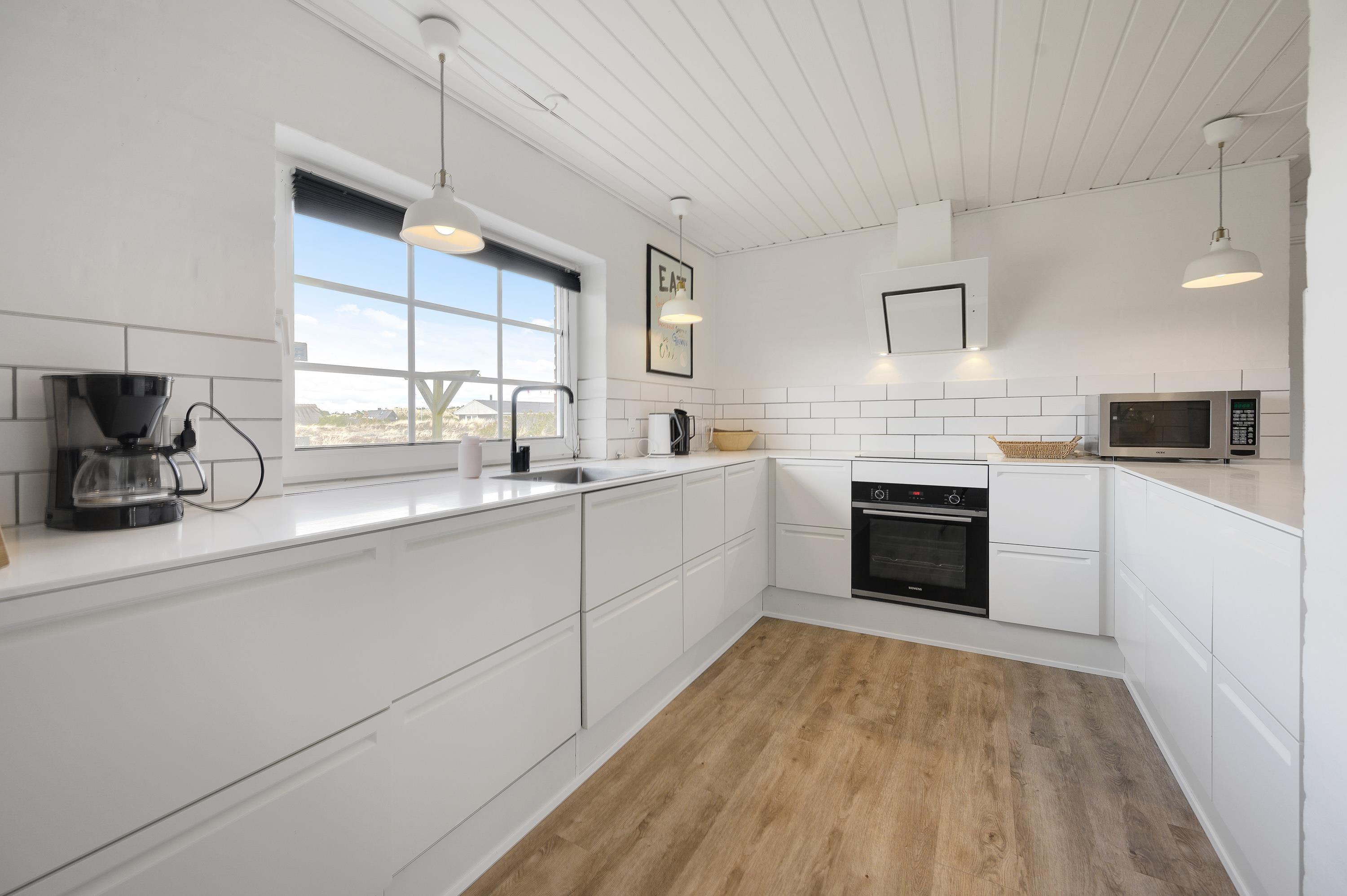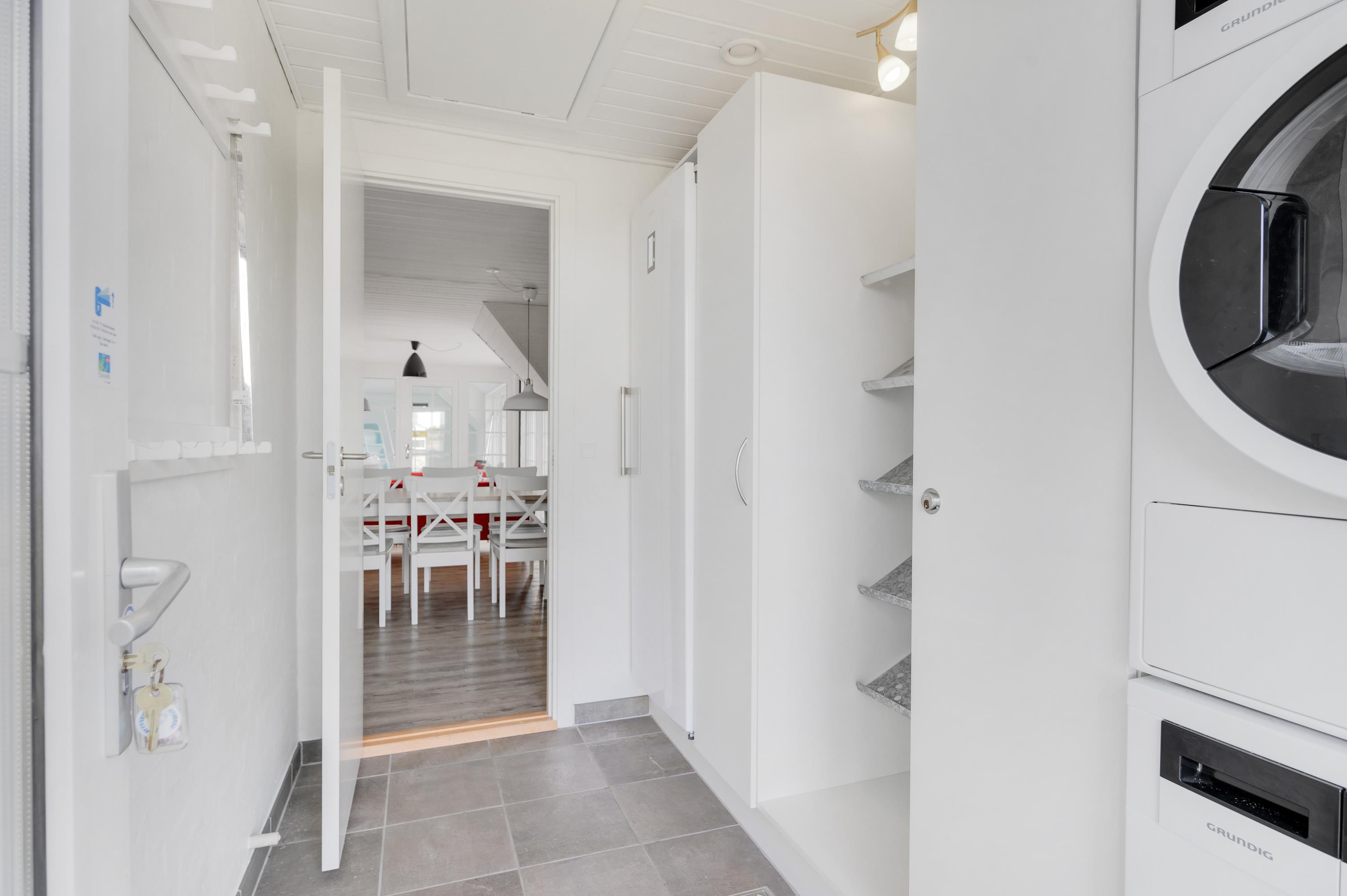 Det veludstyrede køkken har en opvaskemaskine, tørretumbler og vaskemaskine, hvilket gør det nemt at holde styr på de praktiske gøremål under ferien.
