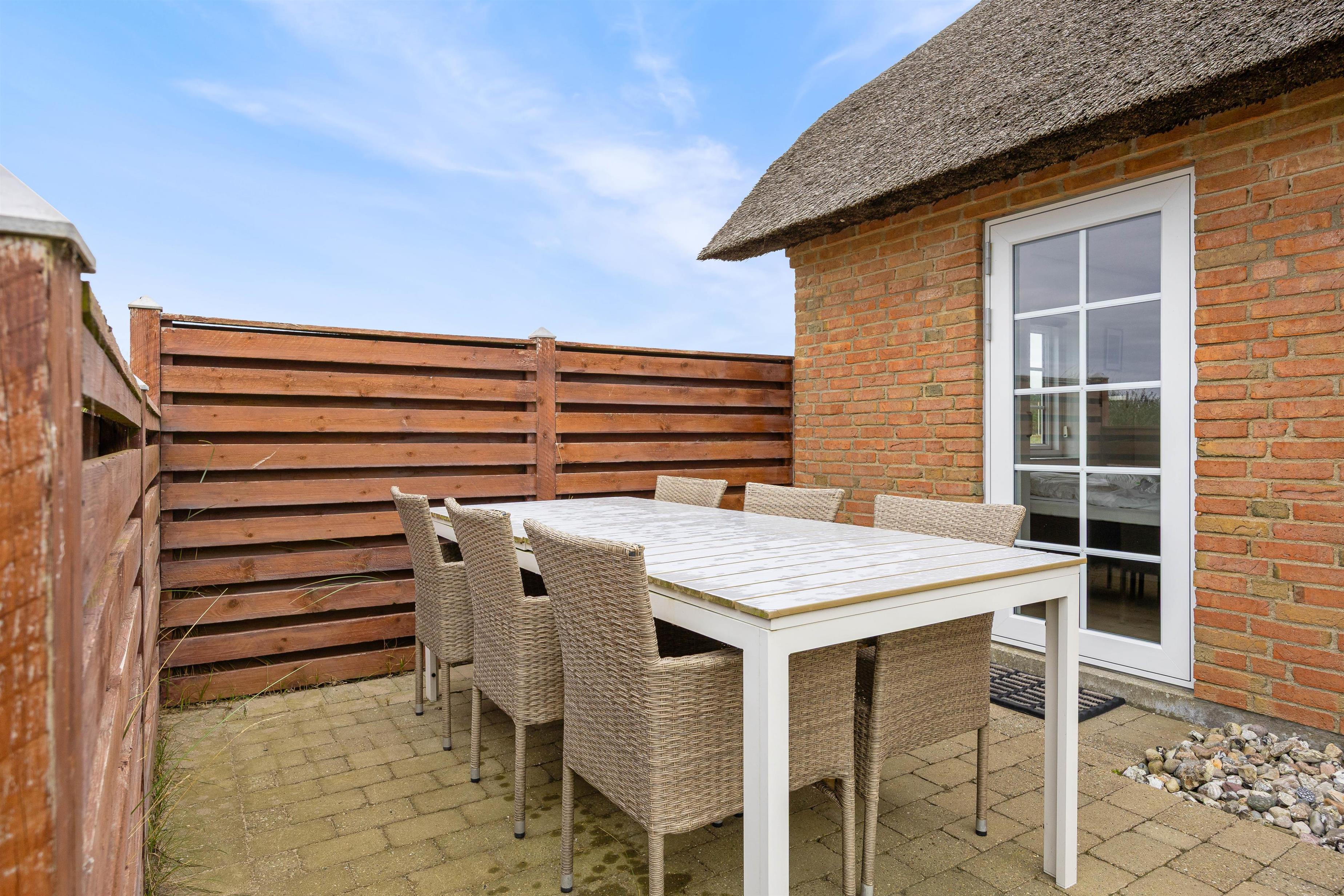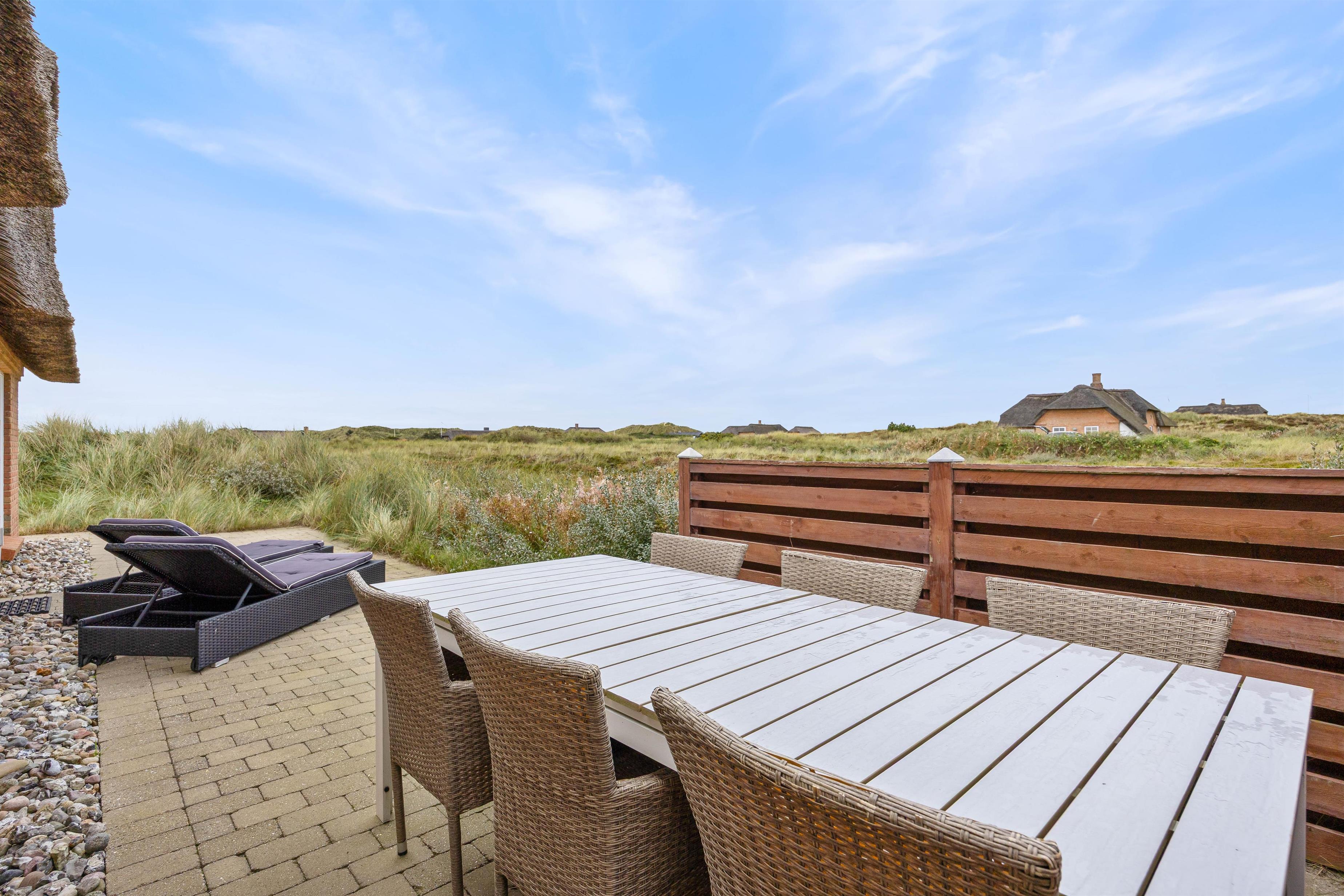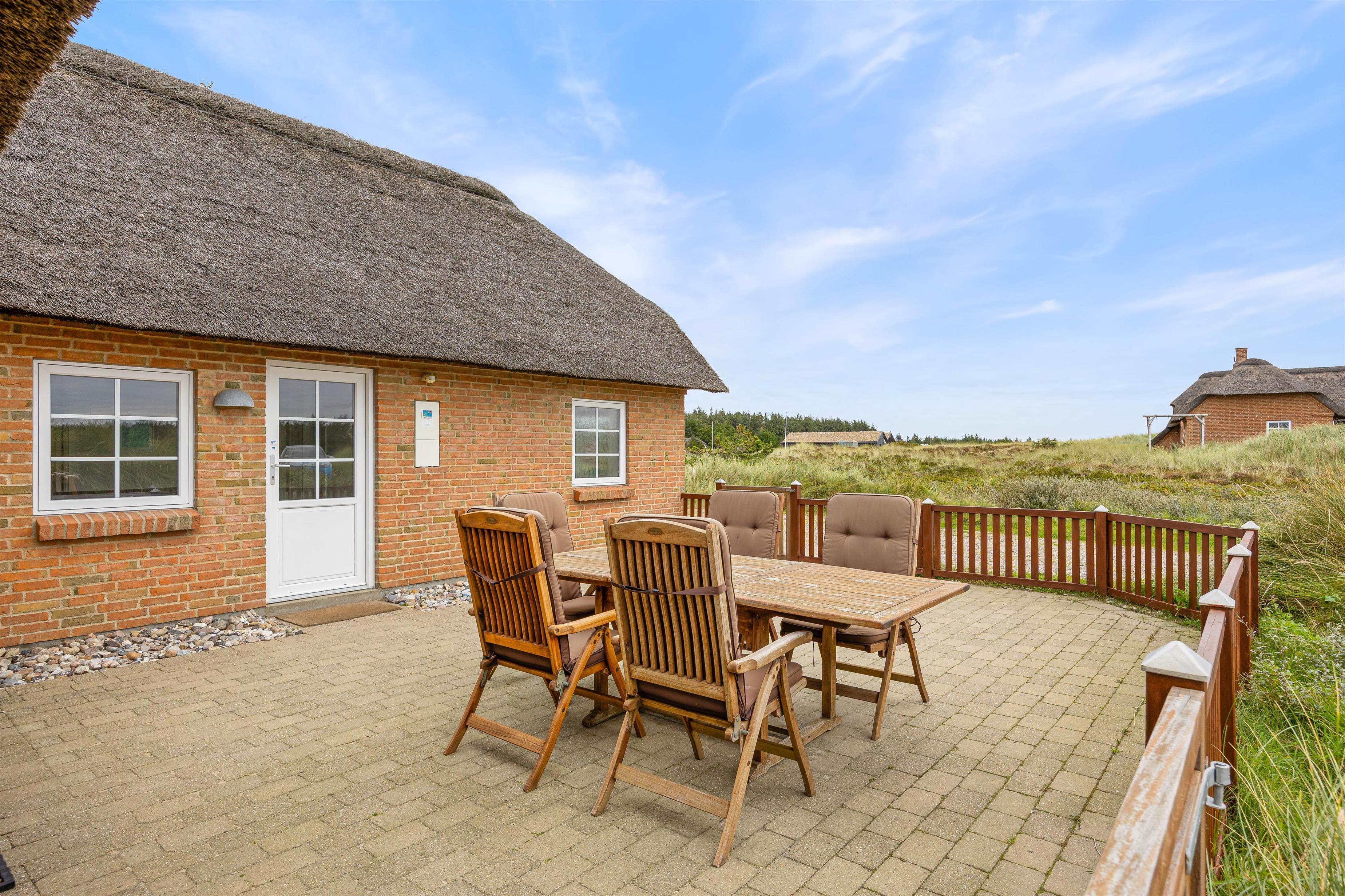 Hvis I ønsker at et lækkert og charmerende feriehus som er opført i 2014 i gode materialer, så behøver I ikke at søge mere. Dette feriehus på Jolanthavej 8A er charmerende indrettet, der er gode terrasser, og så er beliggenheden helt unik; kun 400 meter fra Vesterhavet. Her er det tilladt for op til seks personer og to hunde at holde en dejlig ferie, og som prikken på i'et, er der gratis slutrengøring på huset.