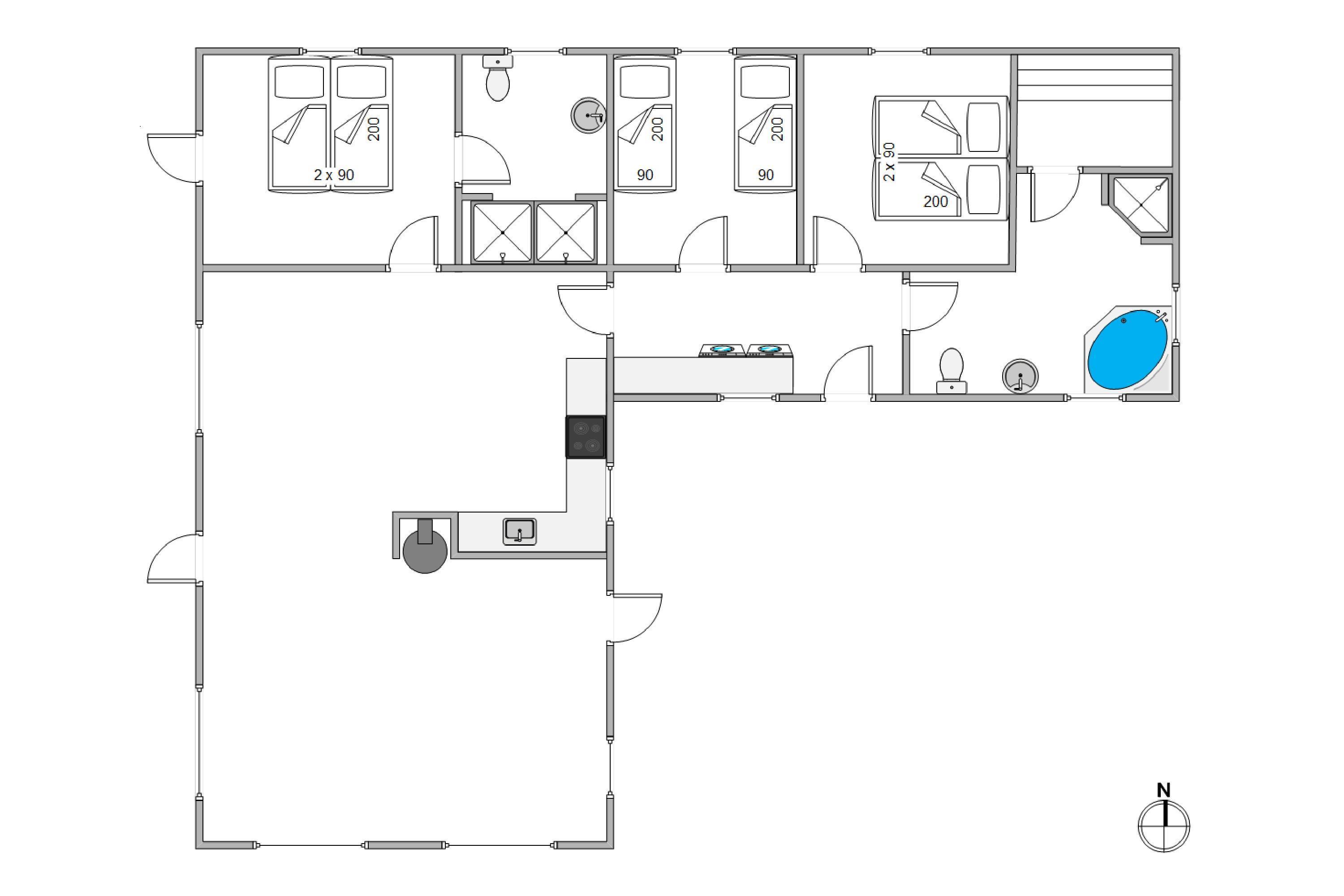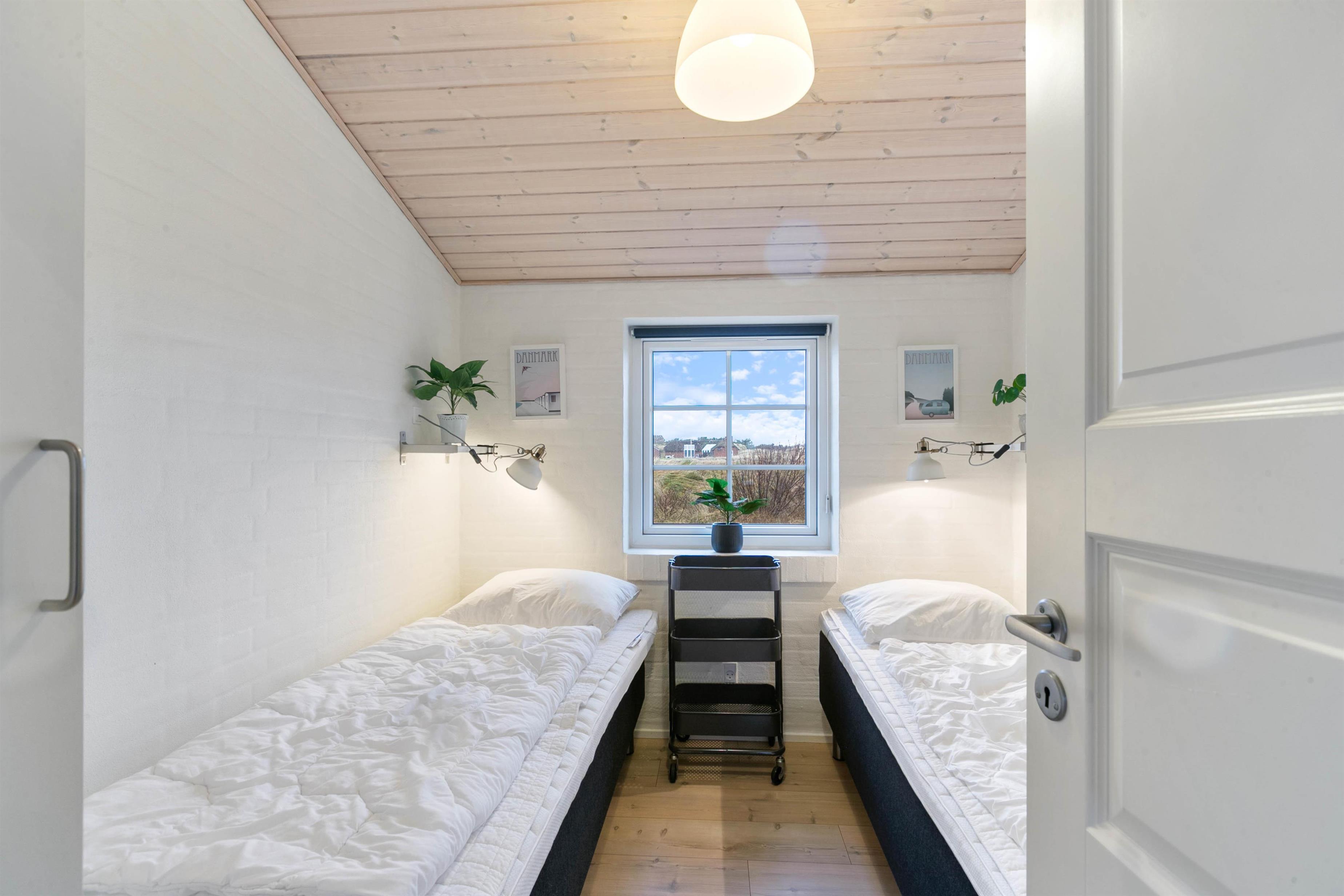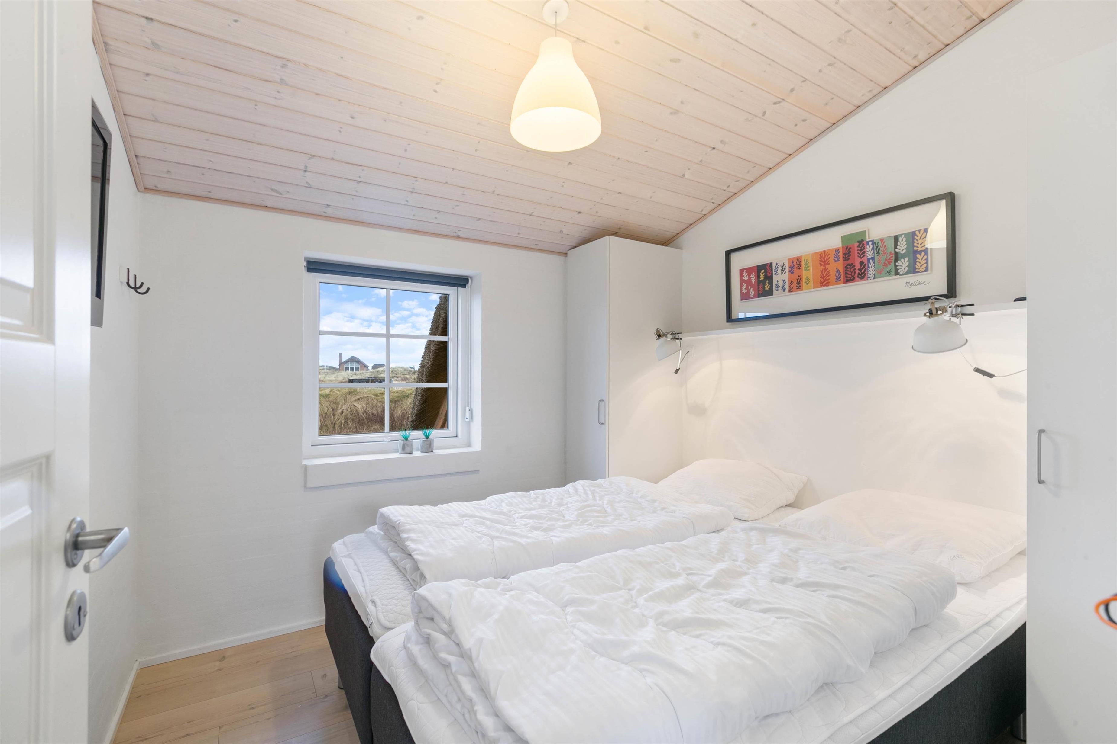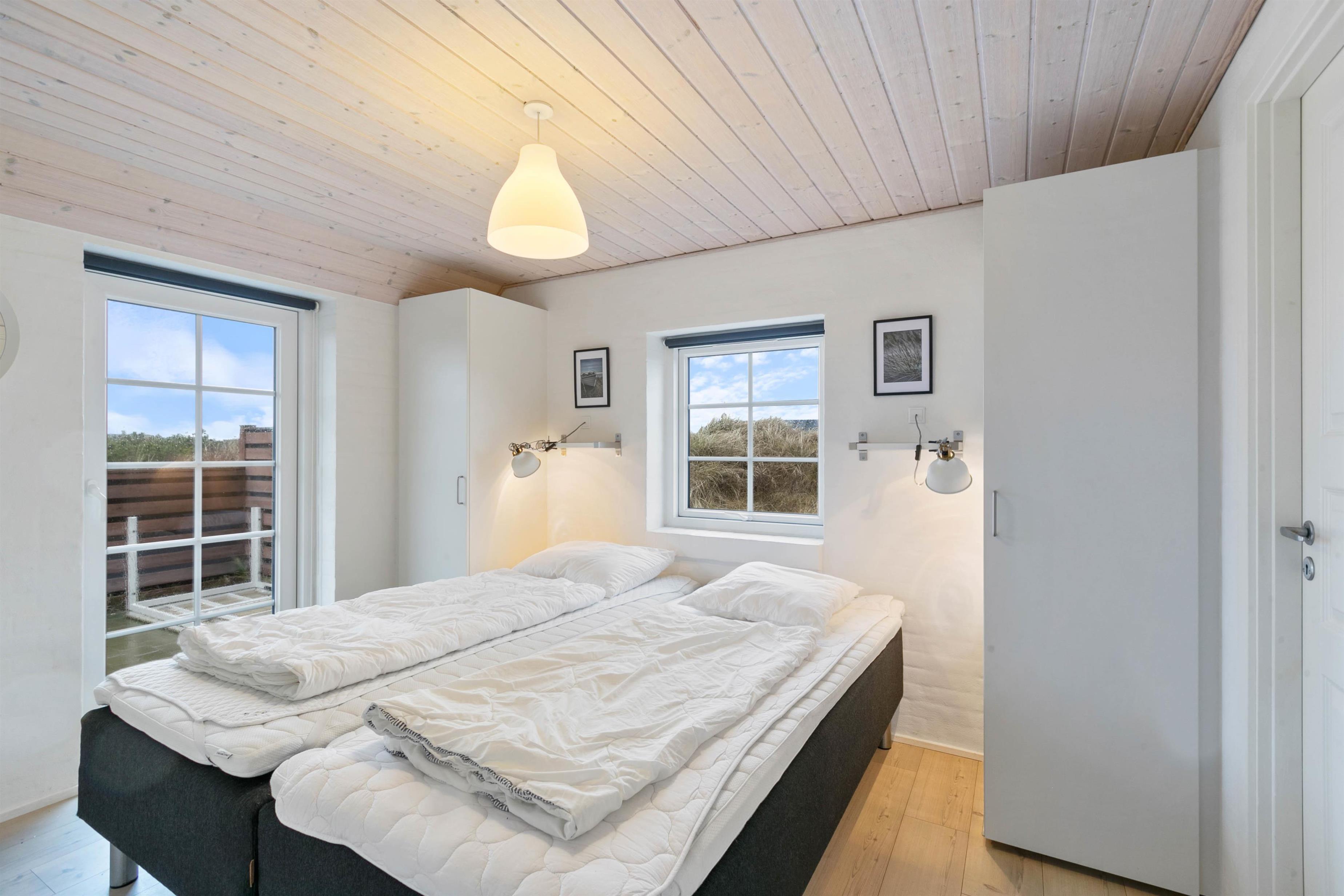 Sommerhuset seks sovepladser fordeler sig på tre gode soveværelser, hvoraf to er med en dobbeltseng og det sidste værelse med to enkeltsenge. Her er der god plads, hvilket er med til at sikre jer alle et safe space, hvor I kan trække jer tilbage og slappe af.