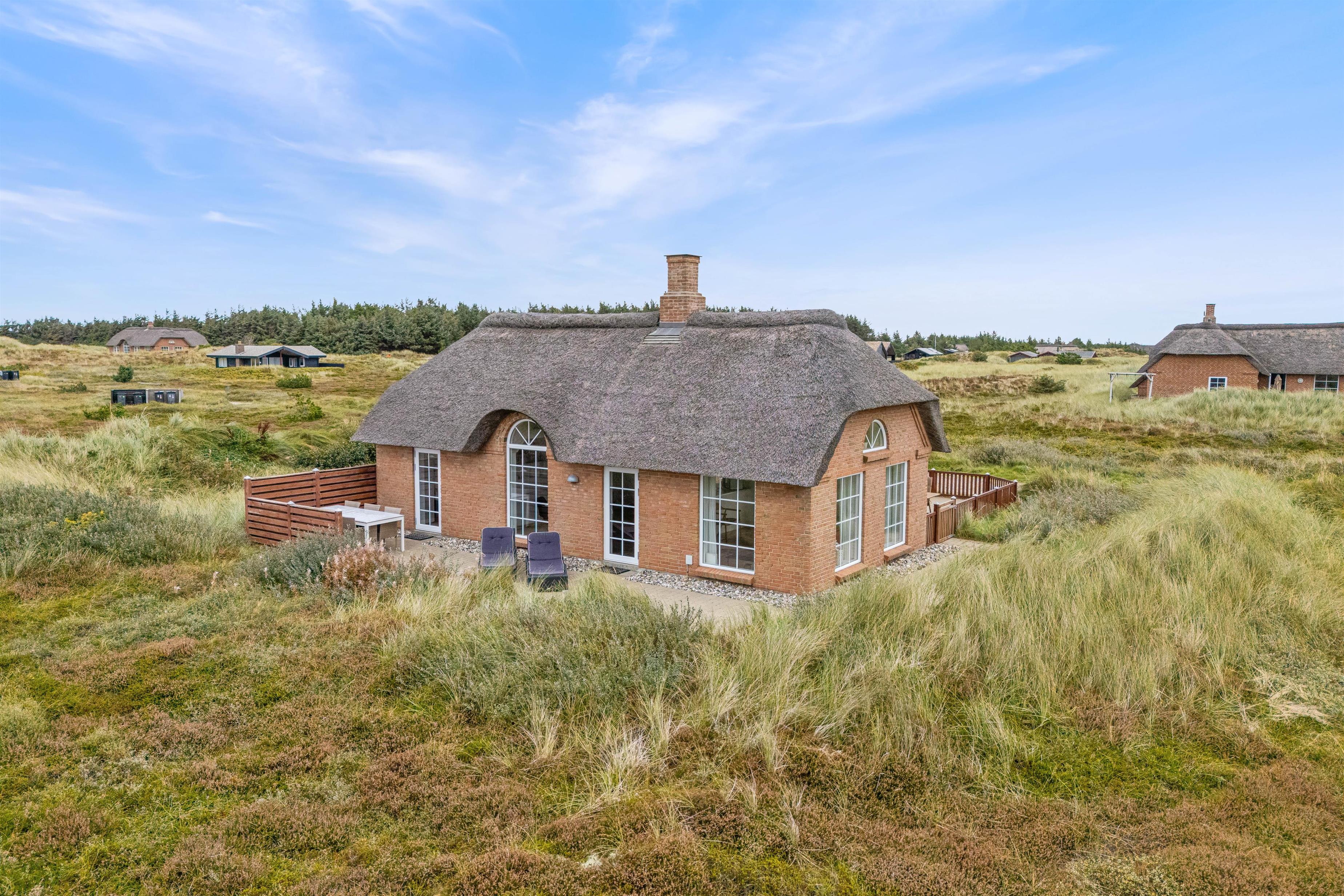 Flot hus med stråtag bygget i 2014 på naturgrund tæt på havet