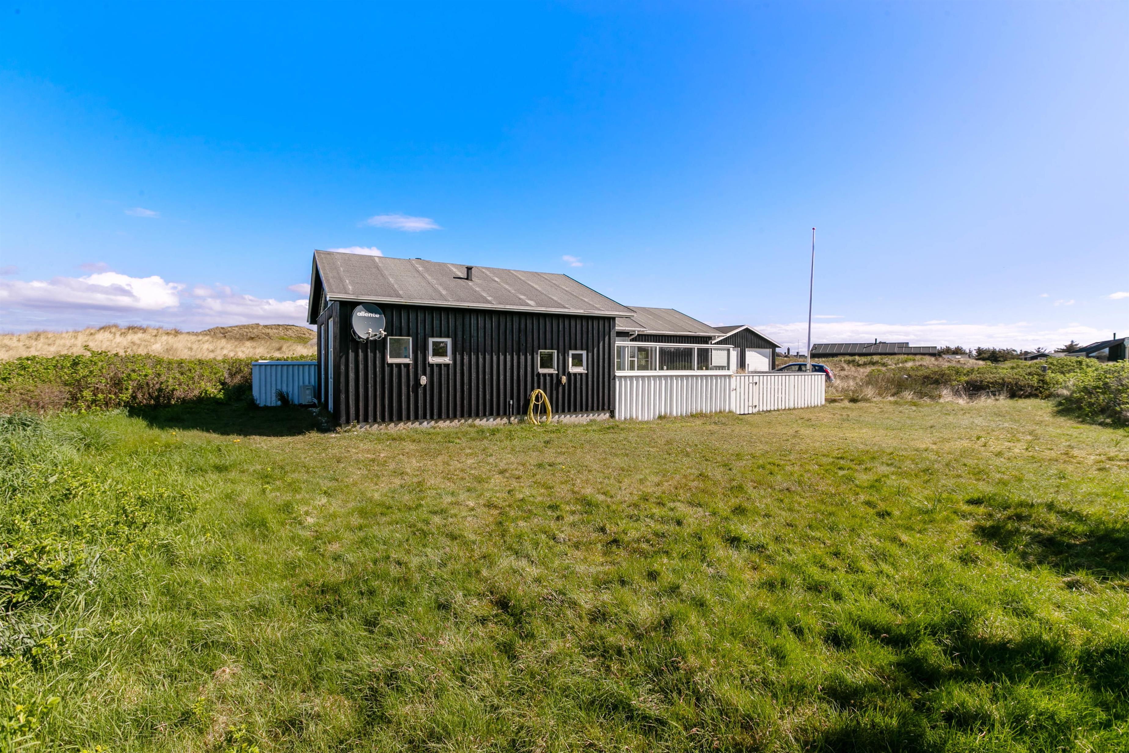 For enden af en stikvej med adressen Nordsøvej 416 finder I dette skønne træsommerhus. Den lyse og lækre indretning med de mange vinduer giver feriehjemmet en behagelig atmosfære, og den fantastiske beliggenhed tæt på Vesterhavet sammen med den børne - og hundevenlige lukkede terrasse fuldender den perfekte ferie.