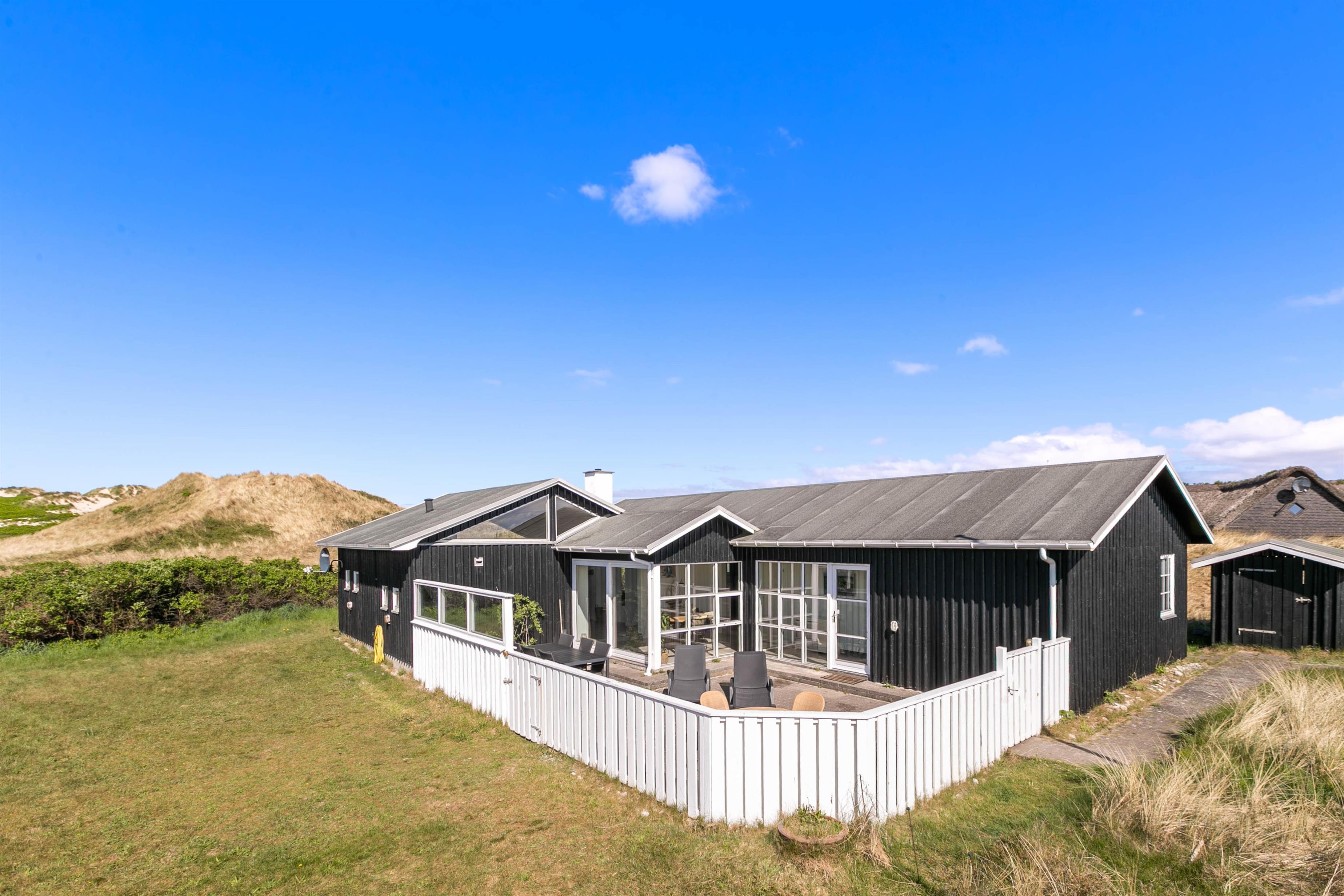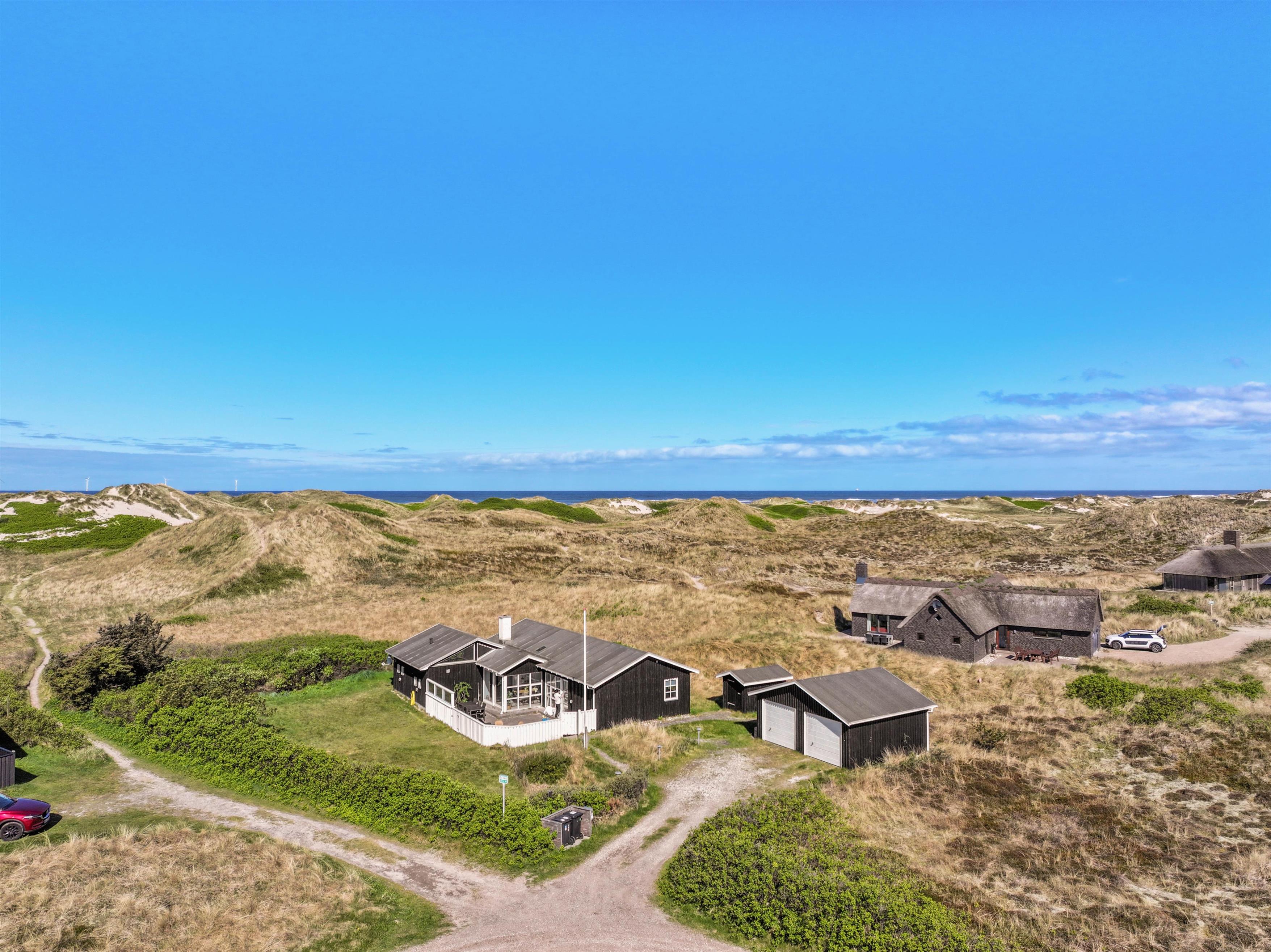 De mange, store vinduer lader masser af lys slippe ind og sørger for en behagelig og fredfyldt atmosfære, så ferien kan nydes for fulde drag. Og ikke nok med det, så får I også en fantastisk udsigt ud over det åbne, uberørte klitlandskab fra sofaen og spisebordet.