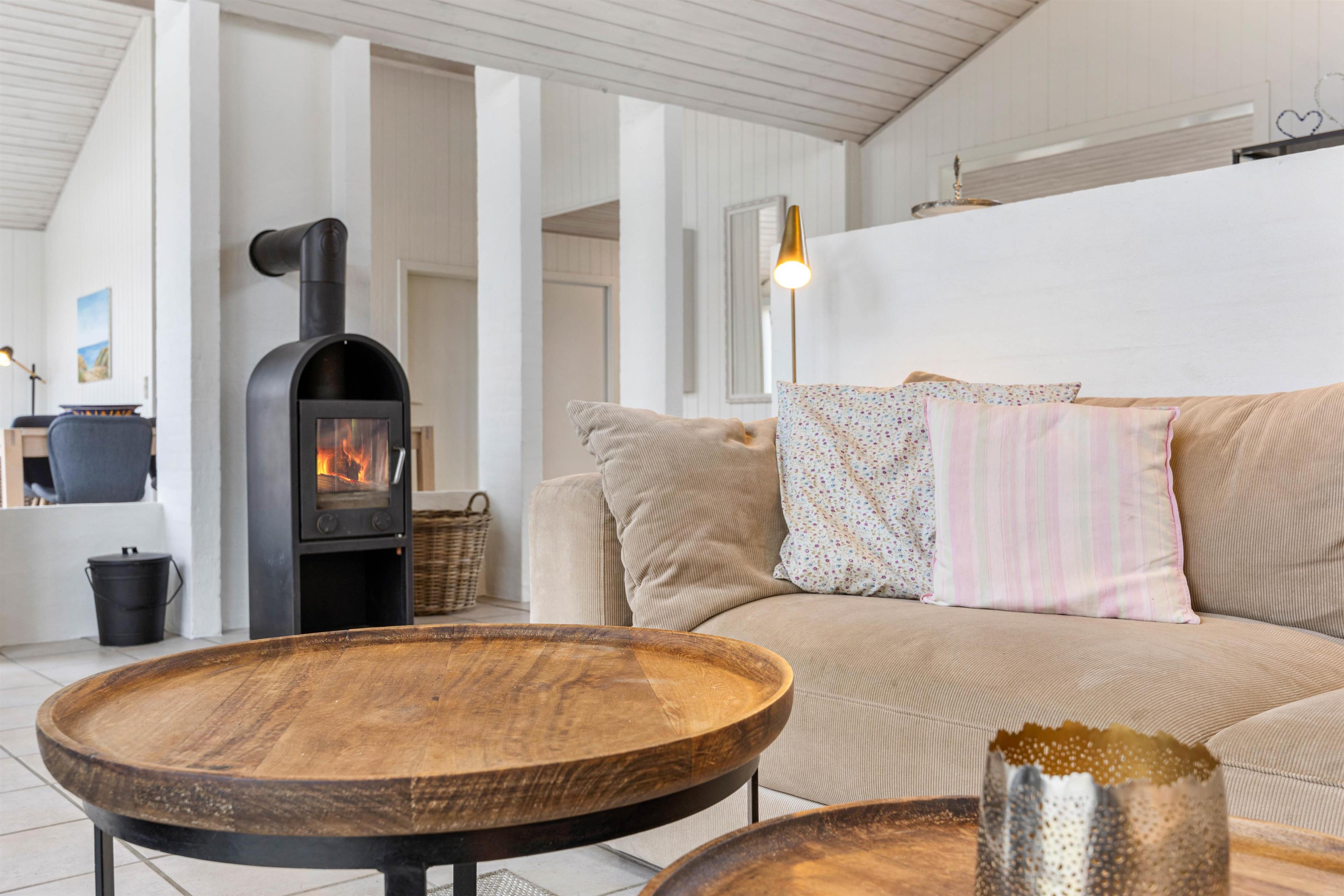 I de åbne omgivelser kan I rigtig komme hinanden ved og nyde selskabet, nu hvor I endelig er samlet og har tid til at være sammen. I køkkenet er der god plads til, at I sammen kan kokkerere aftenens måltid, eller der kan slappes af på den behagelige sofa - alt imens den knitrende brændeovn sørger for varme og masser af hyggelig feriestemning.