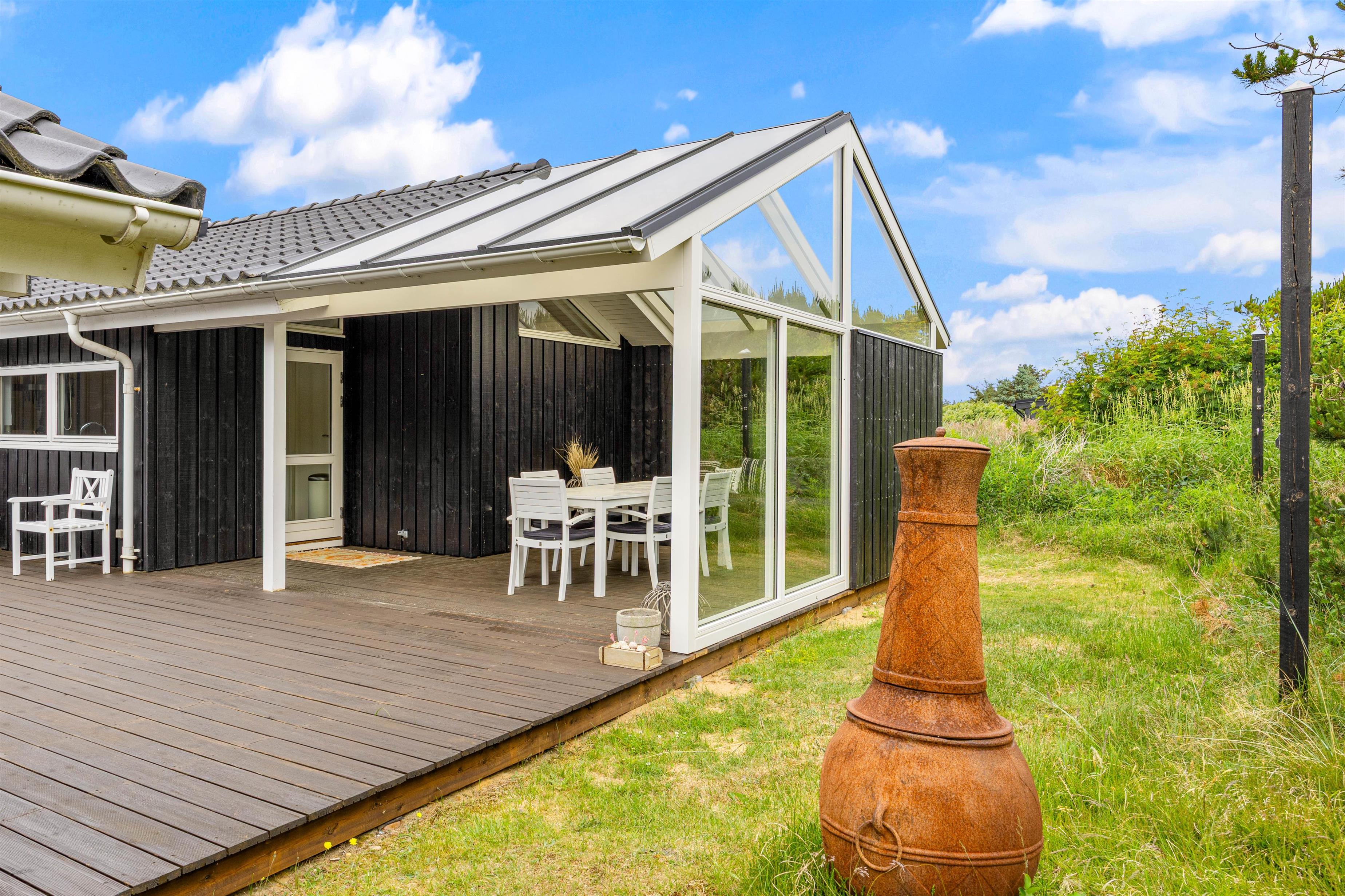 Her op Hvidbjergvej 21 finder I et flot kvalitetshus i Søndervig beliggende på en fredfyldt naturgrund. Der er en skøn terrasse omkring feriehuset, der er delvist overdækket og delvist afskærmet. Det er moderne indrettet og er veludstyret og har b.la. en god brændeovn, gratis internet og spa. I stuen er der en hyggelig alkove, og helt generelt ligger huset op til masser af hygge og afslapning, der i sidste ende vil give jer en masse gode minder i længe vil huske.