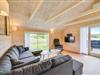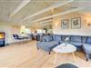 Fra alrummet har I udsigt til den flotte natur gennem store vinduesfronter på alle sider. I hjørnet står brændeovnen, som med sin knitrende ild altid er garanti for god feriestemning – både på en regnfuld dag med kortspil rundt om spisebordet og på en sen aften, hvor der slappes af på sofaen med en god bog og et glas rødvin.