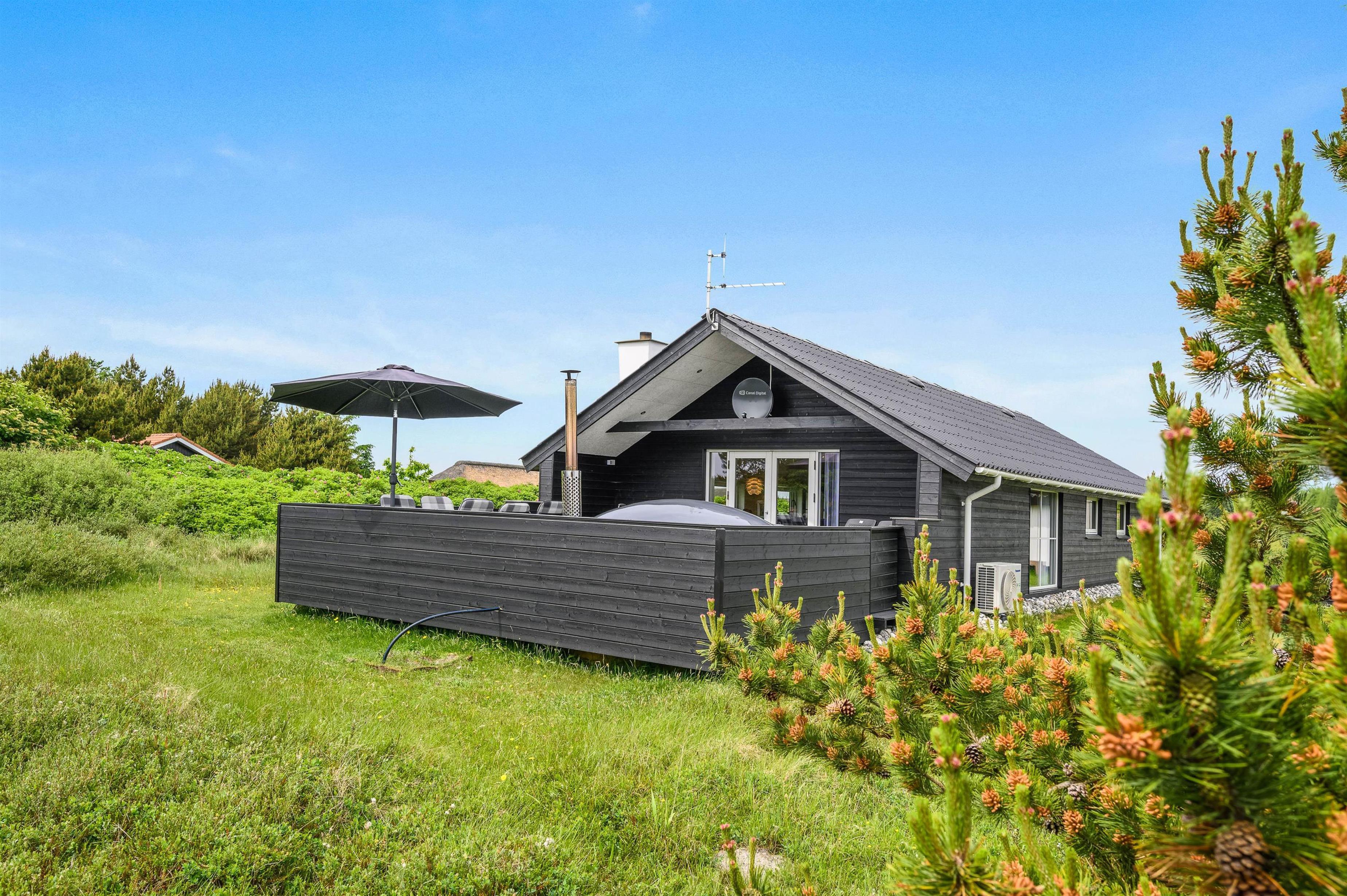 På en naturskøn plet kun 600 meter fra Søndervigs smukke sandstrand finder I dette flotte sommerhus. Her kan I holde ferie med op til 6 personer. Sommerhuset fremstår velholdt og indbydende efter renoveringen i 2021, og på terrassen gemmer sig et ekstra feriehighlight – nemlig et lækkert vildmarksbad!