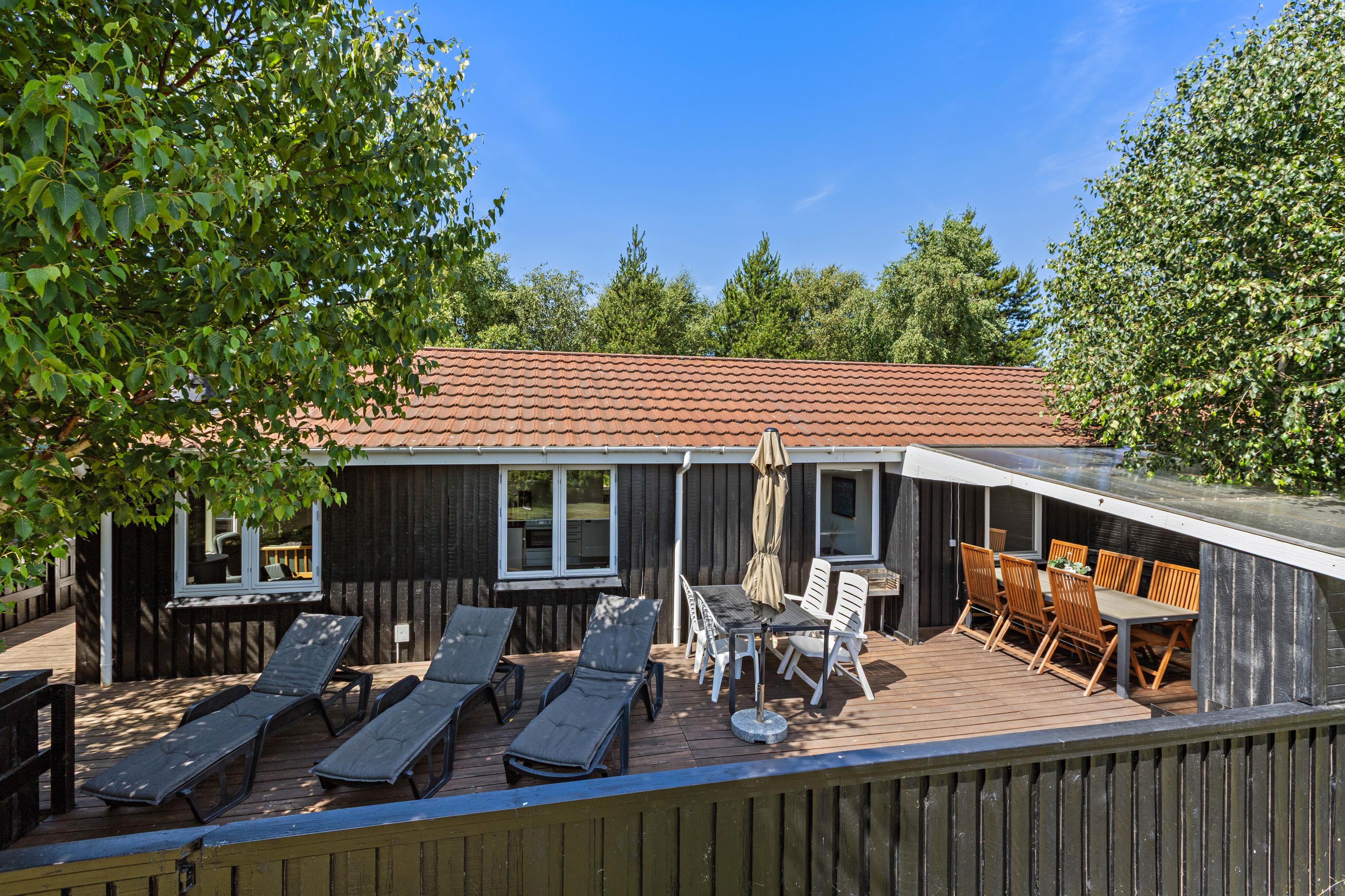 Sommerhuset er indrettet med omtanke og har alt, hvad der skal til for at holde en god ferie. Det er lyst og rummeligt, og det er nemt at føle sig hjemme her. Terrassen er en herlig forlængelse af huset, og her vil I uden tvivl tilbringe mange gode feriestunder sammen. Den lukkede terrasse gør at I uden bekymring kan lade både hund og små børn drøne rundt uden at frygte, de bliver væk.