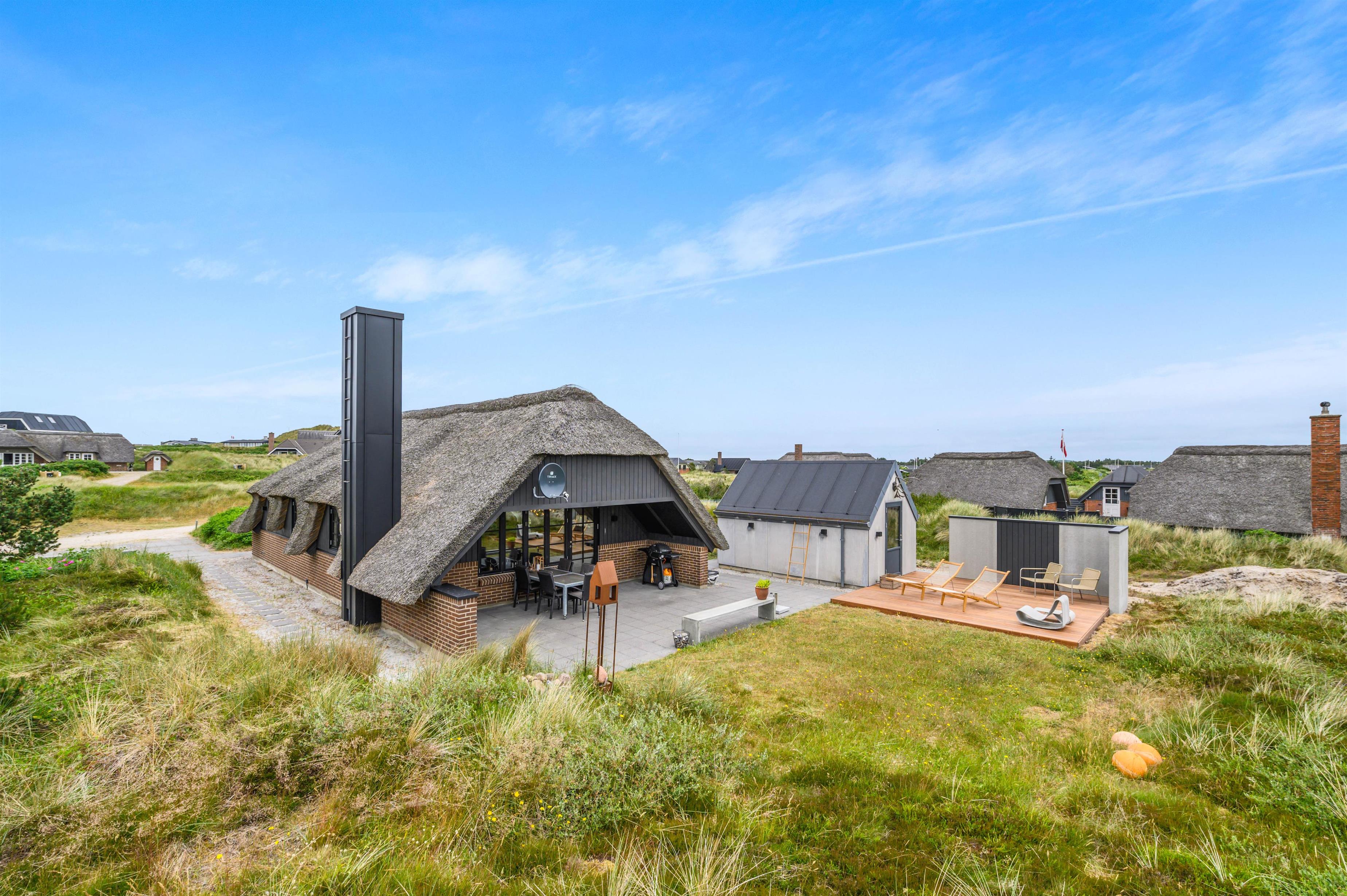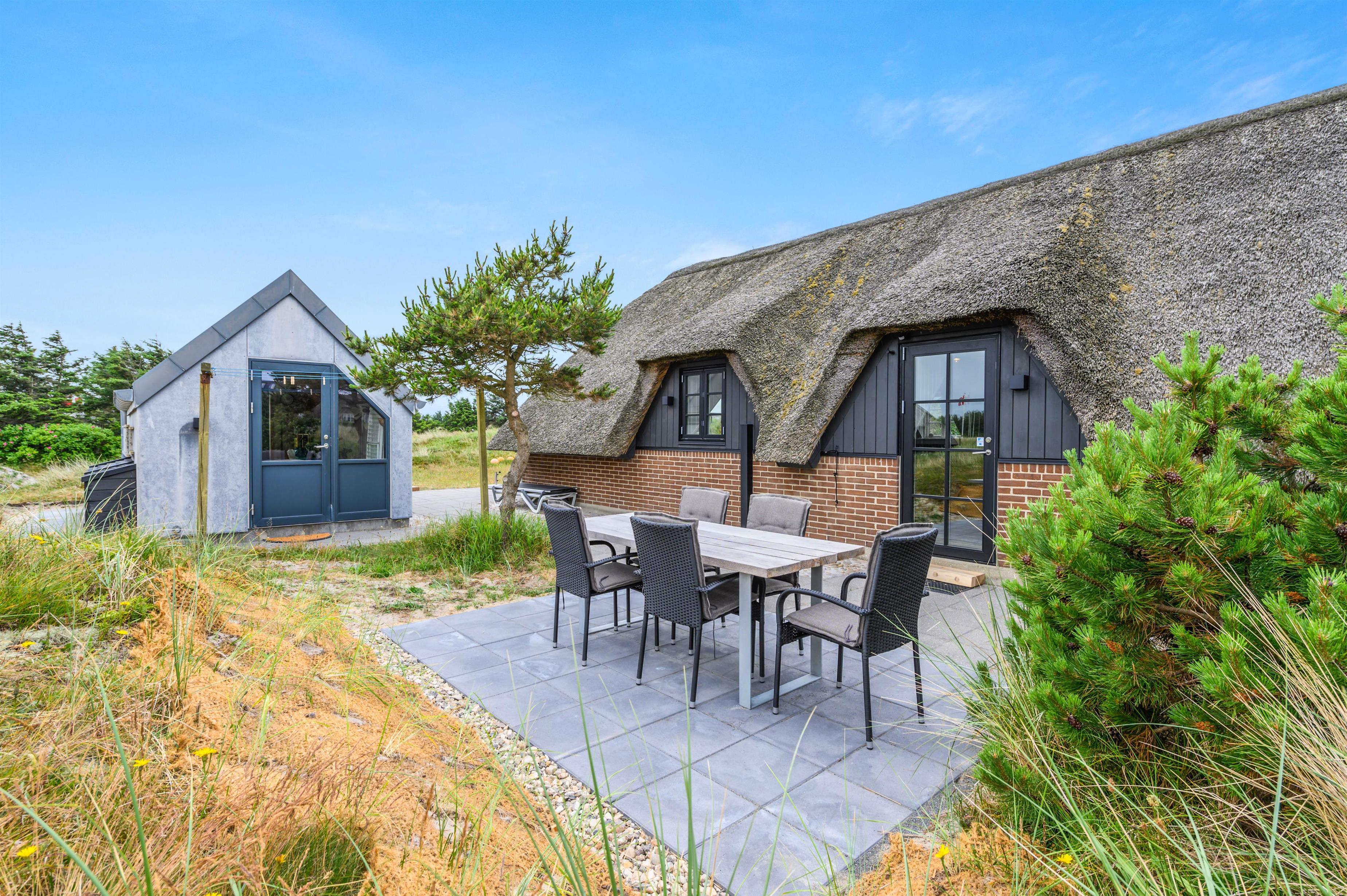 Det 88 m2 store sommerhus passer med sit stråtækte tag godt i ind klitlandskabet og den fine natur. Takket være en en gennemgående renovering i 2021 er 80'er-huset forvandlet til en dejlig, lys ferieperle, som danner en god ramme om en skøn ferie.