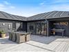 Nedsænket terrasse med sauna, udendørs spabad, udebruser og udekøkken