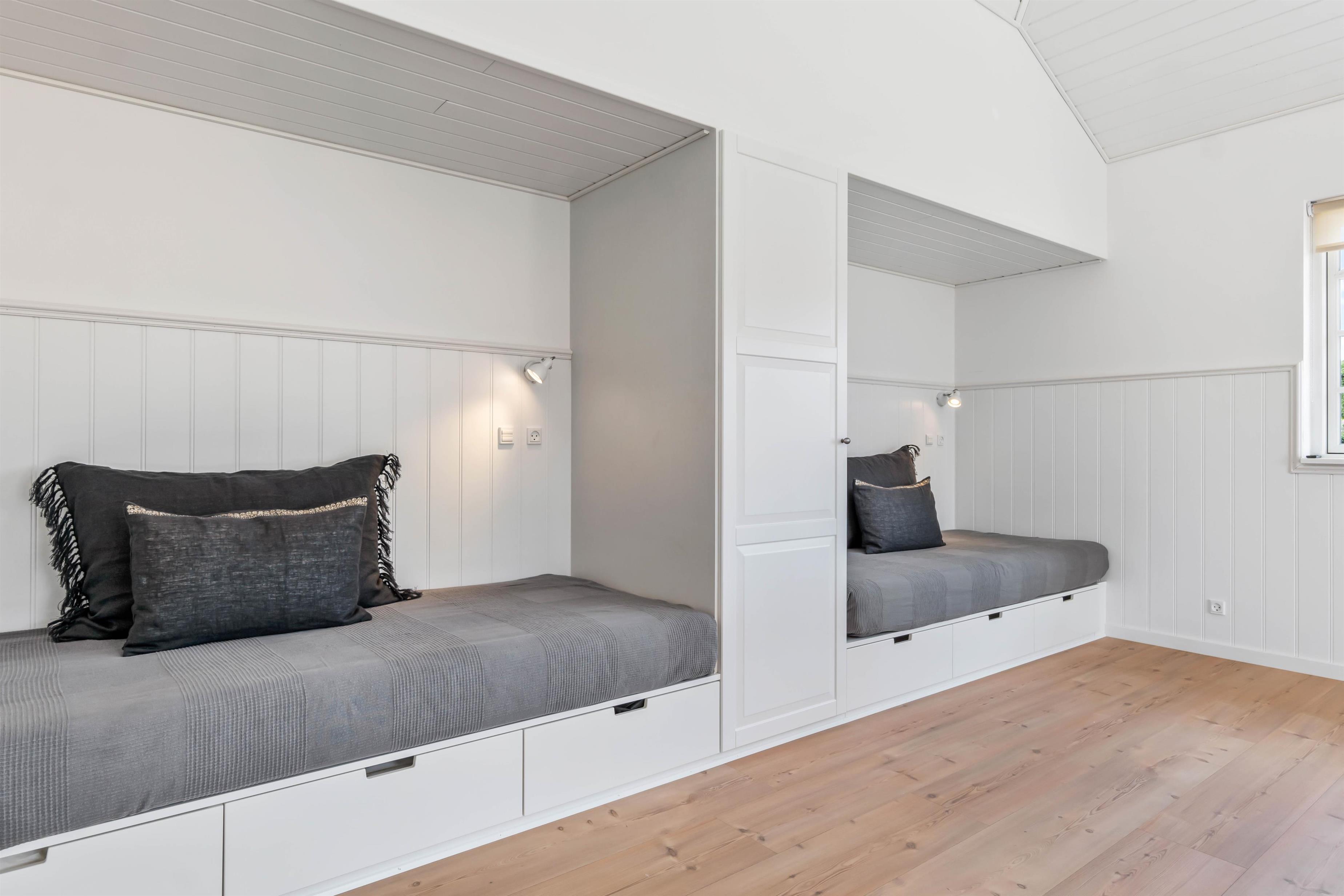 Feriens 6 gæster kan fordele sig på sommerhusets 3 soveværelser og 2 sovepladser i en skøn alkove. På hvert værelse finder I ovenikøbet insektnet foran vinduerne. For at undgå kø til toilettet om morgenen, er der 2 badeværelser i feriehuset. Takket være gulvvarmen på badeværelserne er der ingen feriegæster, der skal døje med kolde tæer om morgenen.