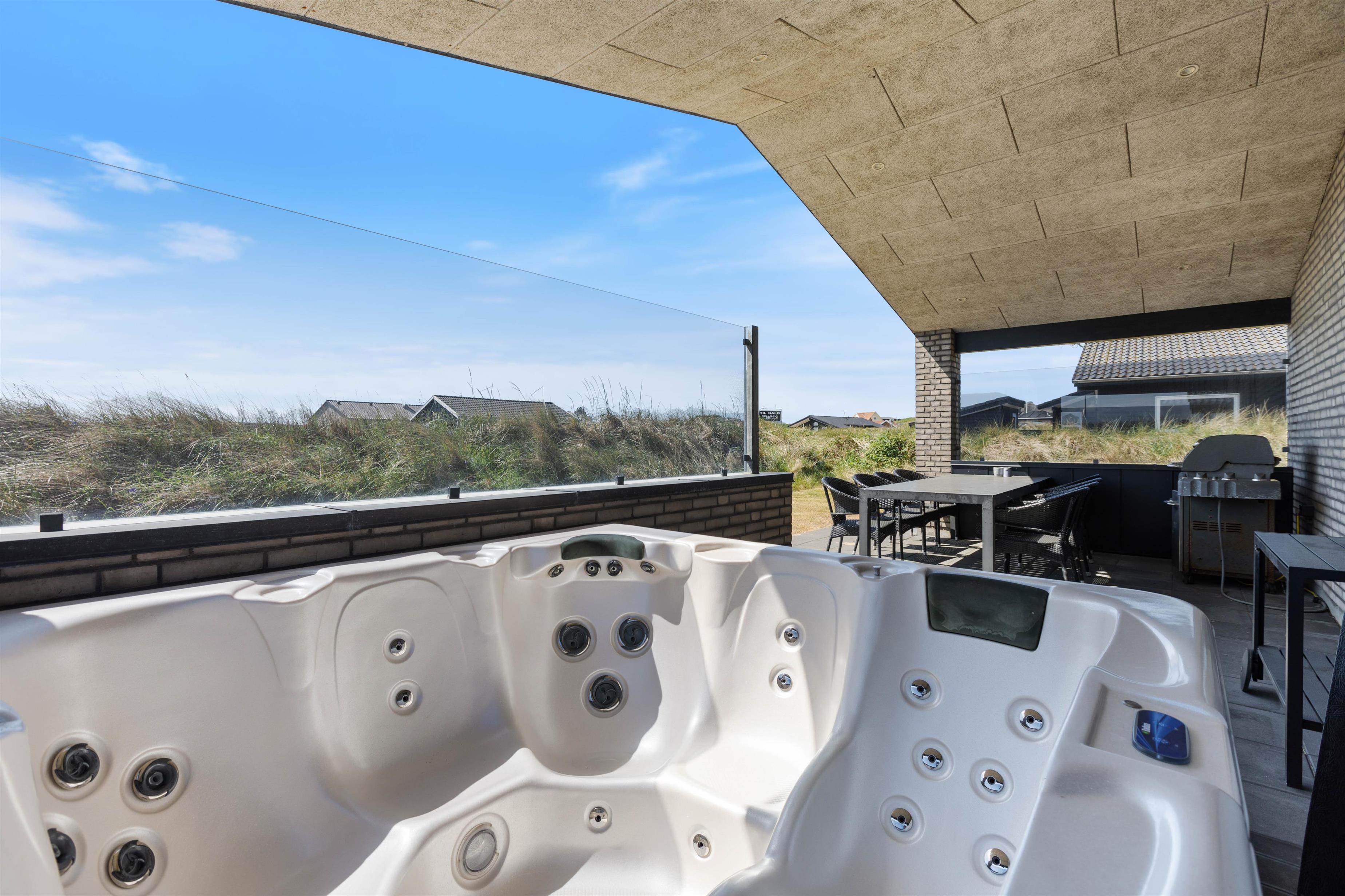 Endnu en lækker wellnessoplevelse venter jer udenfor. Under den overdækkede del af terrassen står der nemlig et udendørs spabad - så husk badetøjet, lige meget hvornår på året I kommer!