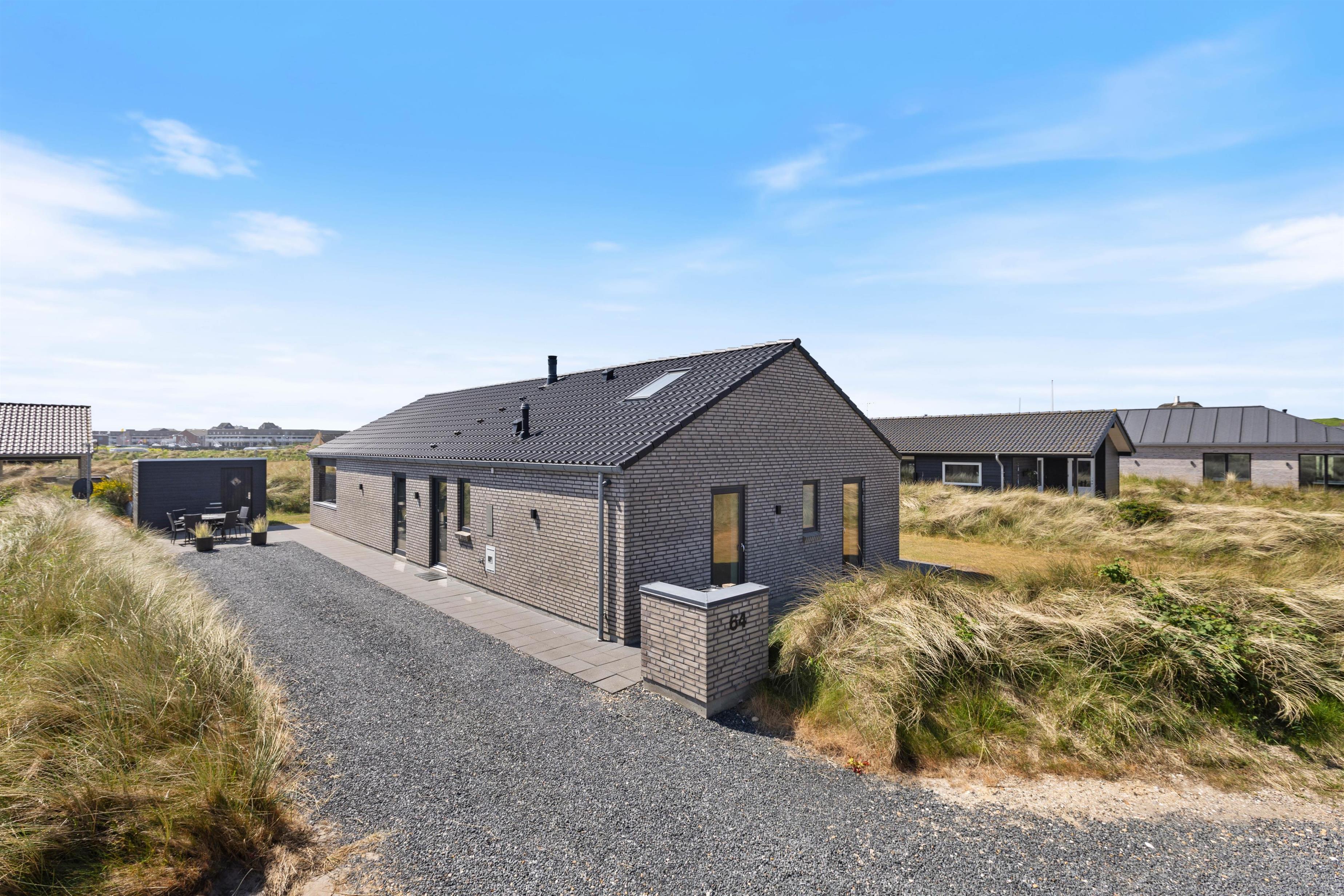 På Lodbergsvej 64 i Søndervig ligger dette standnære feriehus - klar til at give jer en ferie ud over det sædvanlige. Her får I et stilfuldt indre med moderne møblement, sauna og et tilsvarende lækkert ydre med overdækket terrasse og udespa.