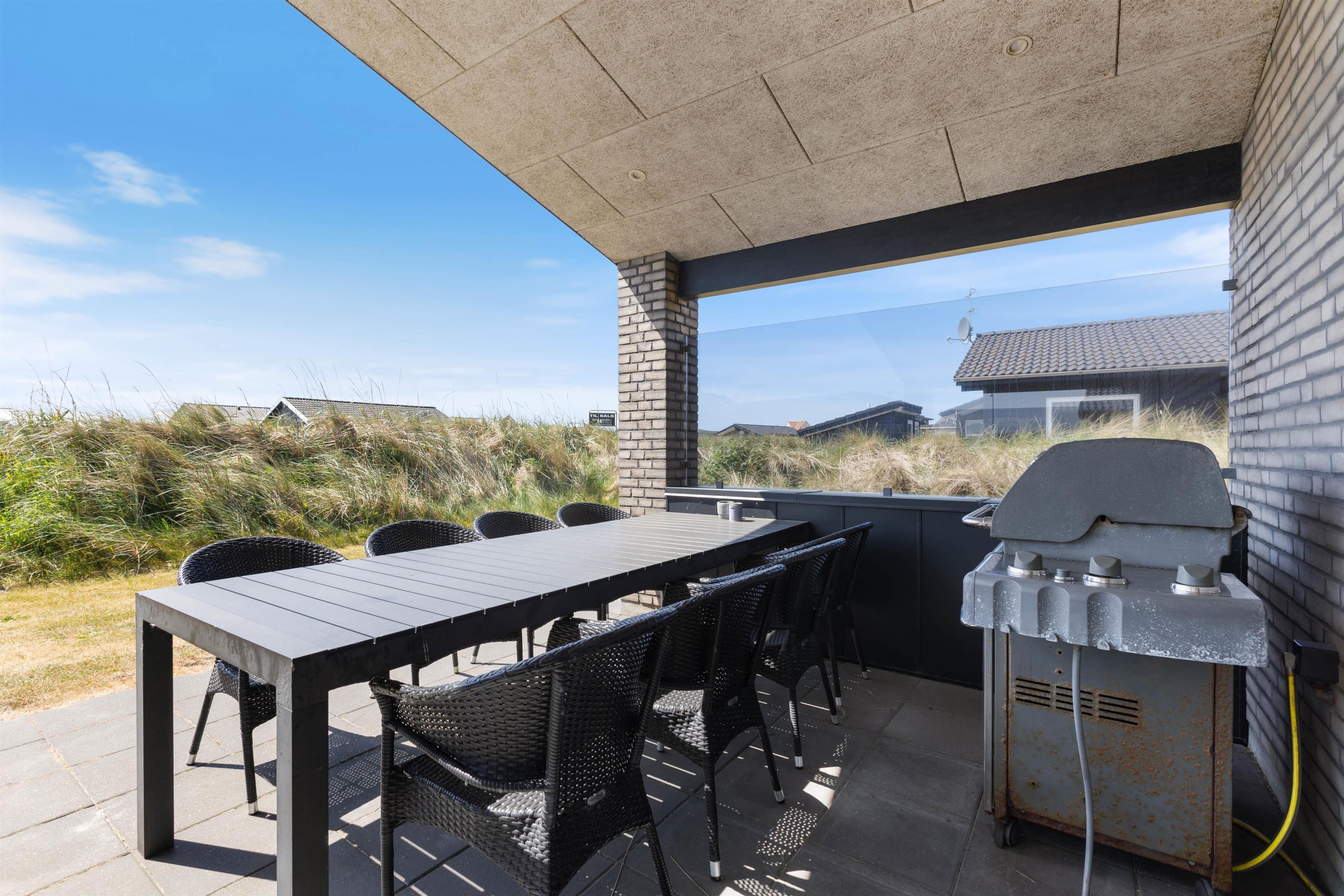 Udenfor finder I både en overdækket og afskærmet terrasse, som giver jer ly og læ i al slags vejr, og et åbent stykke, hvor I kan nyde solen fra liggestolene på de varme forårs- og sommerdage.