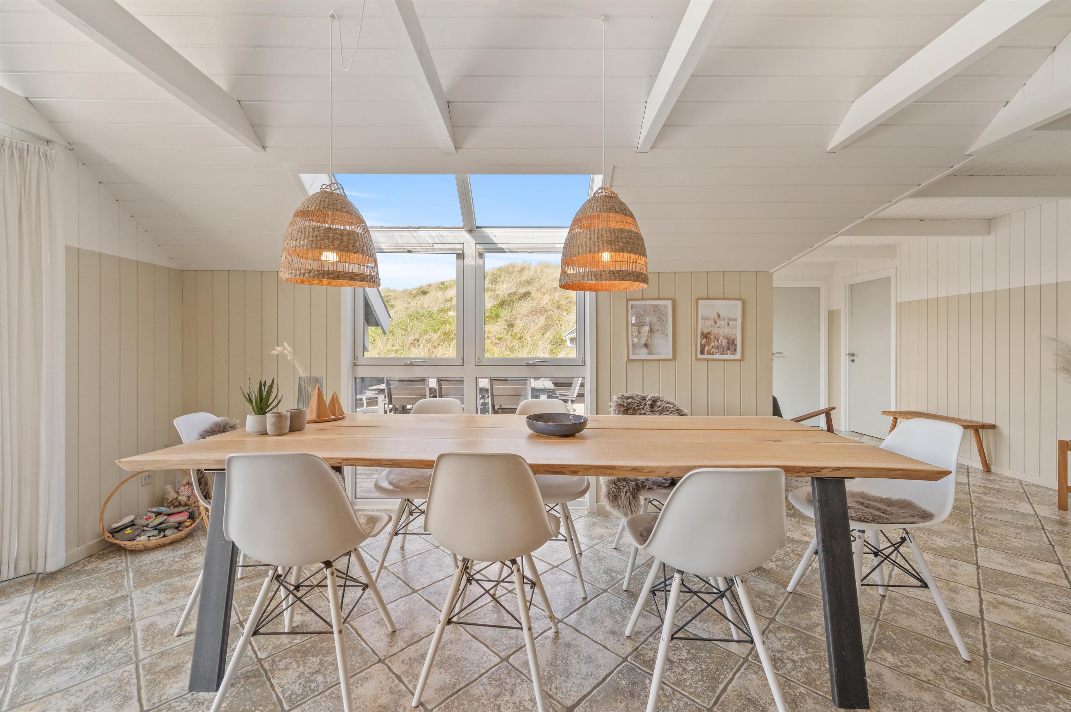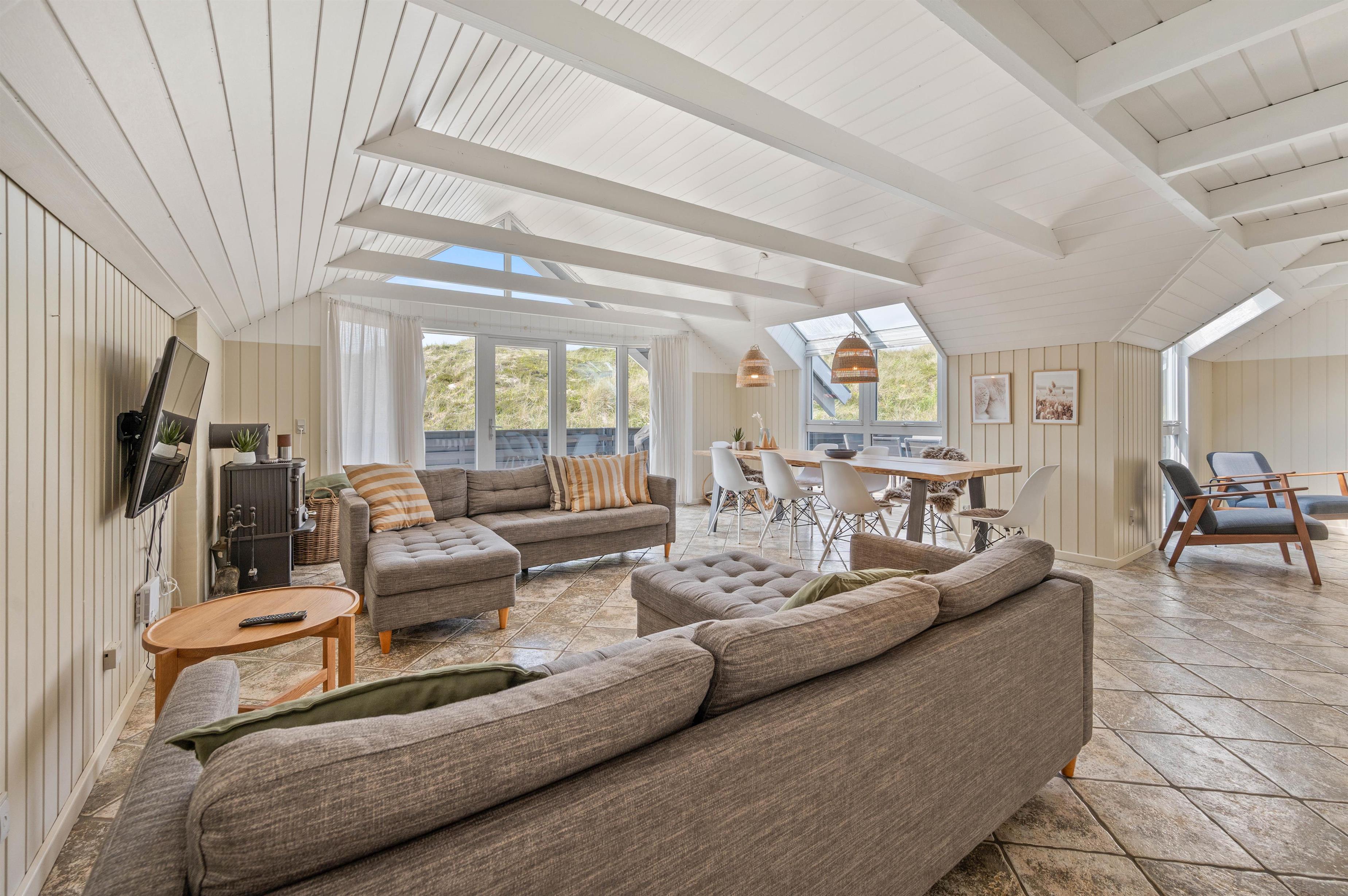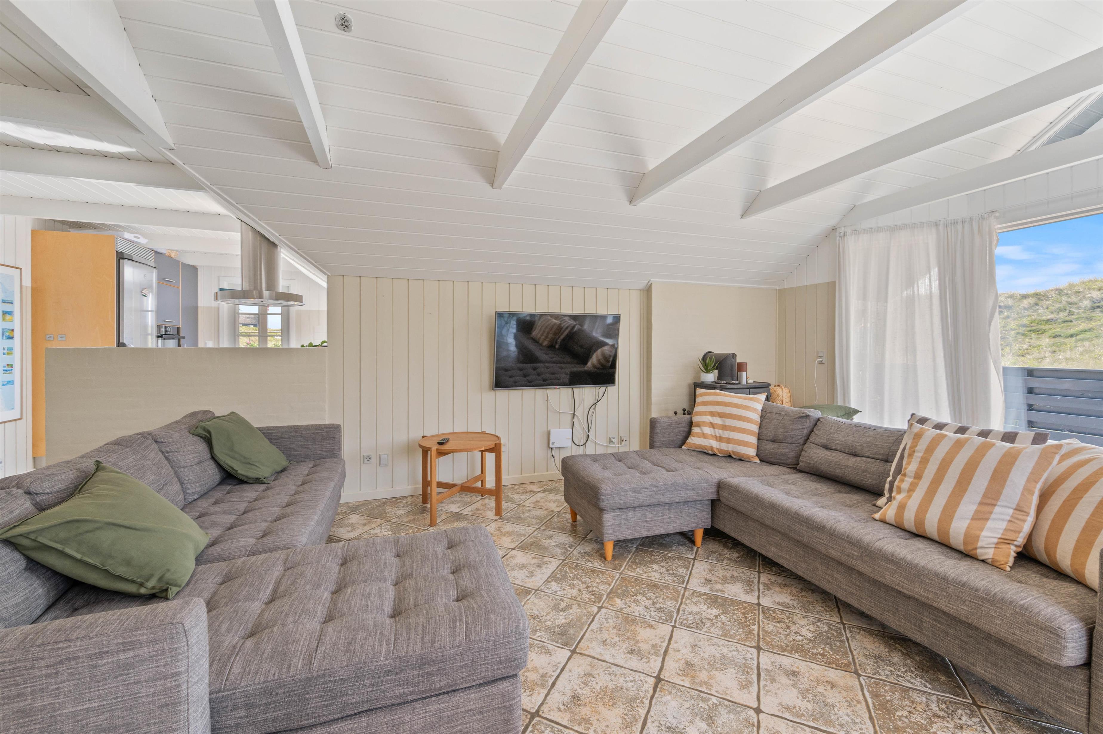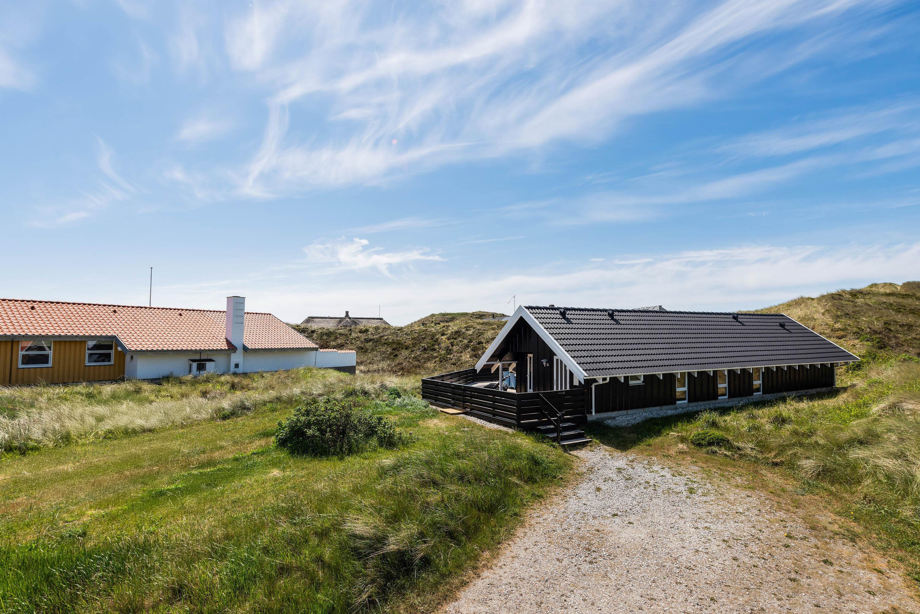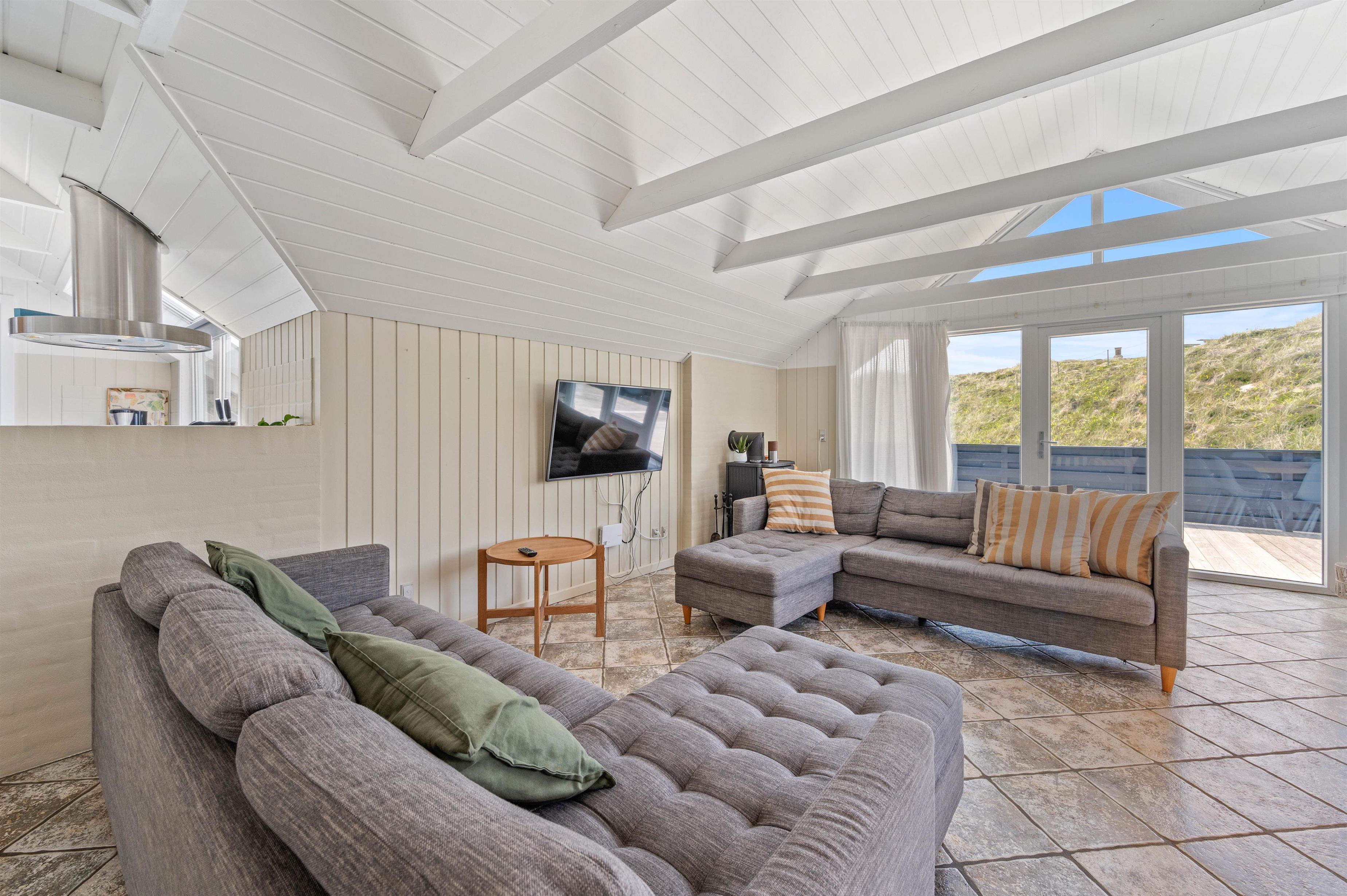 Terrassen er intet mindre end fantastisk. Den strækker sig omkring huset fra øst og mere end husets længde mod syd. Den er stor, helt lukker og delvist overdækker mod syd, så der er ofte mulighed for læ. Og området ved dette sommerhus er særdeles eftertragtet, dels fordi det ligger helt ud til det store fredede klitareal, som ligger helt op til Vesterhavet. Derudover er Søndervig centrum kun 1000 m væk, så skal der handles eller ønsker man at spise på en af byens restauranter, kan man klare dette uden at medbringe bil.