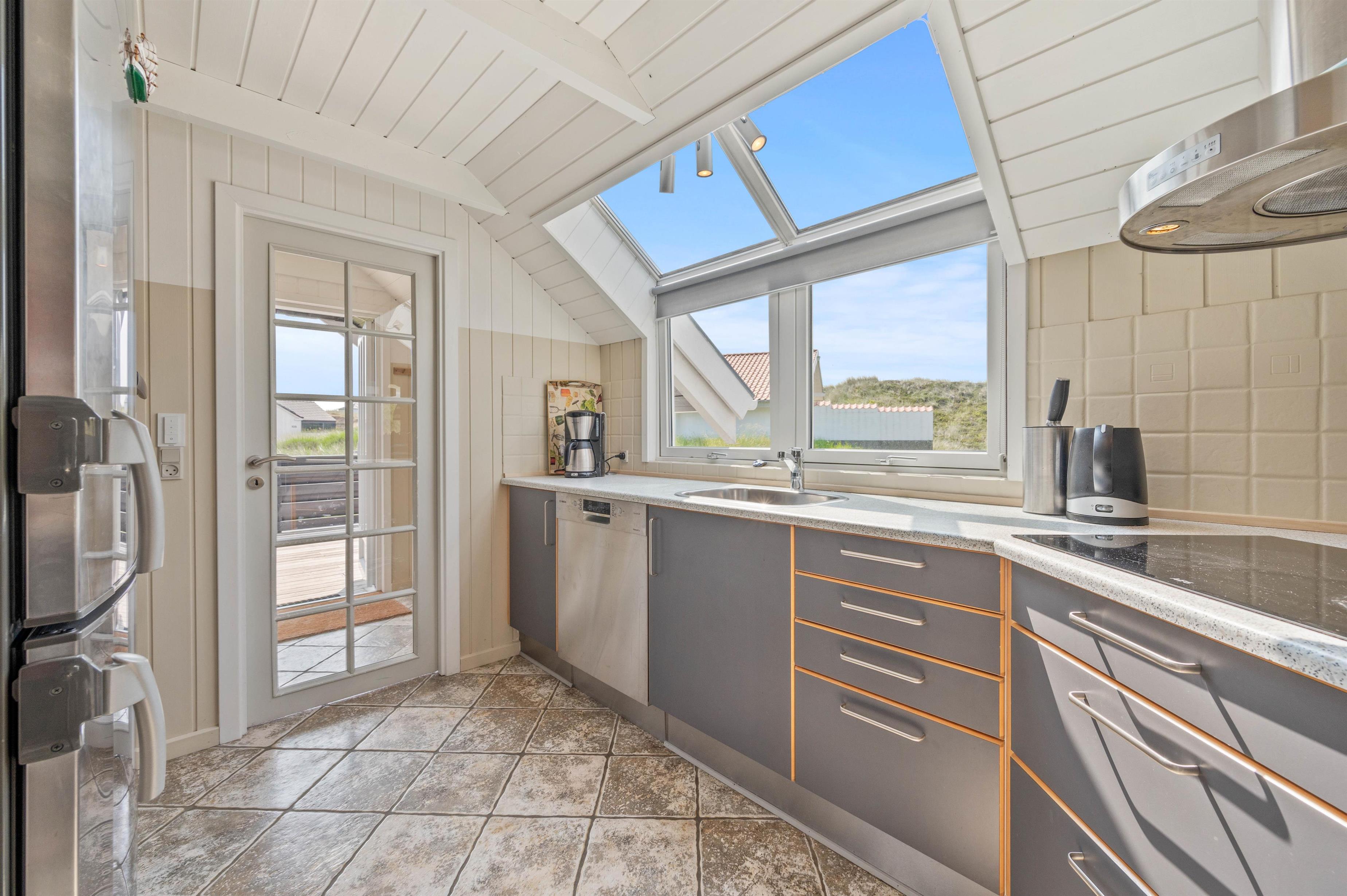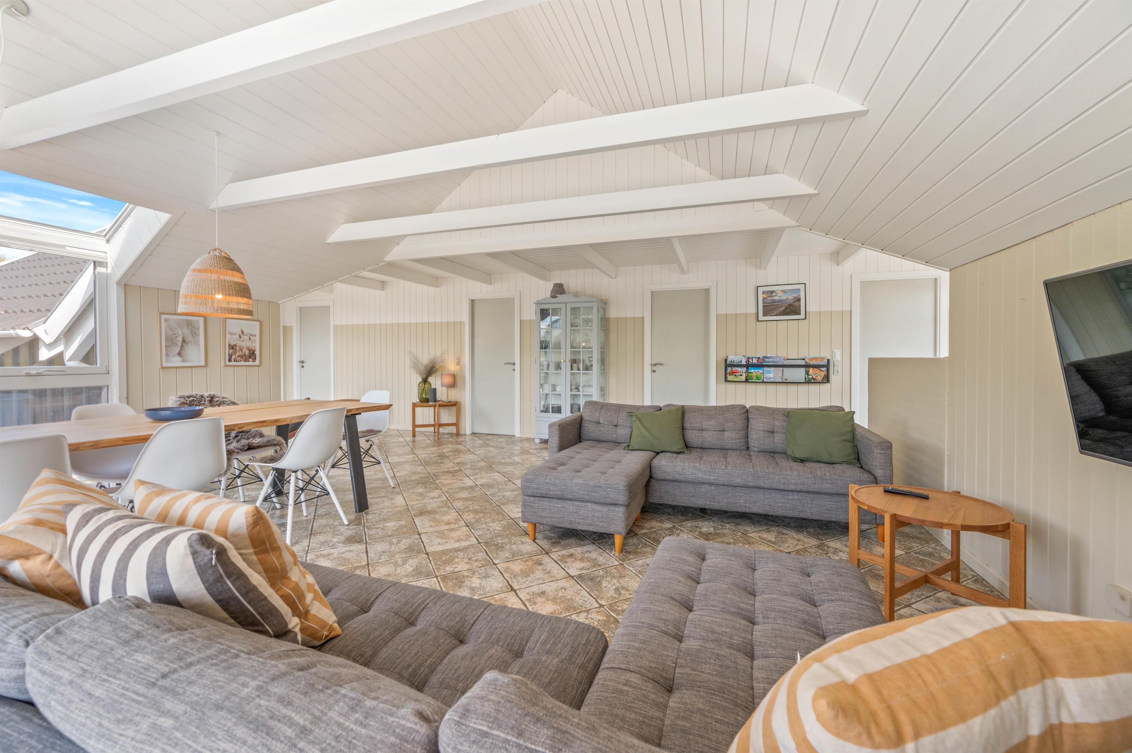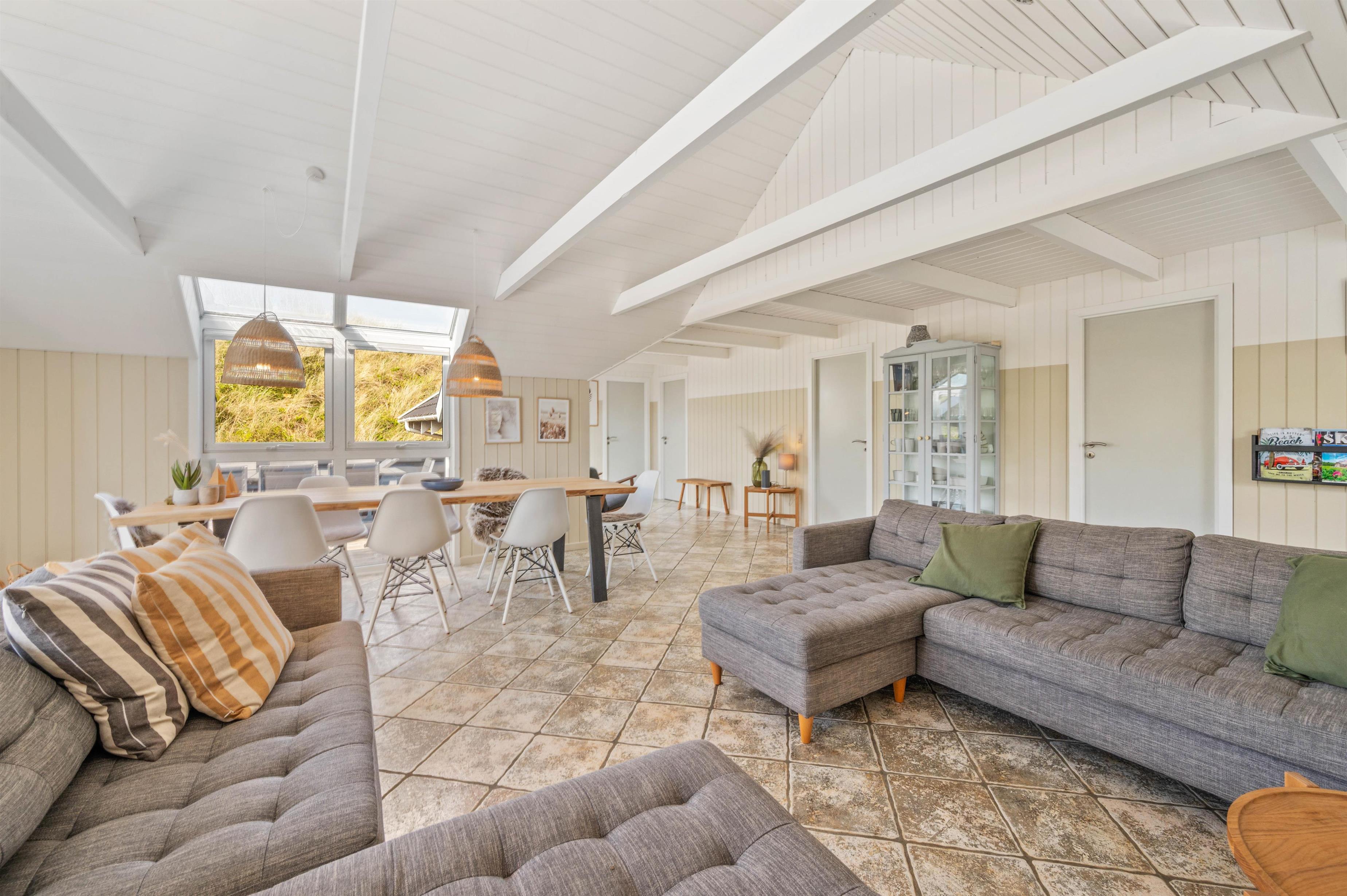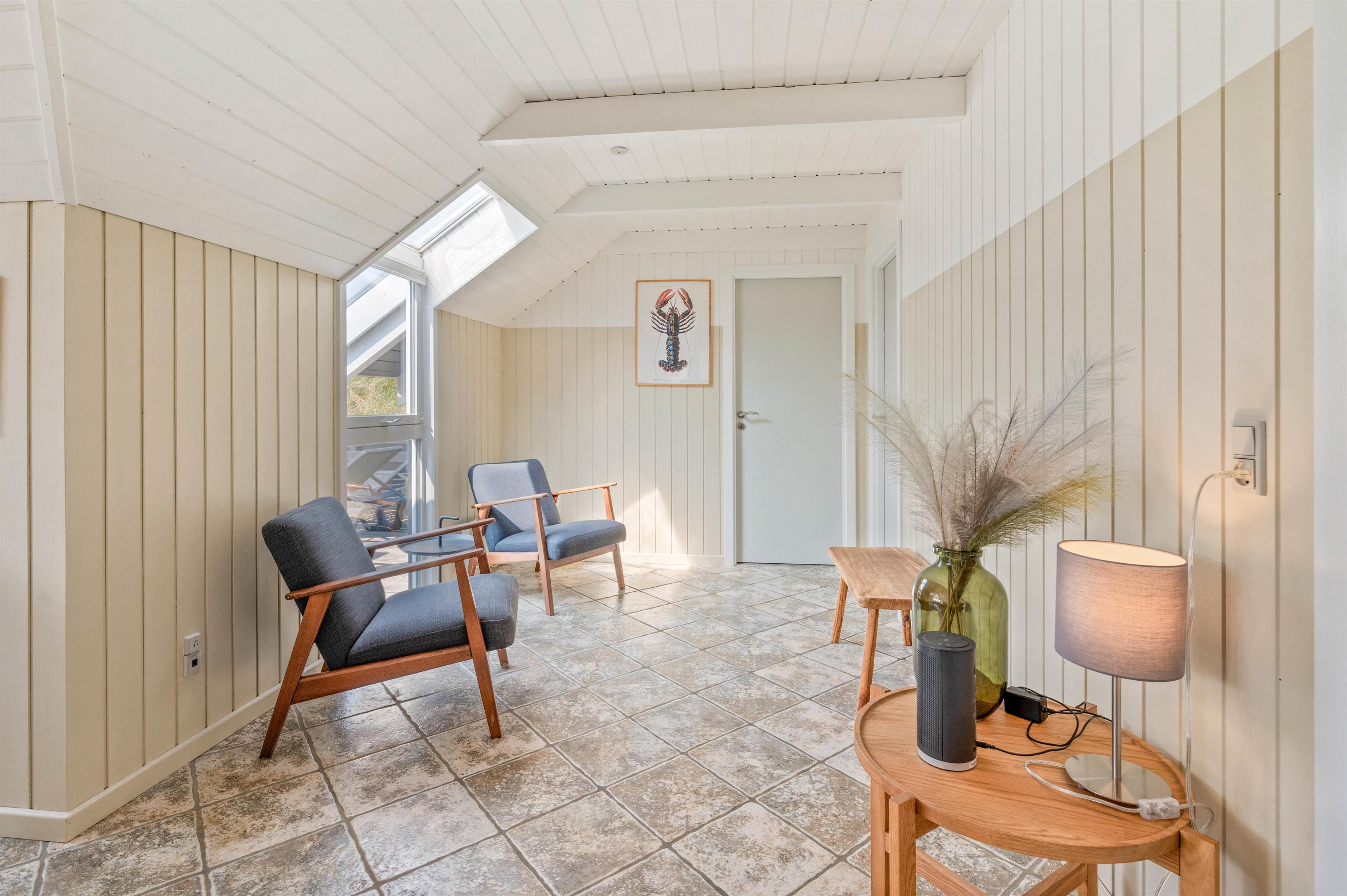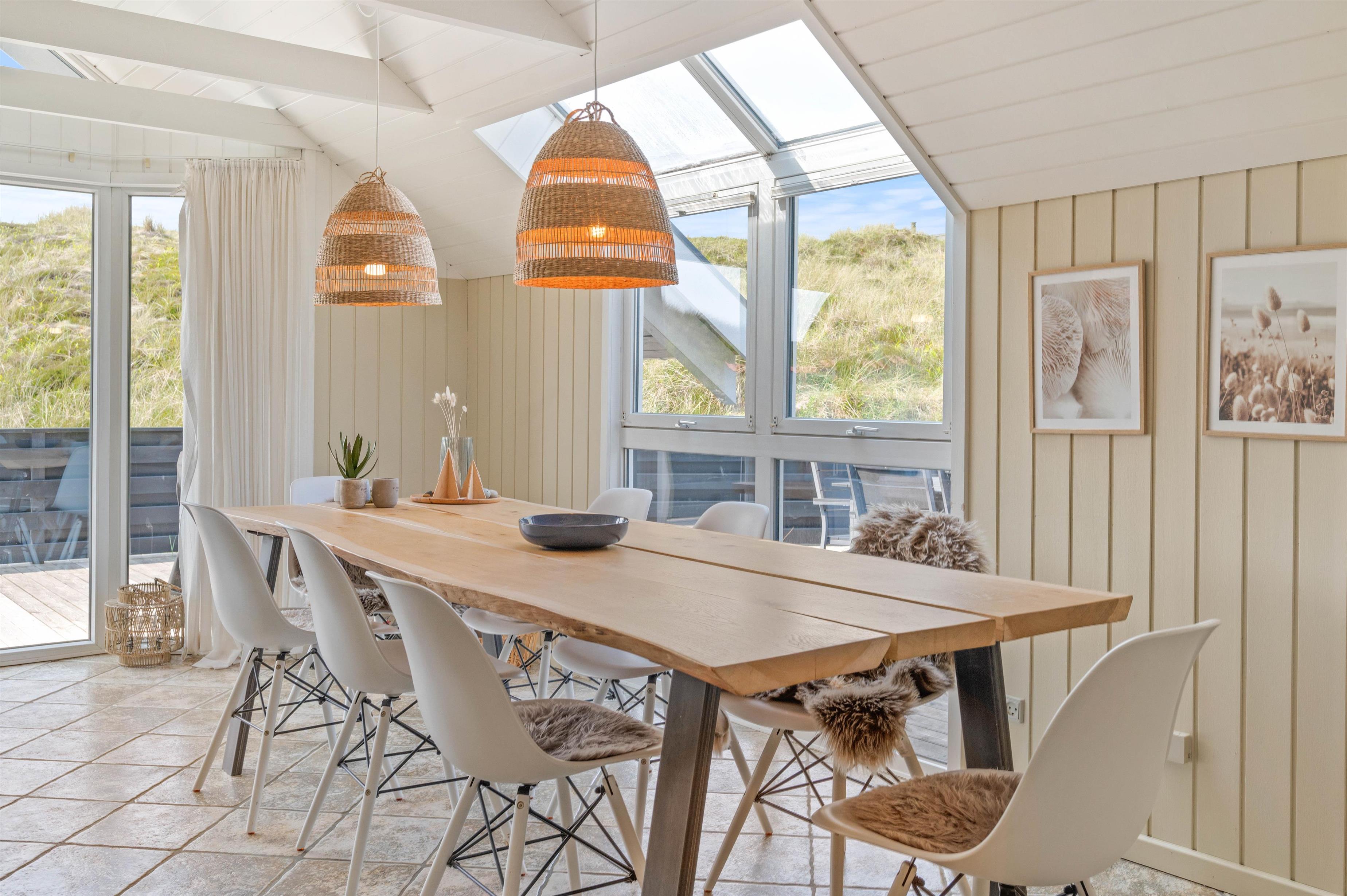 Terrassen er intet mindre end fantastisk. Den strækker sig omkring huset fra øst og mere end husets længde mod syd. Den er stor, helt lukker og delvist overdækker mod syd, så der er ofte mulighed for læ. Og området ved dette sommerhus er særdeles eftertragtet, dels fordi det ligger helt ud til det store fredede klitareal, som ligger helt op til Vesterhavet. Derudover er Søndervig centrum kun 1000 m væk, så skal der handles eller ønsker man at spise på en af byens restauranter, kan man klare dette uden at medbringe bil.