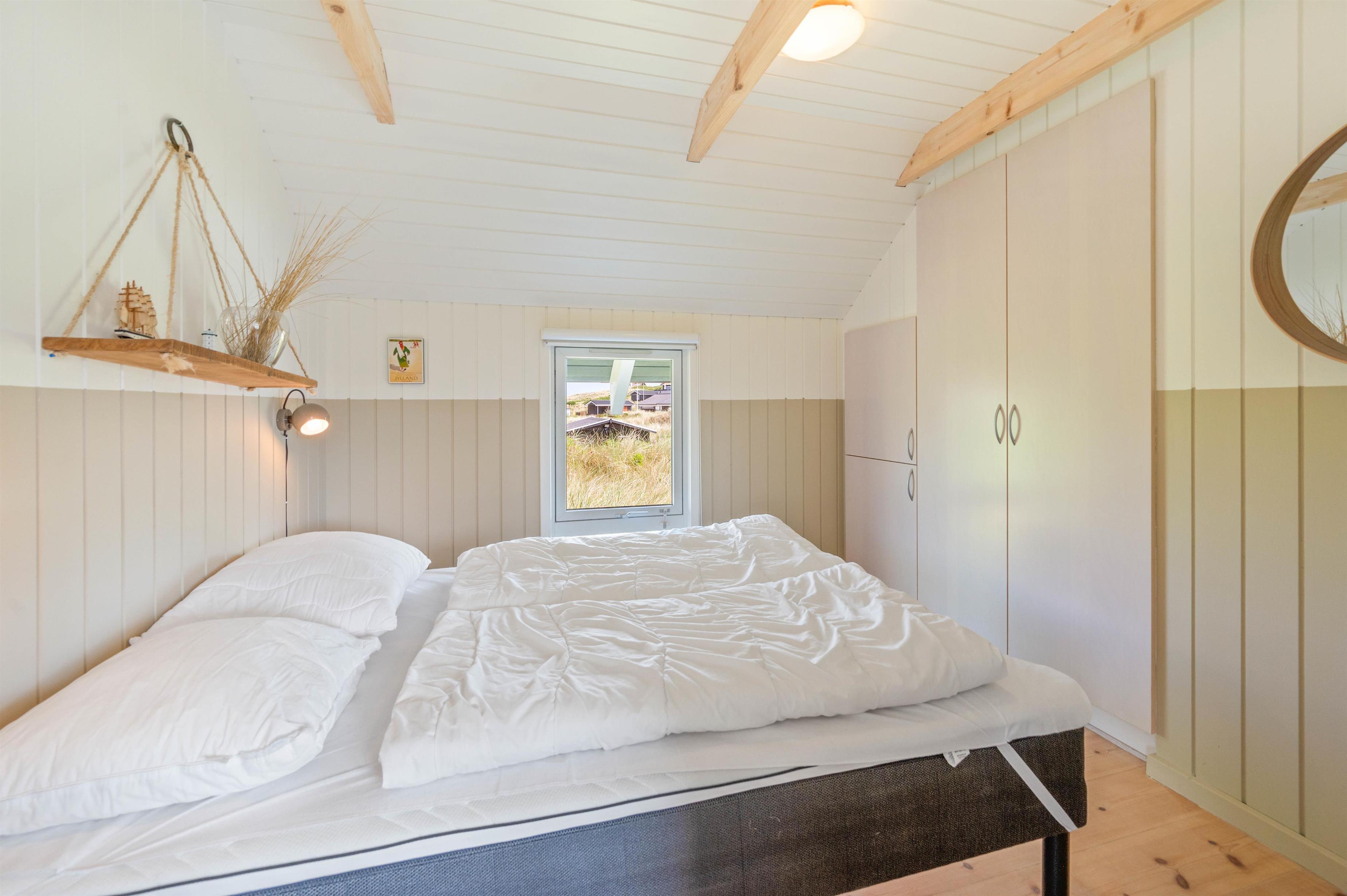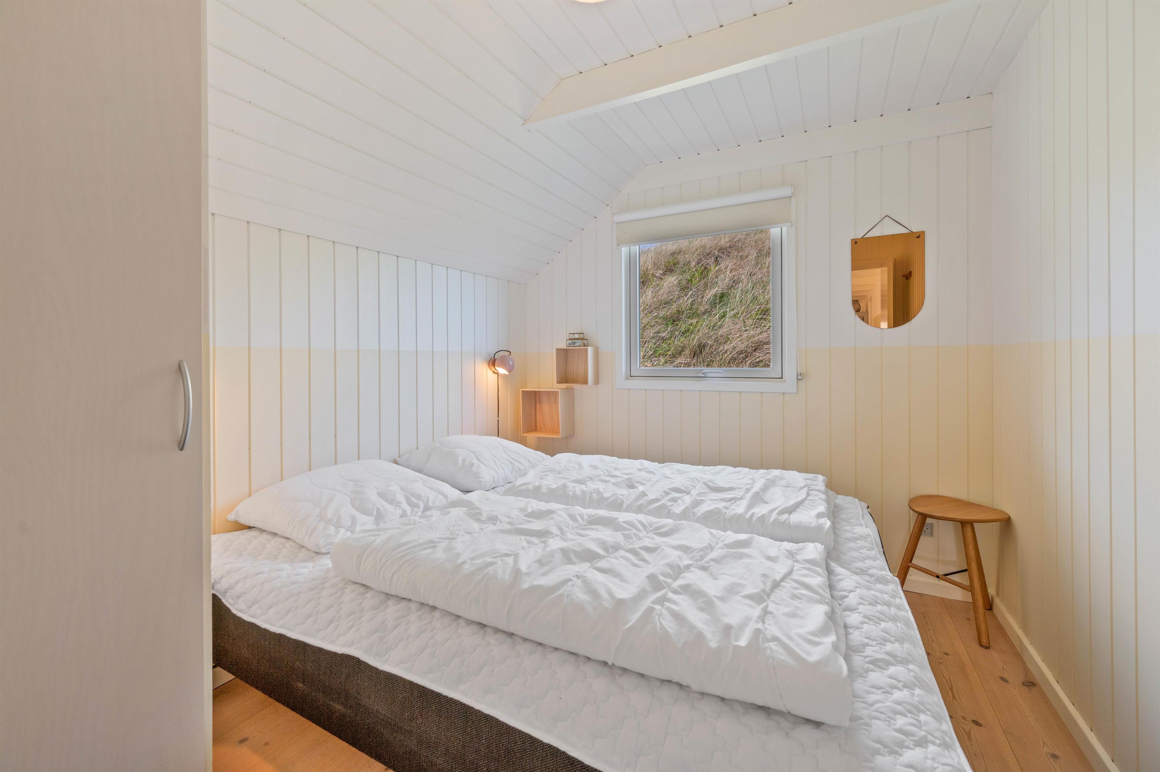 Dette sommerhus på Hvidbjergvej 113 er bygget i 2004 og har plads til otte personer fordelt på fire soveværelser. To af værelserne har begge en dobbeltseng, de sidste to værelser har begge to enkeltsenge, og på alle værelser er der trægulve. Huset har to badeværelser med fliser, bruseniche og med gulvvarme. På det store badeværelse er der en sauna og en to personers hjørnespa. På det mindre badeværelse er der også en vaskemaskine og en tørretumbler.