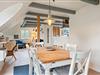 Den hyggelige opholdstue vil uden tvivl blive jeres naturlige samlingspunkt under jeres ferieophold, og fra pladsen i sofaen har I direkte kig til det flotte og veludstyrede køkken. Men det er nok i højere grad det store vinduesparti, der vil fange jeres opmærksomhed. Herigennem kan I nemlig lade blikket vandre ud på den smukke naurgrund, der omgiver huset. Stuen er desuden indrettet med gode møbler, og på fladskærmen kan I streame en film på Netflix over det lynhurtige fiberinternet eller via Chromecast.