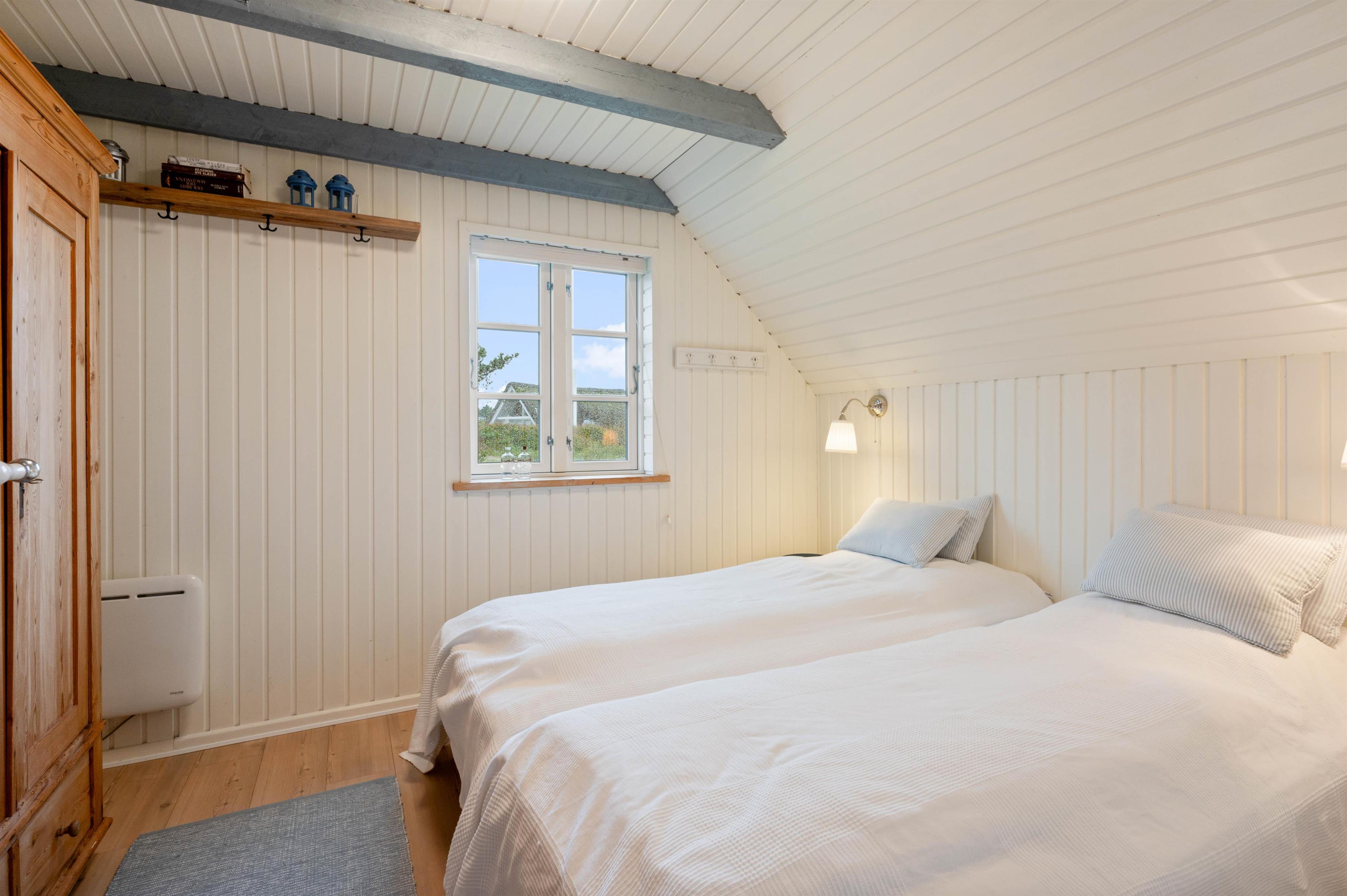 Når I træder indenfor i det stråtækte sommerhus på Hjelmevej, vil I blive mødt af en hyggelig og stemningsfuld atmosfære, der oser af romantisk sommerhusidyl. Indtrykket er lyst og venligt, hvilket skyldes de lyse trælofter og vægge, de store vinduespartier og det lette og romantiske interiør. Her er intet overladt til tilfældighederne, og alt fremstår velholdt og nøje udvalgt.