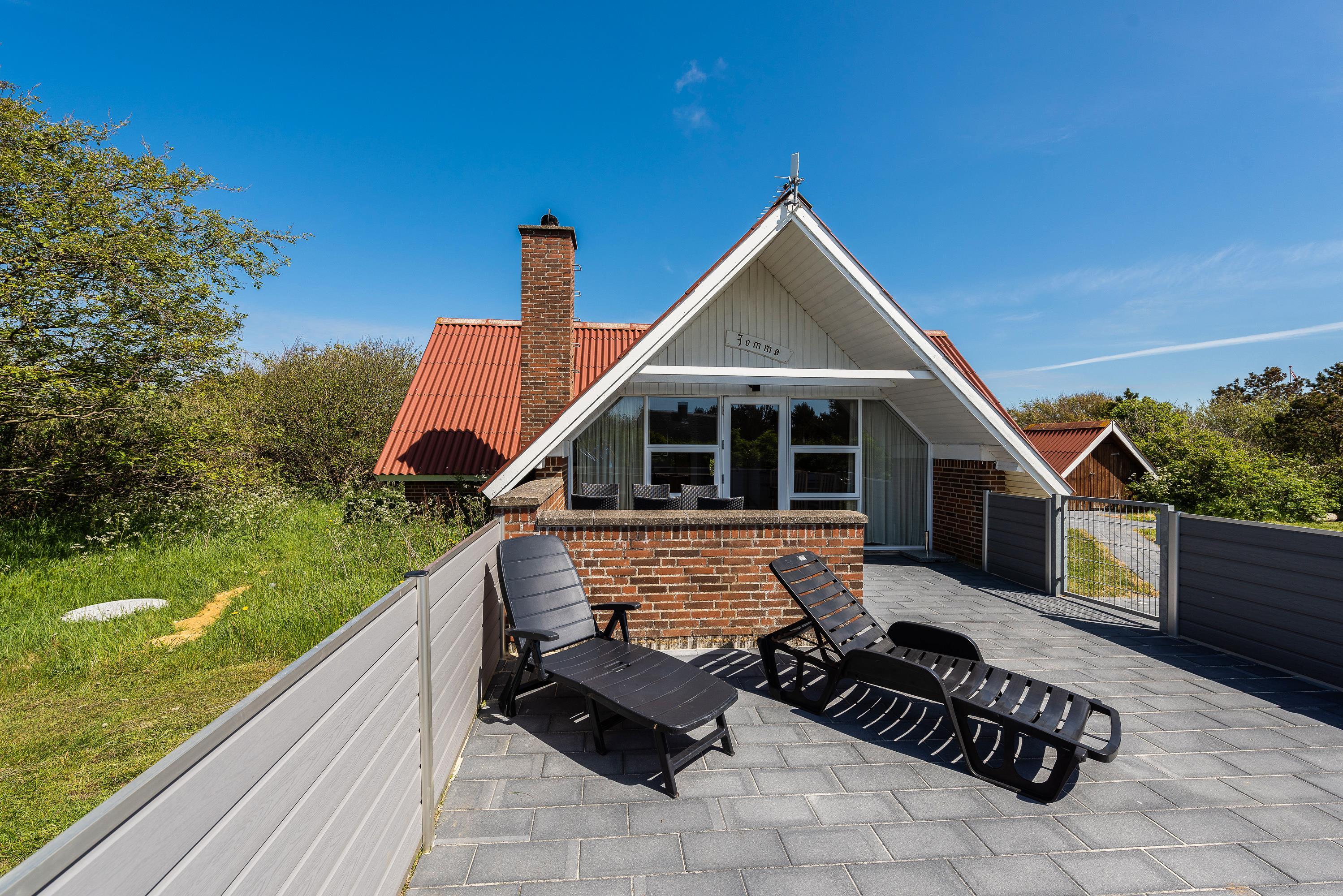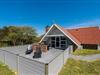 Fra stuen er der direkte udgang til den lukkede terrasse. Her finder du naturligvis havemøbler, liggestole og en grill, og der er er også opsat gynge og sandkasse til de mindste feriegæster. Et dejligt sommerhus på en dejlig rolig og delvist afskærmet plænegrund.