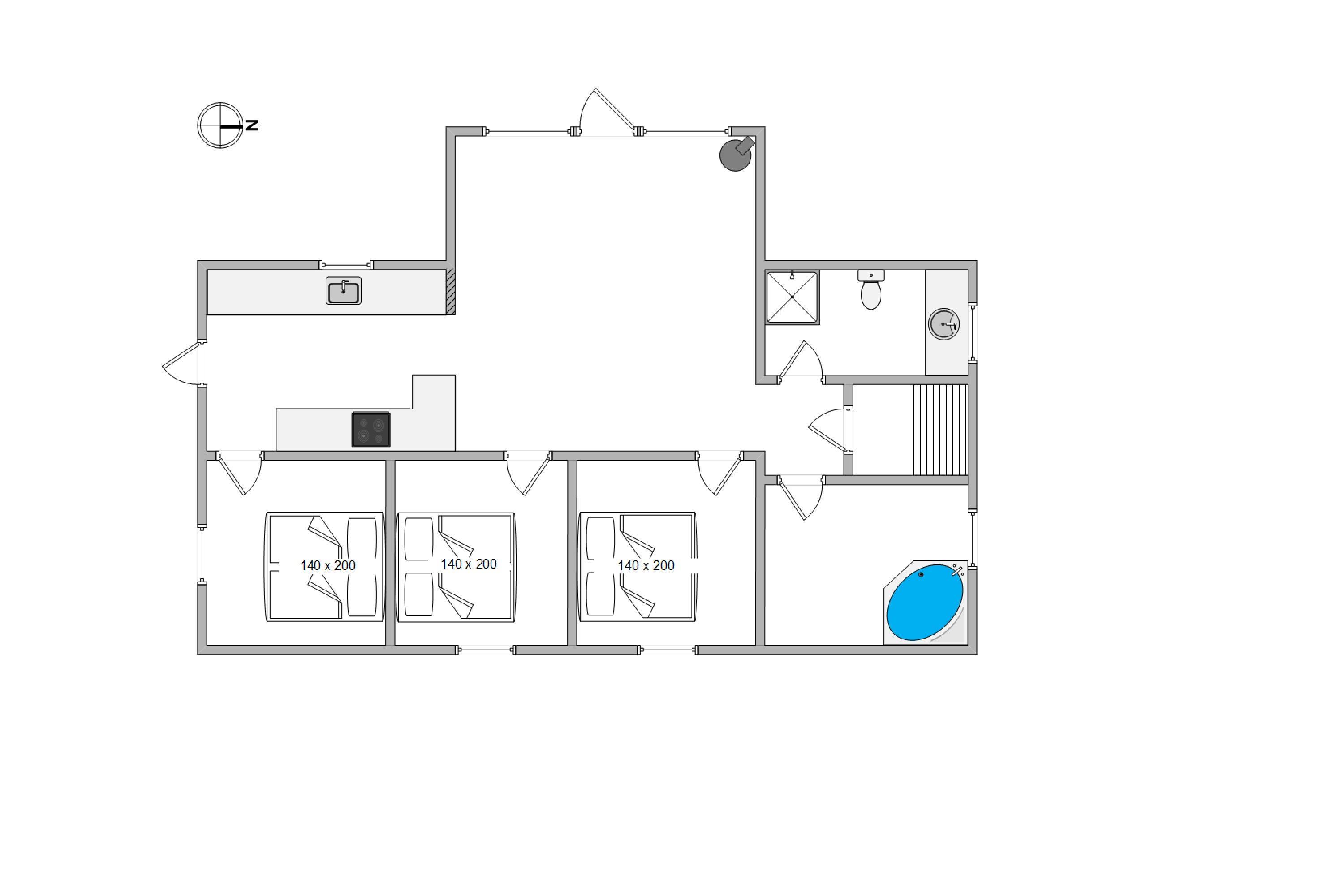 Et hyggeligt og velholdt sommerhus med en god og lys indretning. Huset har plads til 6 personer i 3 gode soveværelser, alle med dobbeltsenge og gulvtæppe. Der er en dejlig stor badeafdeling med sauna og separat rum med et skønt hjørnespabad. I stue/alrum kan du slappe af i de komfortable lædermøbler og nyde varmen fra brændeovnens gnistren på kølige vinterdage.
