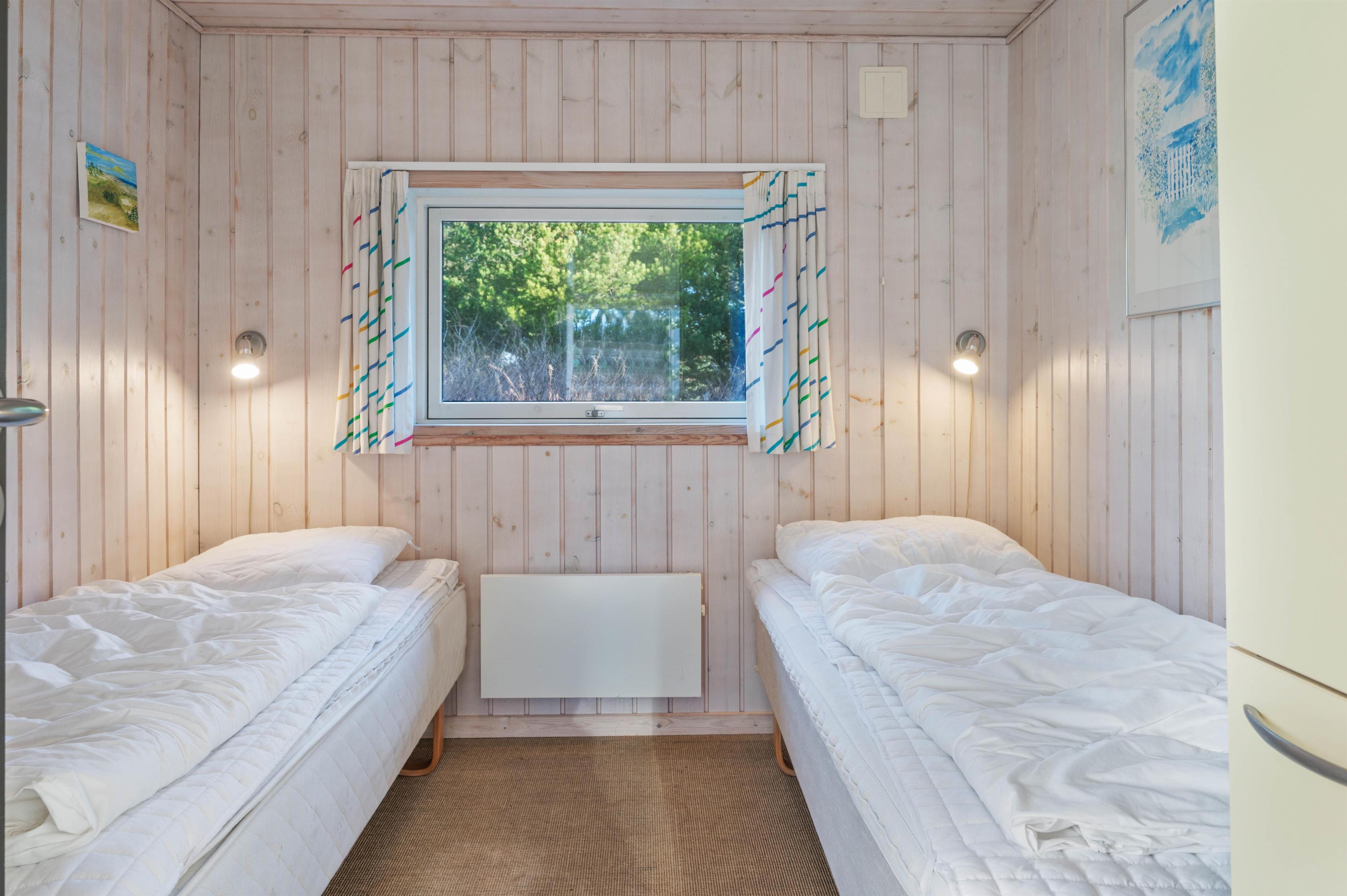 I feriehuset er der 6 sovepladser, der fordeler sig på 3 gode soveværelser; 2 af soveværelserne har dobbeltseng, og det tredje har 2 enkeltsenge.