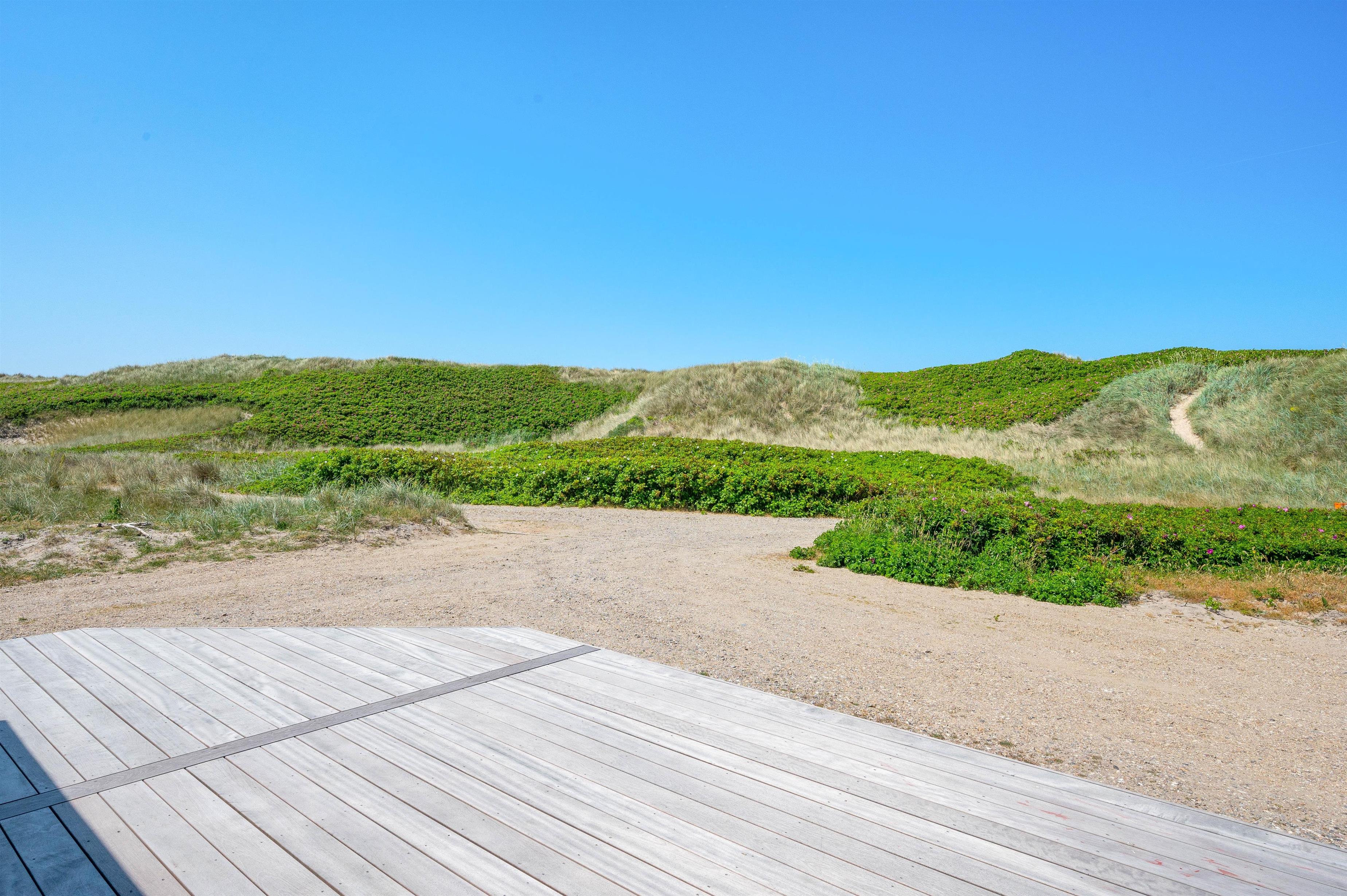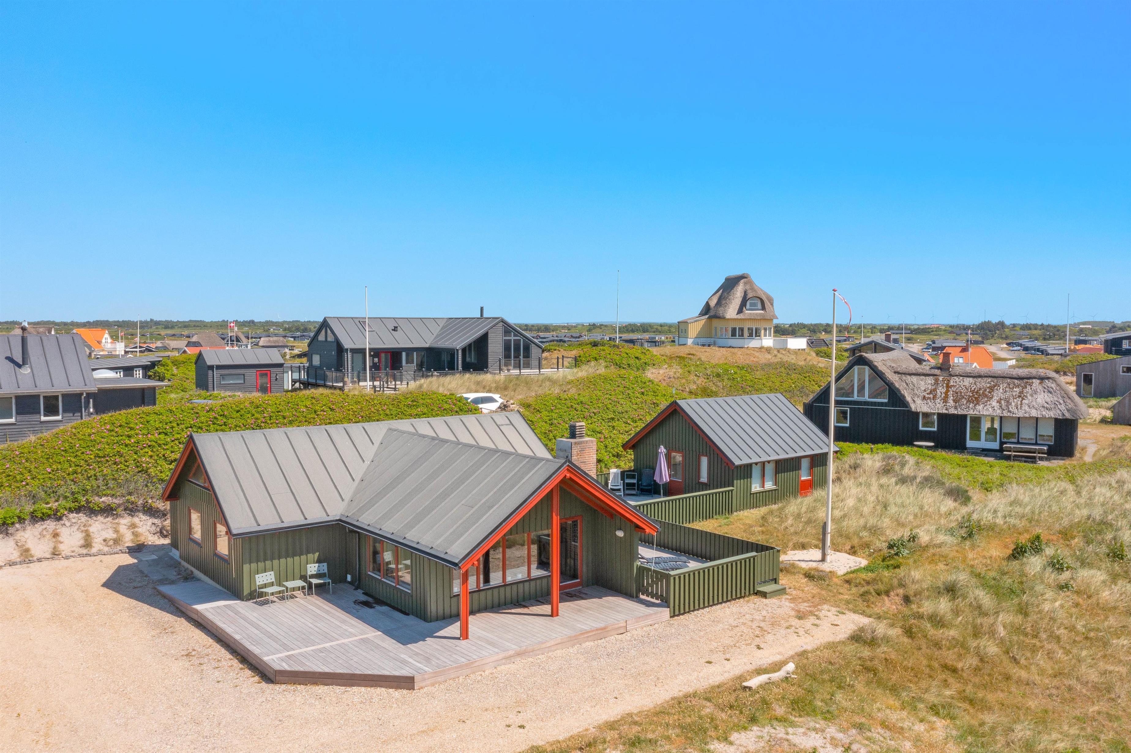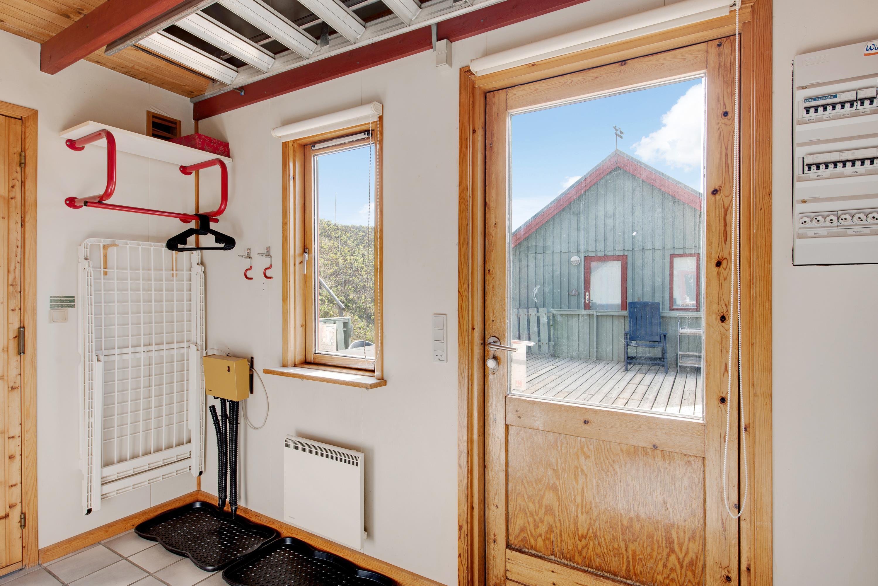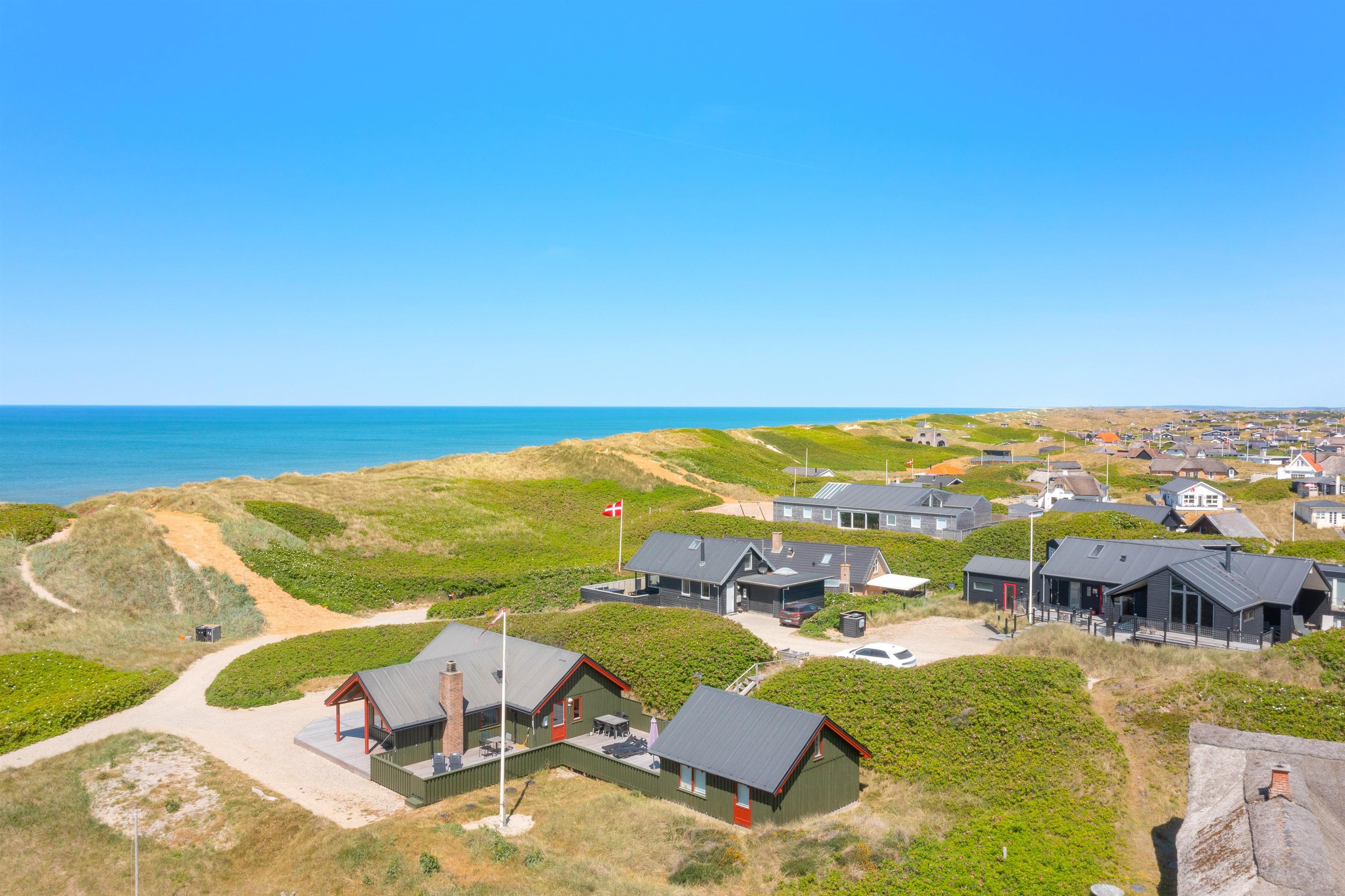Grundet husets fantastiske beliggenhed er der garanti for bølgebrus i baggrunden. På husets lukkede terrasse kan I nyde morgenmaden under åben himmel og langsomt vågne op til endnu en god dag i det jyske. Også en fordel er, at terrassen på den anden side er delvist overdækket og er perfekt til en mere blæsende dag. Et gyngestativ og sandkasse er højdepunktet for børnene! Desuden er der monteret en udebruser ved feriehuset, hvor I efter en dejlig tur ved stranden igen kan skylle sandet af kroppen. Udebruseren kan bruges fra april måned til november måned.