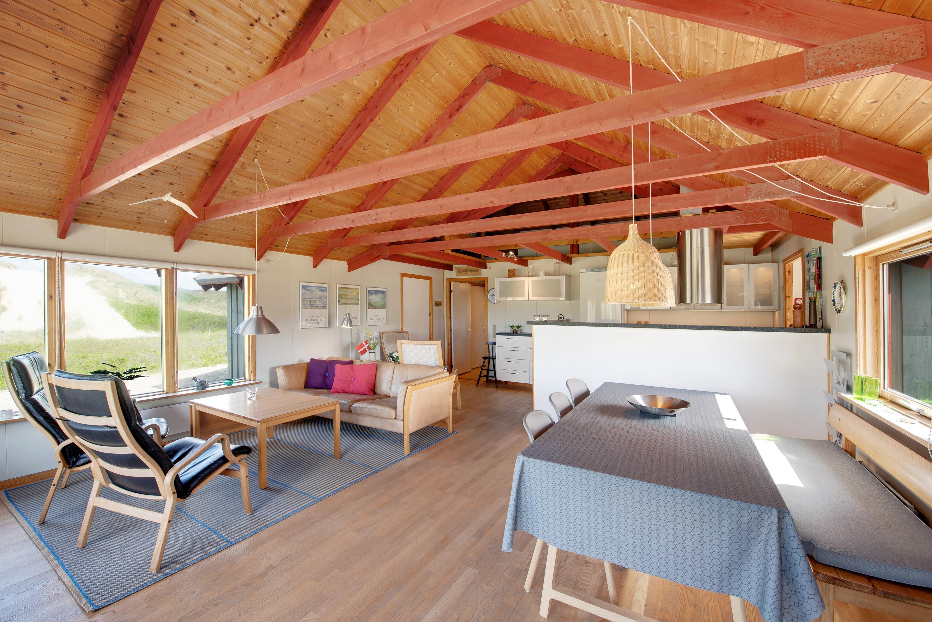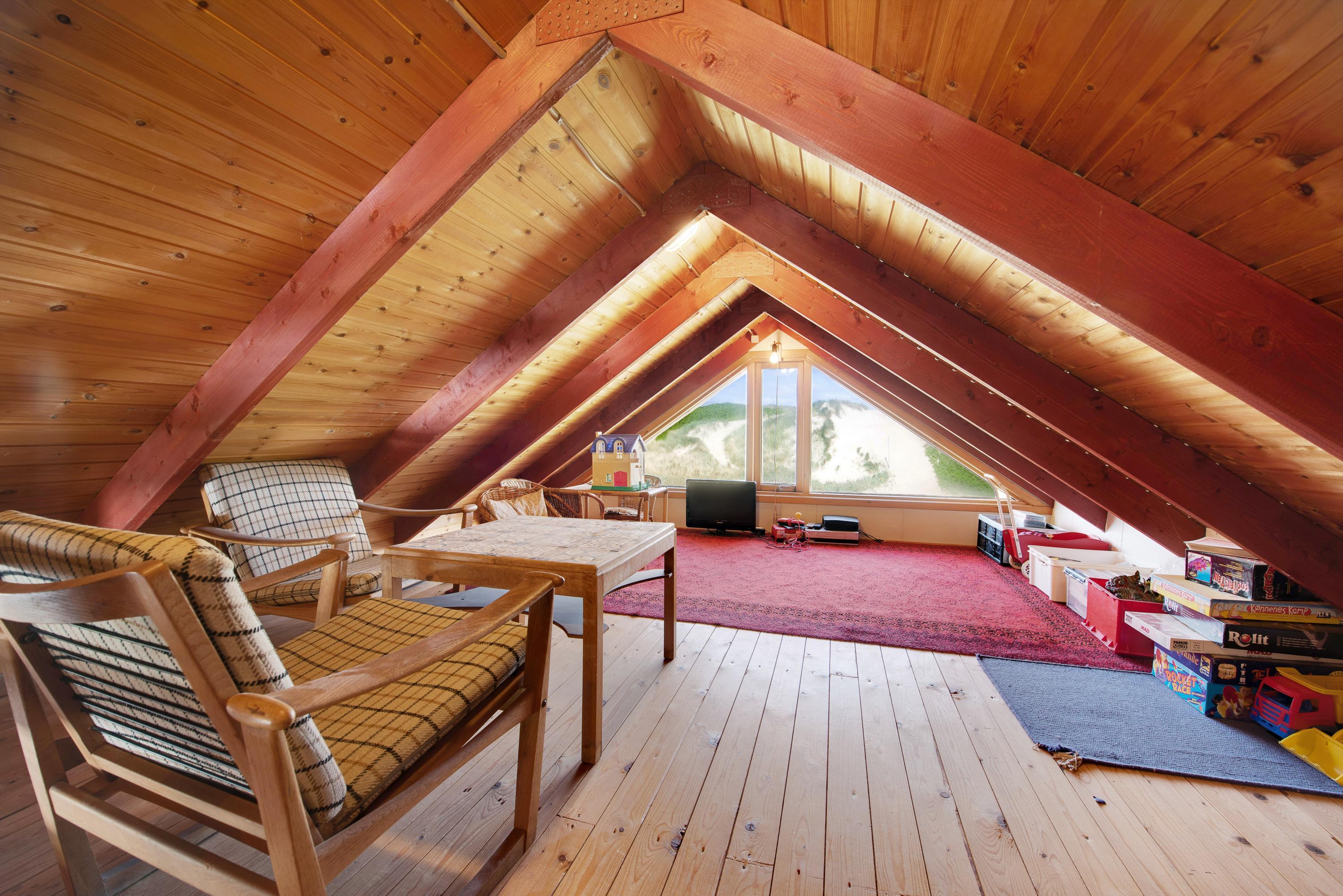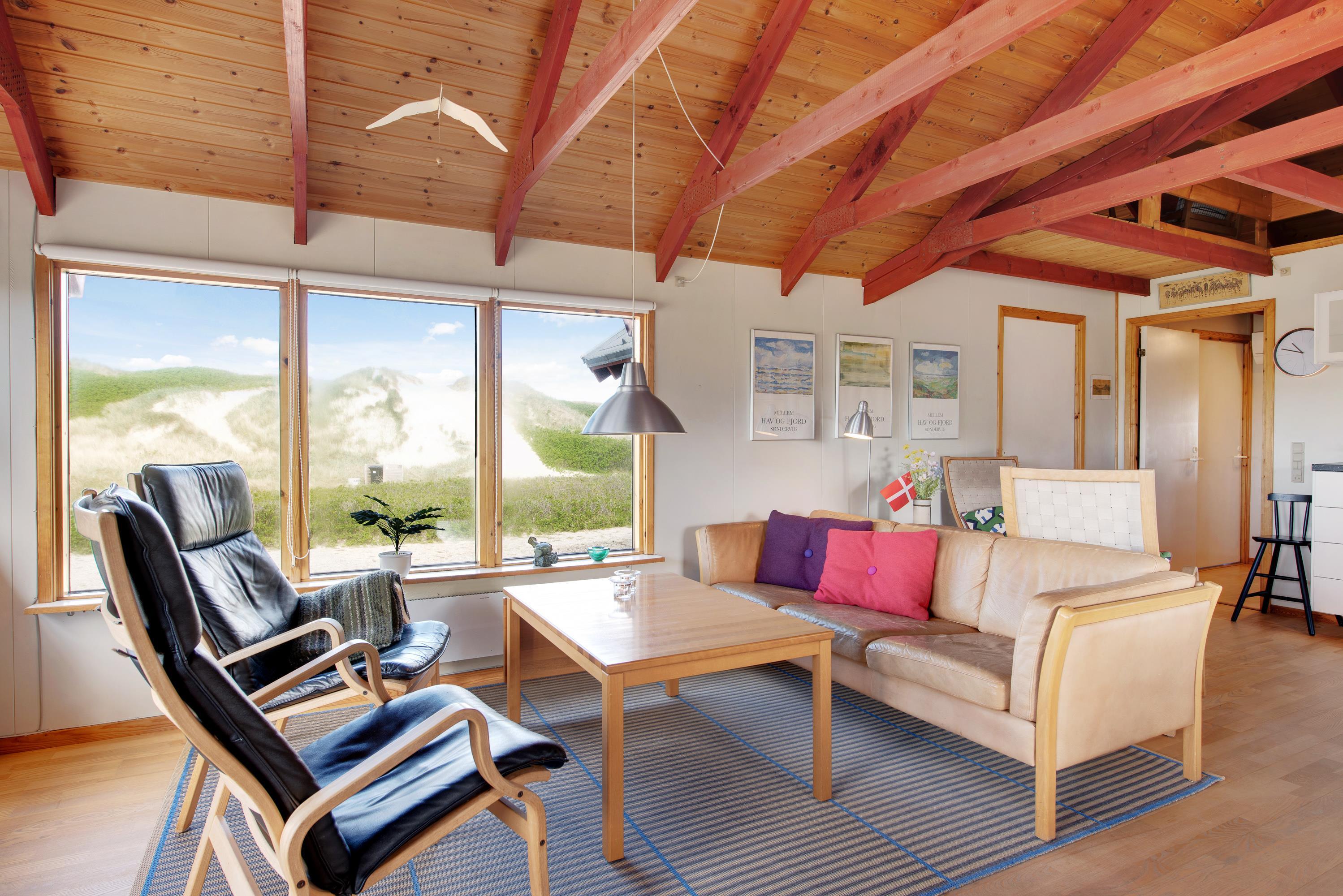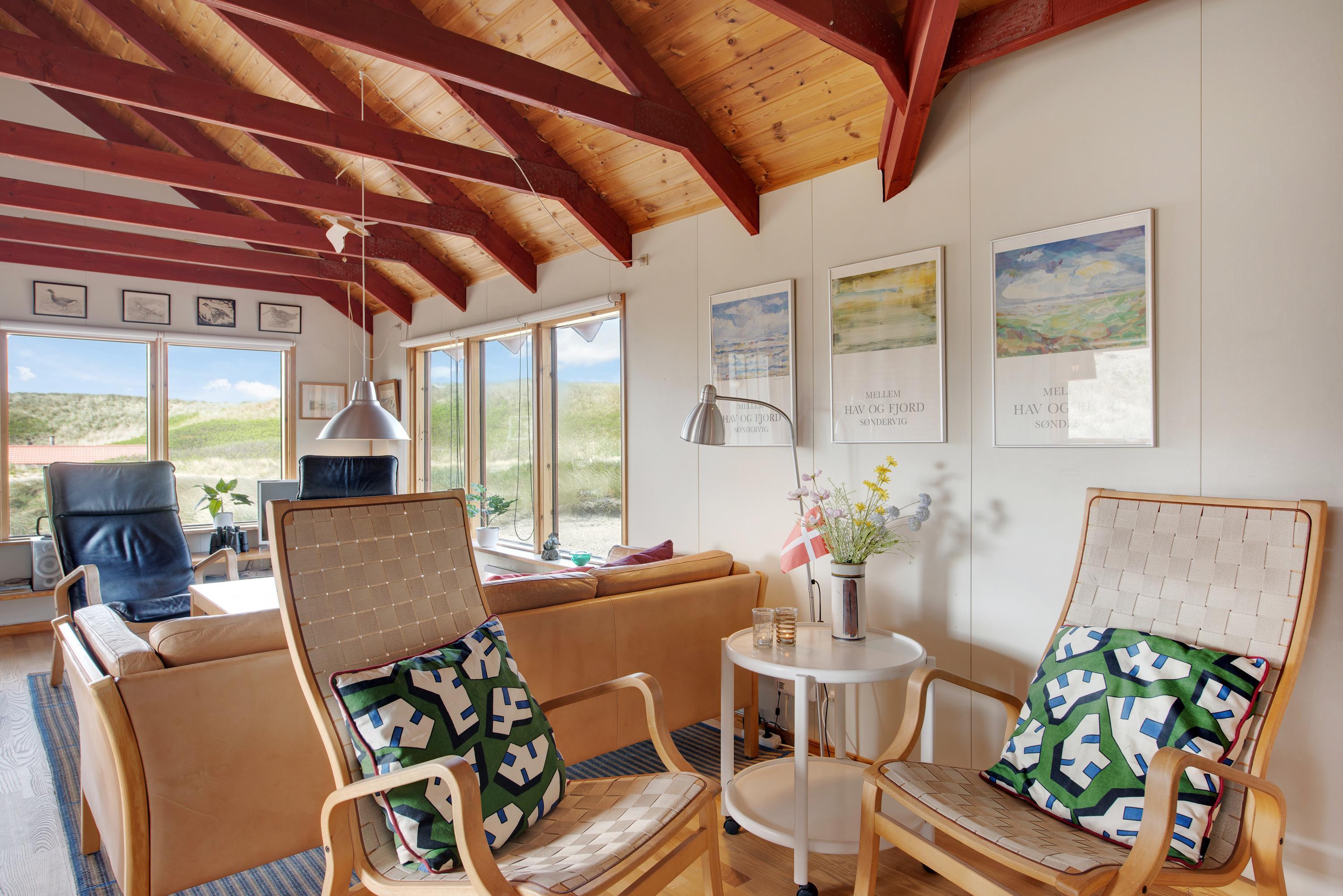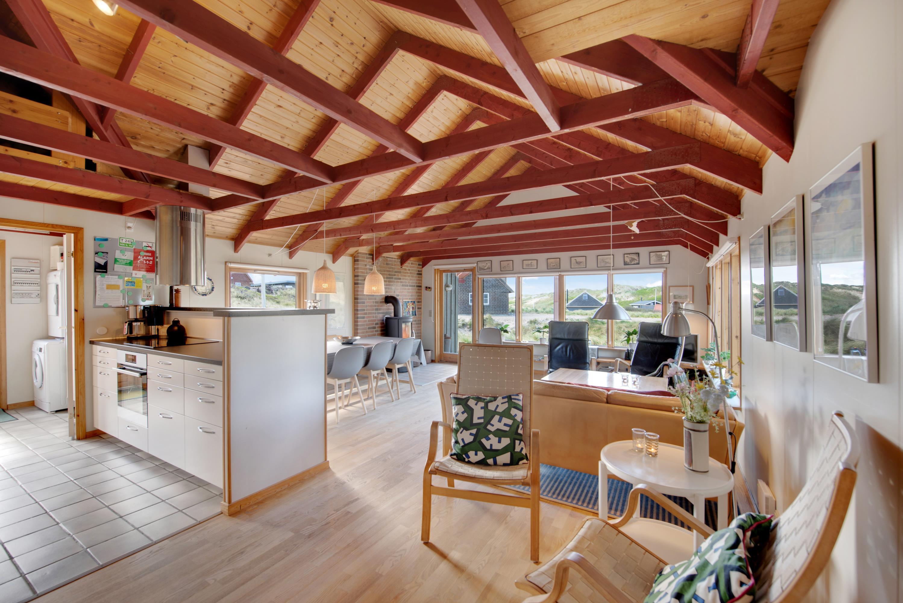Stuen ligger i åben forbindelse til samtalekøkkenet. Sammen med husets brændeovn skaber det de perfekte rammer for en hyggelig ferie i familiens samvær. Knitren i brændeovnen er perfekt lige meget om I spiller brætspil eller ser jeres yndlingsfilm og serier.
