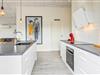 Feriehuset er indrettet i et lyst og lækkert design. De store vinduespartier giver et dejligt lysindfald i det store opholdsrum, hvor der er plads til hele jeres familie samt jeres hund – Hvis I har sådan en. Her kan I nyde nogle hyggelige timer med hinanden – Enten med et spil eller et godt glas rødvin imens I laver aftensmaden. Det er kun fantasien, der sætter grænser!