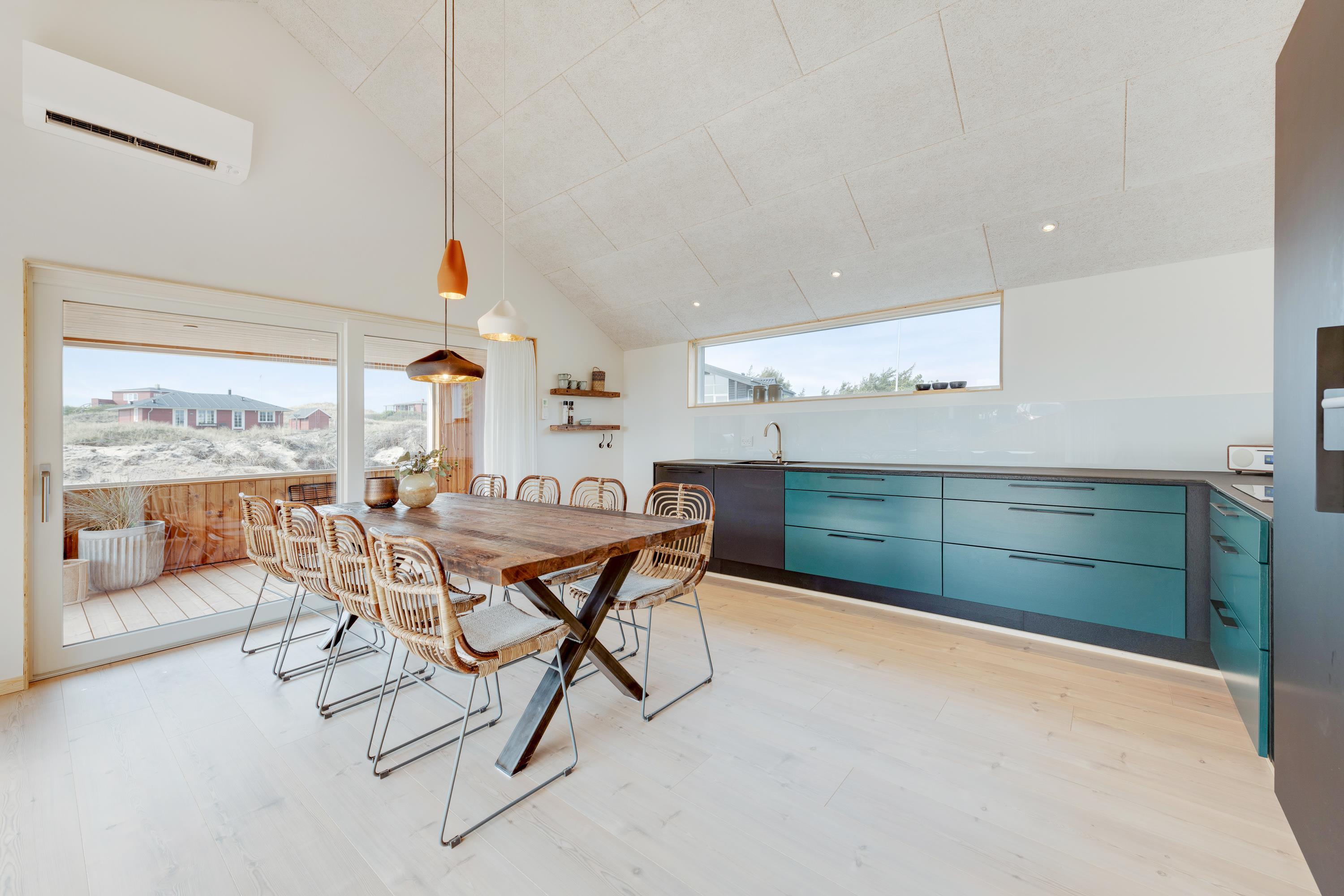 Med 130 m2 terrasse, hvoraf hele 65 m2 er overdækket, er der skabt optimale muligheder for at nyde ferietiden udendørs. Nyd duften og lyden af Vesterhavet og udsigten på det omkringliggende klitlandskab imens I slapper af og solbader eller nyder aftenstilheden med lidt lækkert grillmad og en flaske god rødvin.