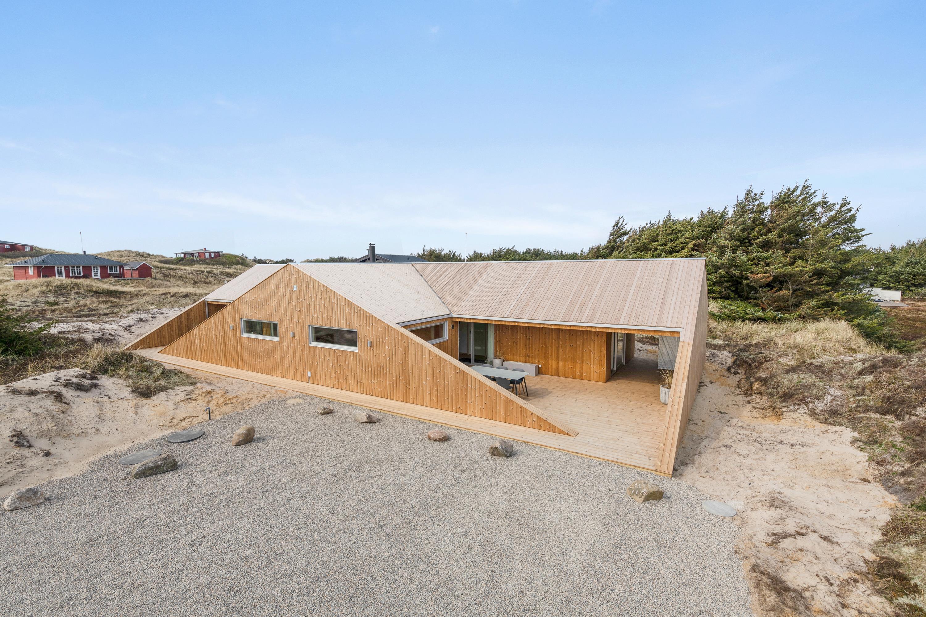 Leder I efter et feriehus ud over det sædvanlige? Så er Marehalmen 54 helt ideelt! Den spændende arkitektur og opbygning er lavet med omtanke for beliggenheden - nemlig så feriehuset passer flot ind i landskabet og så du får mest muligt ud af den smukke natur. Derudover er det flot, lyst og rummeligt indrettet, så du har god plads til en hyggelig og afslappende familieferie. Feriehuset er opført i 2019 og byder på en stilren indretning (med sauna, badekar og udendørs bruser!), aktivitetsrum og ikke mindst en fantastisk beliggenhed kun 350 meter fra Vesterhavet.