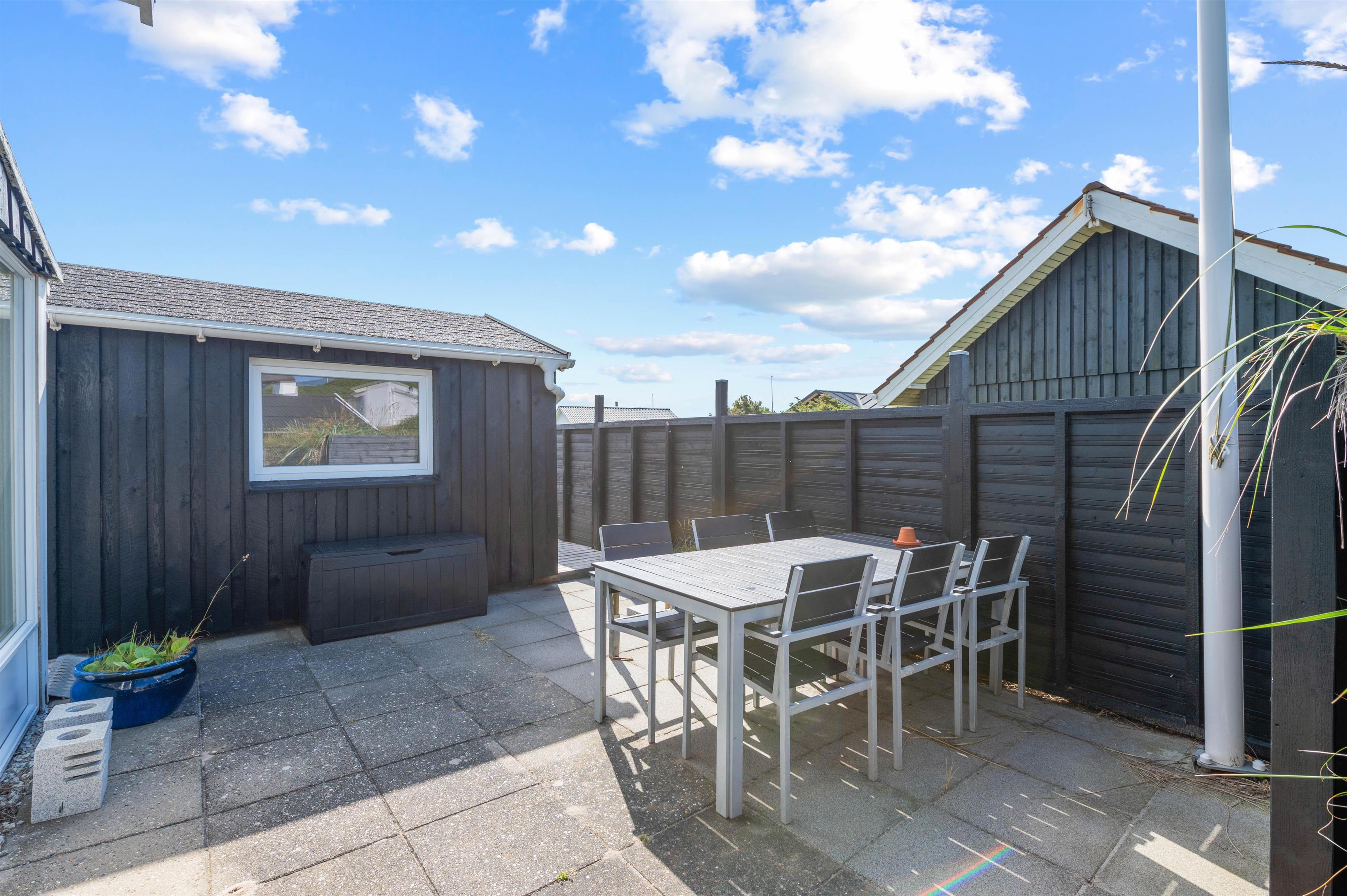 På de varme feriedage kan I rykke ud på sommerhusets skønne terrasse. Her har I både havemøbler og liggestole til rådighed, så I har god mulighed for at slappe af på en god plads i solen. På terrassen har I også mulighed for at grille en lækker middag om aftenen på sommerhusets grill. Sommerhuset ligger desuden på en indhegnet grund, så jeres hund kan sagtens være med ude, uden at gå på opdagelse på egen hånd.