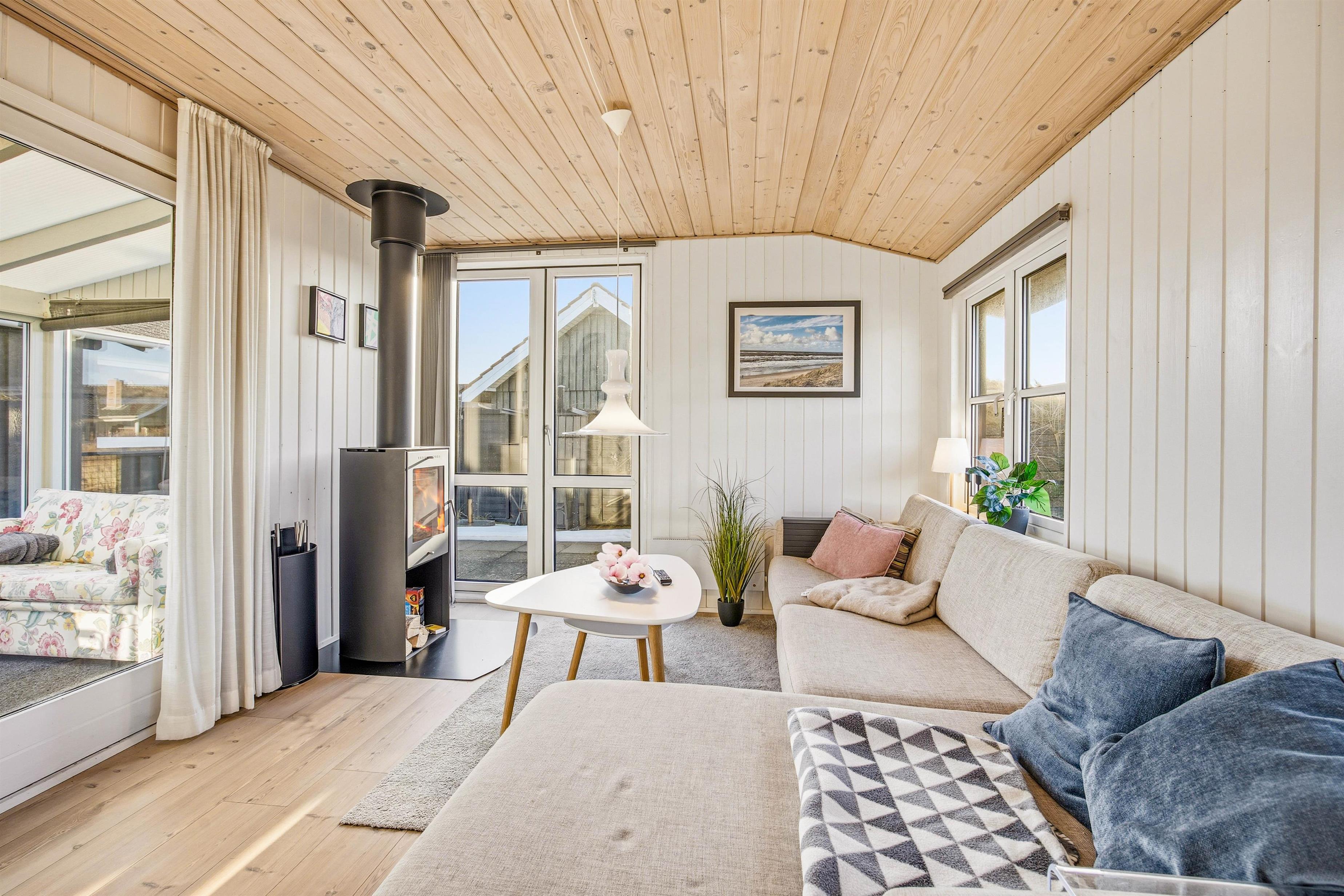 Sommerhuset er udstyret med gode praktiske faciliteter, der hjælper jer med de praktiske gøremål på ferien. Vaskemaskinen og tørretumbleren hjælper jer med tøjvasken, mens opvaskemaskinen hjælper med opvasken efter madlavningen. For ekstra hygge har i på de koldere feriedage mulighed for at tænde op i den hyggelige brændeovn og mærke varmen brede sig i hele feriehuset.
