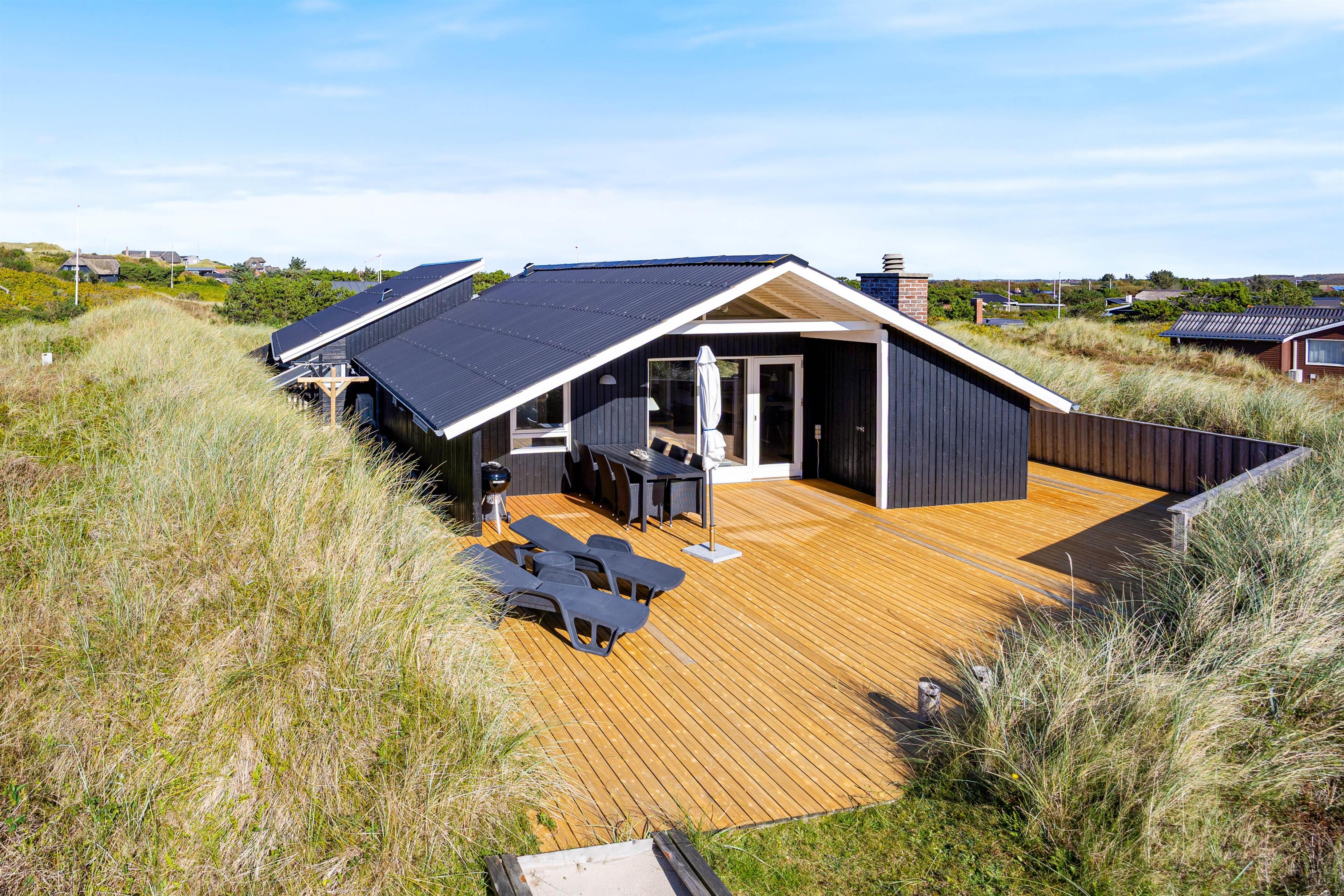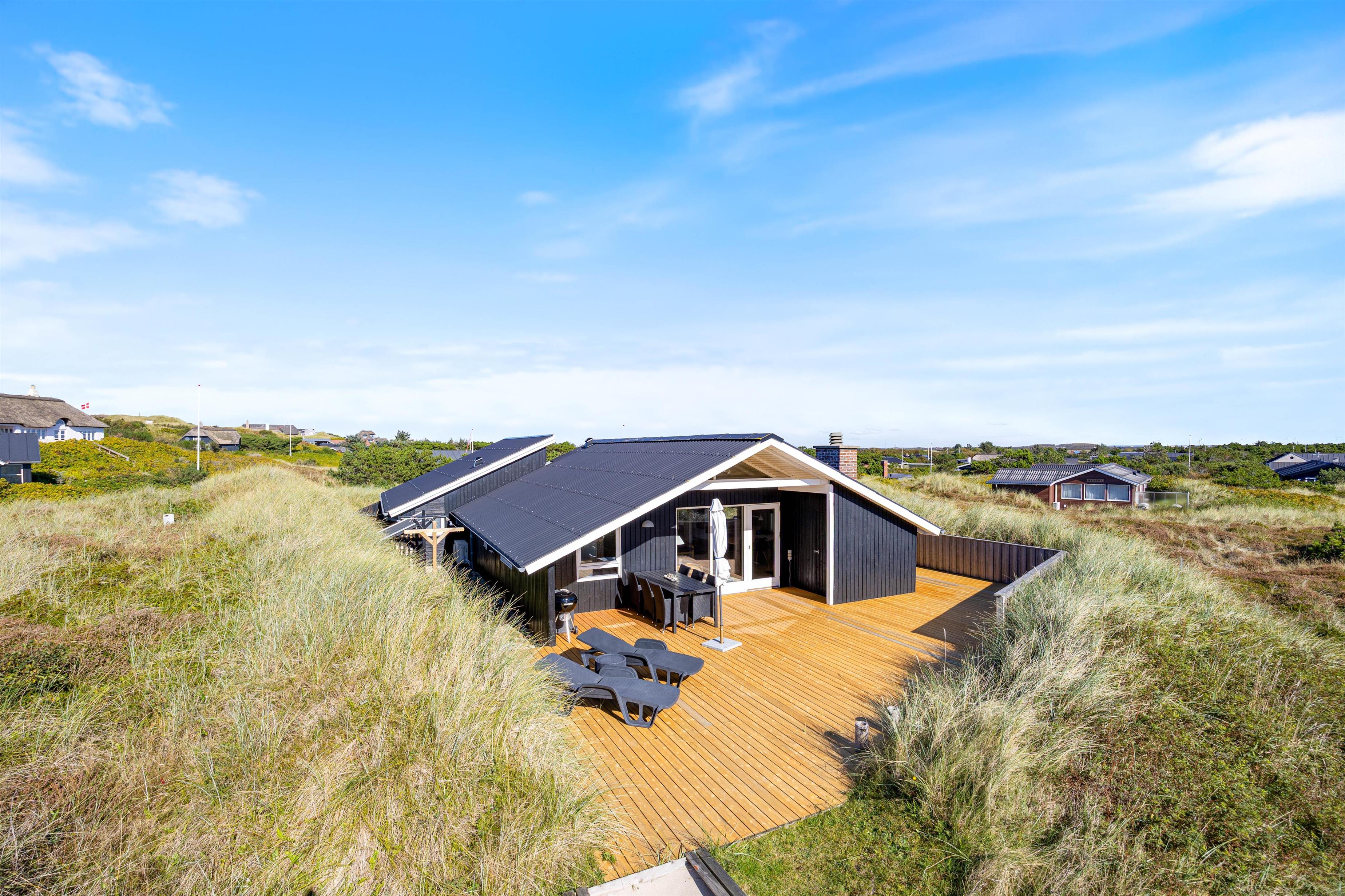 Hele herligheden ligger på en kuperet klitgrund med god afskærmning hele vejen rundt, så I på ugeneret vis kan slappe af og beundre udsigten ud over Søndervigs lyngklædte klitter. Om aftenen kan morgendagens planer blive lagt rundt om havebordet, mens I nyder en veltilberedt grillmiddag og får dagens sidste solstråler med.