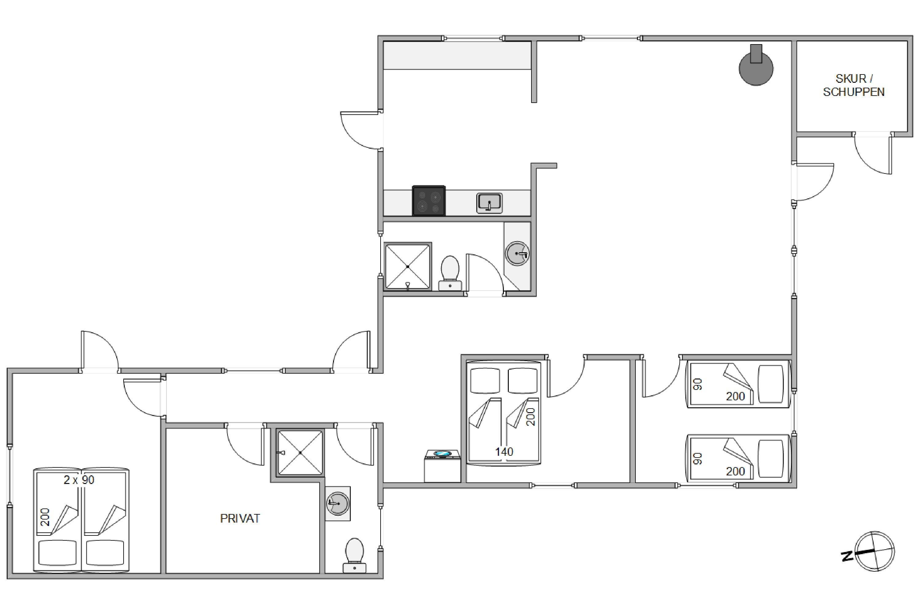 I det åbne opholdsrum, som fungerer som husets hjerte, står brændeovnen, som med sine knitrende flammer altid sætter den gode feriestemning i centrum. Tre gode soveværelser med opbevaringsplads til ferieklæderne sørger for, at I hurtigt kan få pakket kufferterne ud og føle jer hjemme. Opvaskemaskinen i køkkenet og vaskemaskinen i den rummelige entré fjerner fokus fra de huslige pligter, og med hele 2 badeværelser (m. gulvvarme) slipper I for lange køer til badet om morgenen.