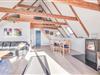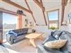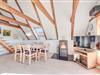 Loftet er åbnet i kip, og de mange vinduer lader solens lys slippe inden for, hvilket resulterer i åbne og imødekommende omgivelser hele huset igennem. Især i det kombinerede køkken- og stueområde er der lagt op masser af samvær og hygge, og I finder flere små kroge rundt i huset, hvor I kan sidde i fred og ro med en god bog og en kop kaffe. Dog er husets bedste udsigtspost nok den, som I finder på hemsen ved ovenlysvinduet. Her kan I virklig nyde den skønne og omkringliggende natur.