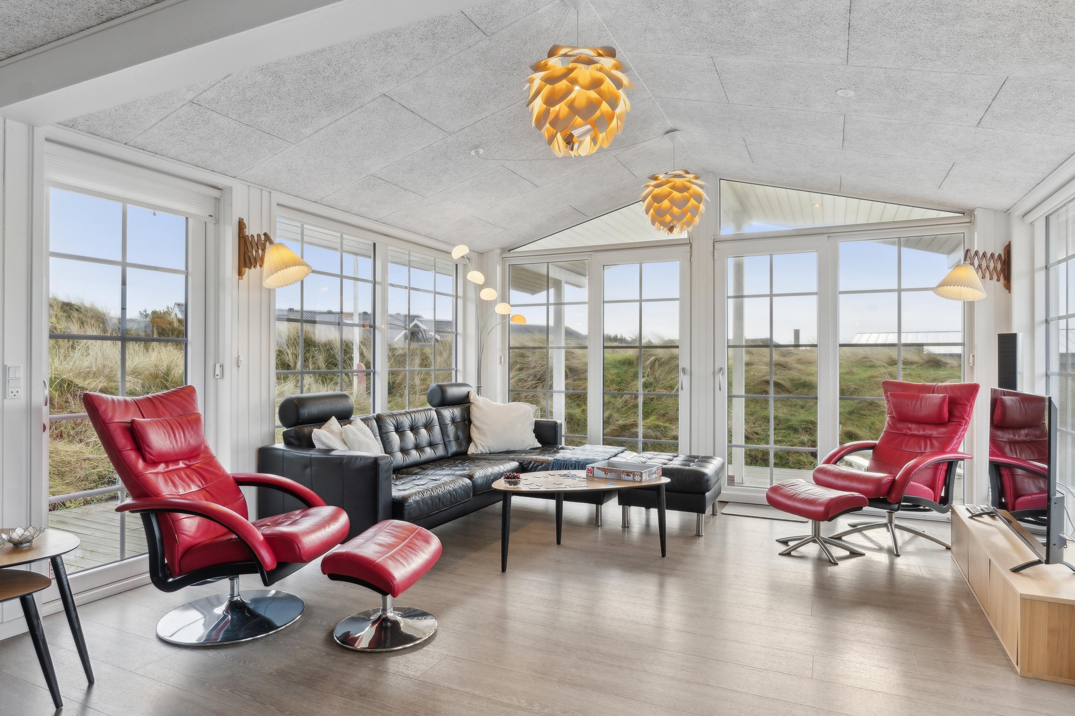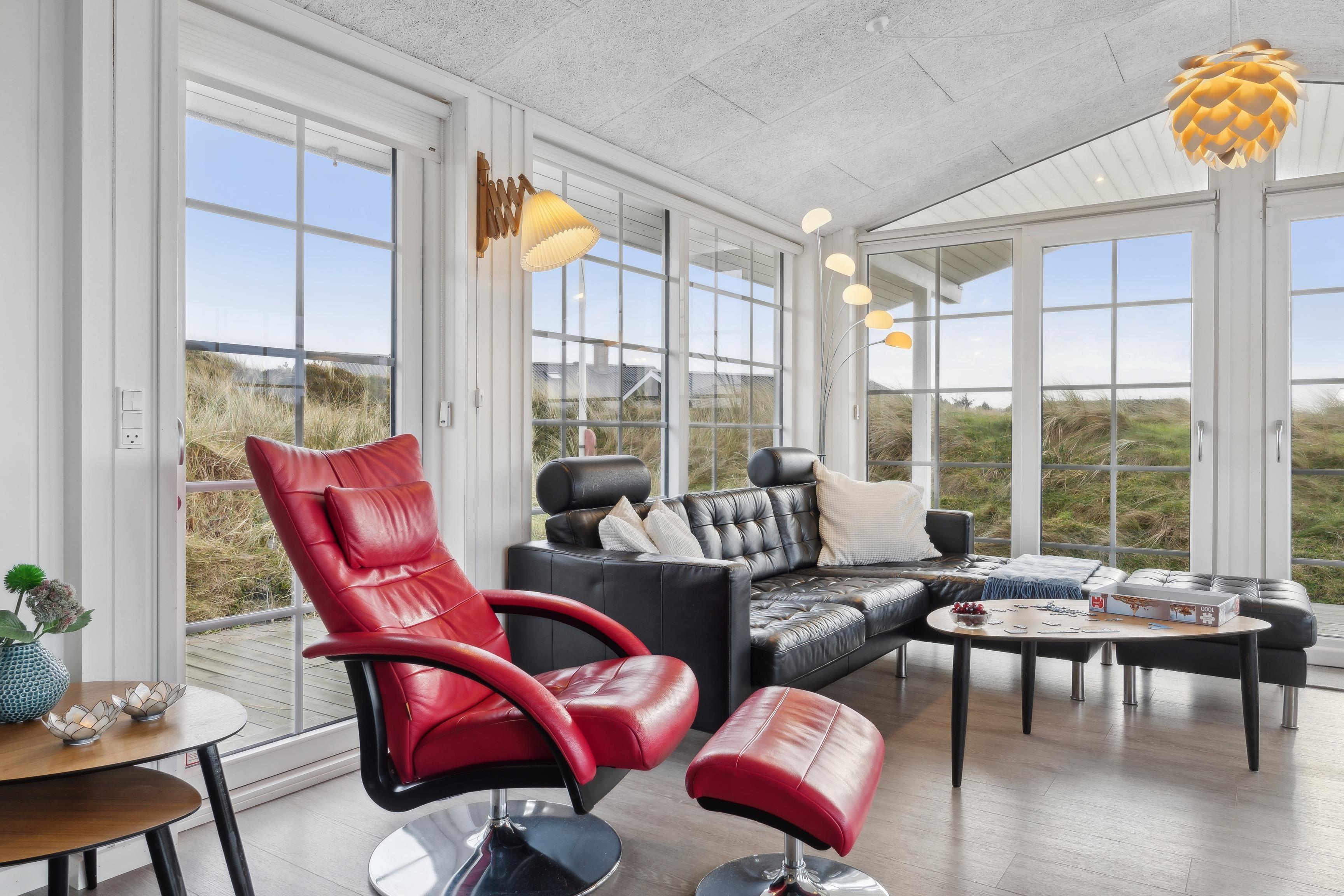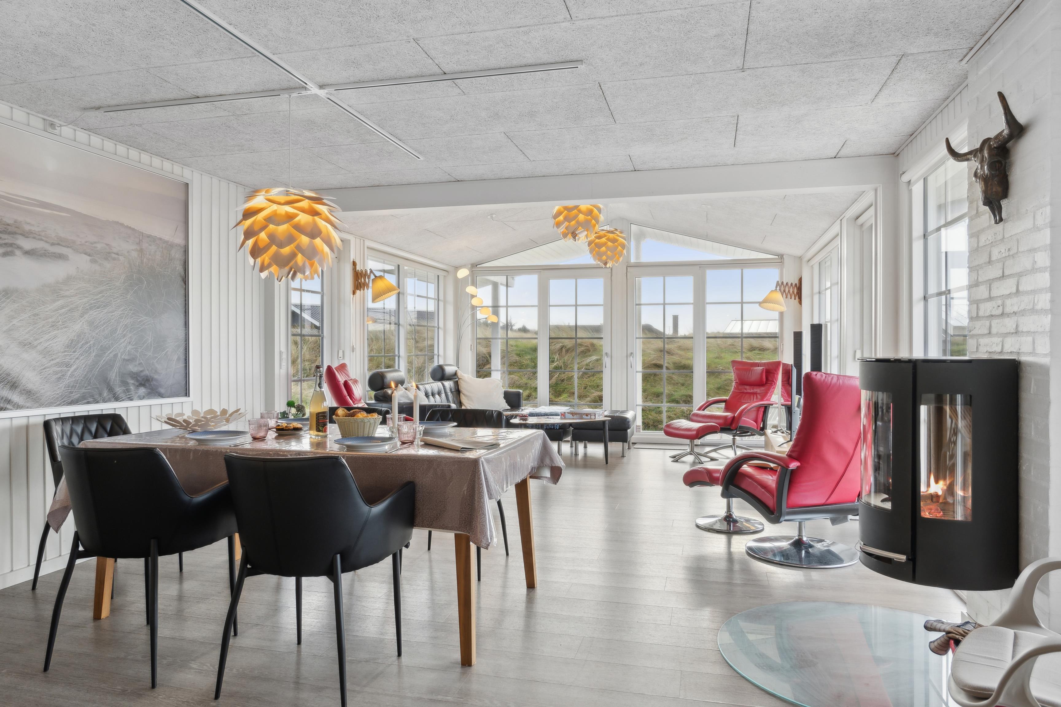 Et charmerende sommerhus på 90 m² venter på jer på Nordsøvej 295, omgivet af marehalm og smukke klitter. Her kan op til 6 personer – og en firbenet ven – nyde en skøn ferie i rolige omgivelser. Feriehuset i Søndervig er fuldt udstyret, så I kan slappe af og nyde ferien i fulde drag. Om aftenen kan I tænde op i brændeovnen og lade den hyggelige varme skabe en afslappende atmosfære.