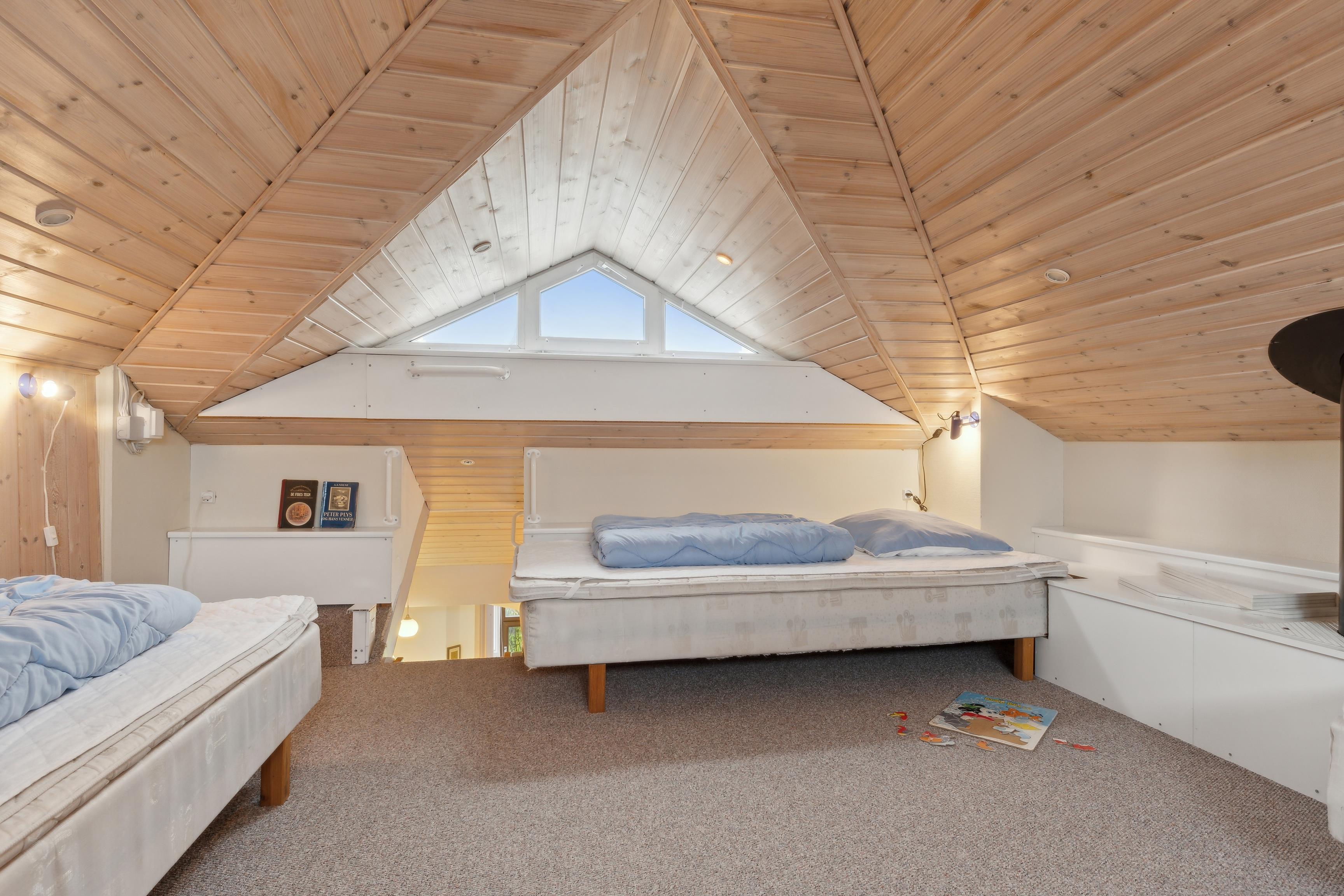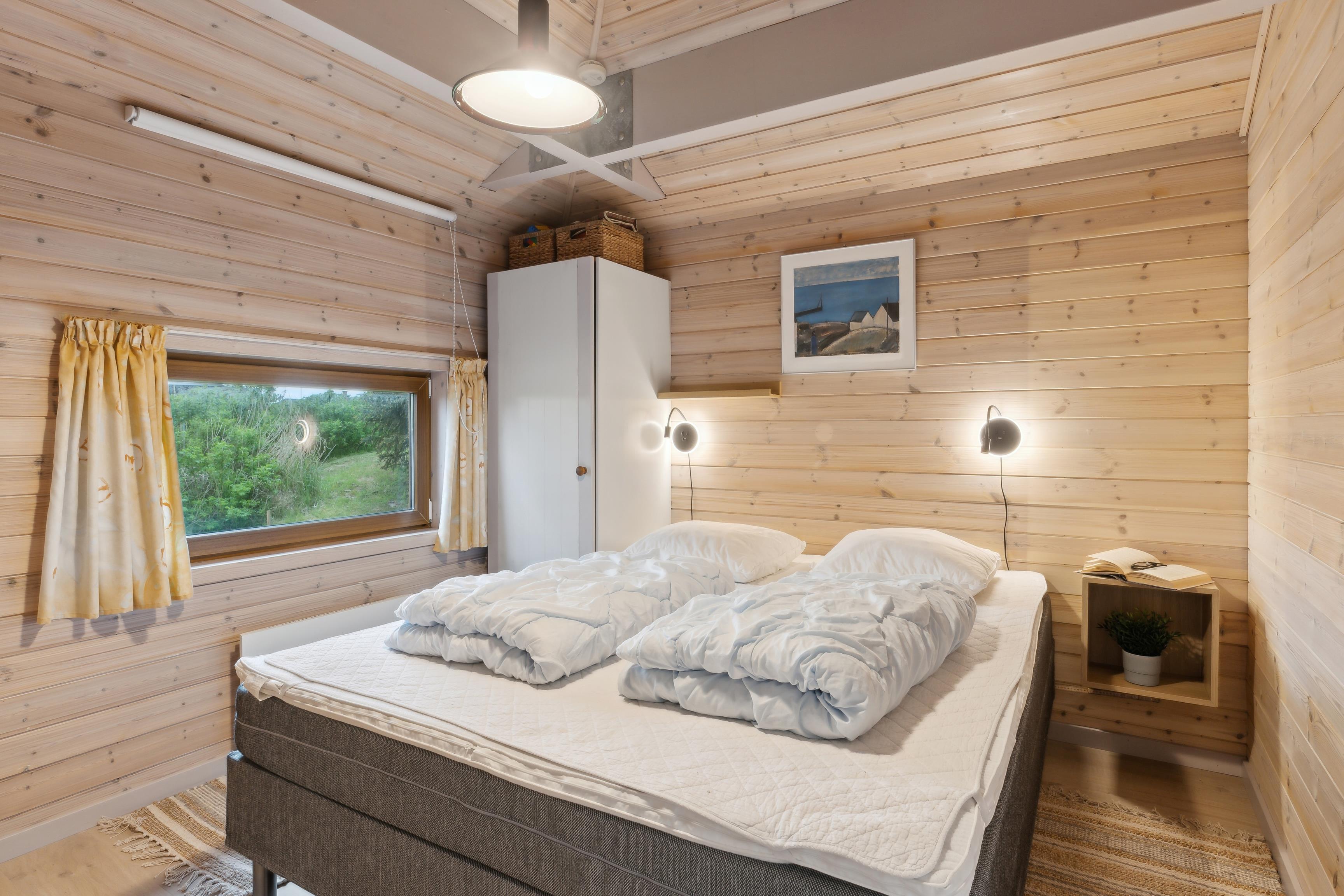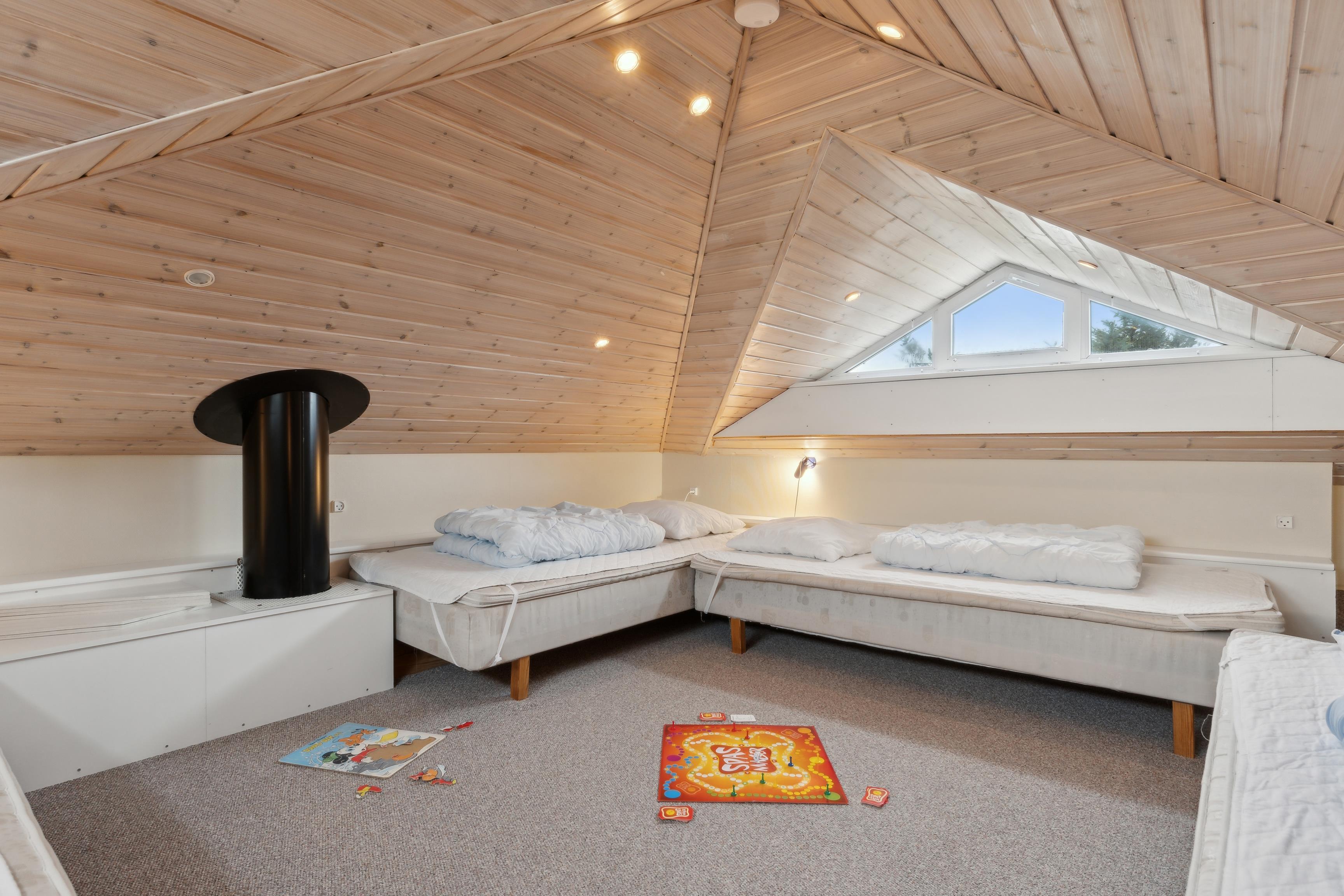 Dette dejlige sommerhus på 100 m² byder på god plads til op til 6 personer. Indretningen er gennemtænkt og inkluderer 3 soveværelser, 1 badeværelse. Den hyggelige opholdsstue har en brændeovn og et åbent, veludstyret køkken, hvilket gør det ideelt til en ferie med hele familien. Der er også en hems, hvor børnene kan sove eller bare hygge sig og have det sjovt i deres eget lille rum.
