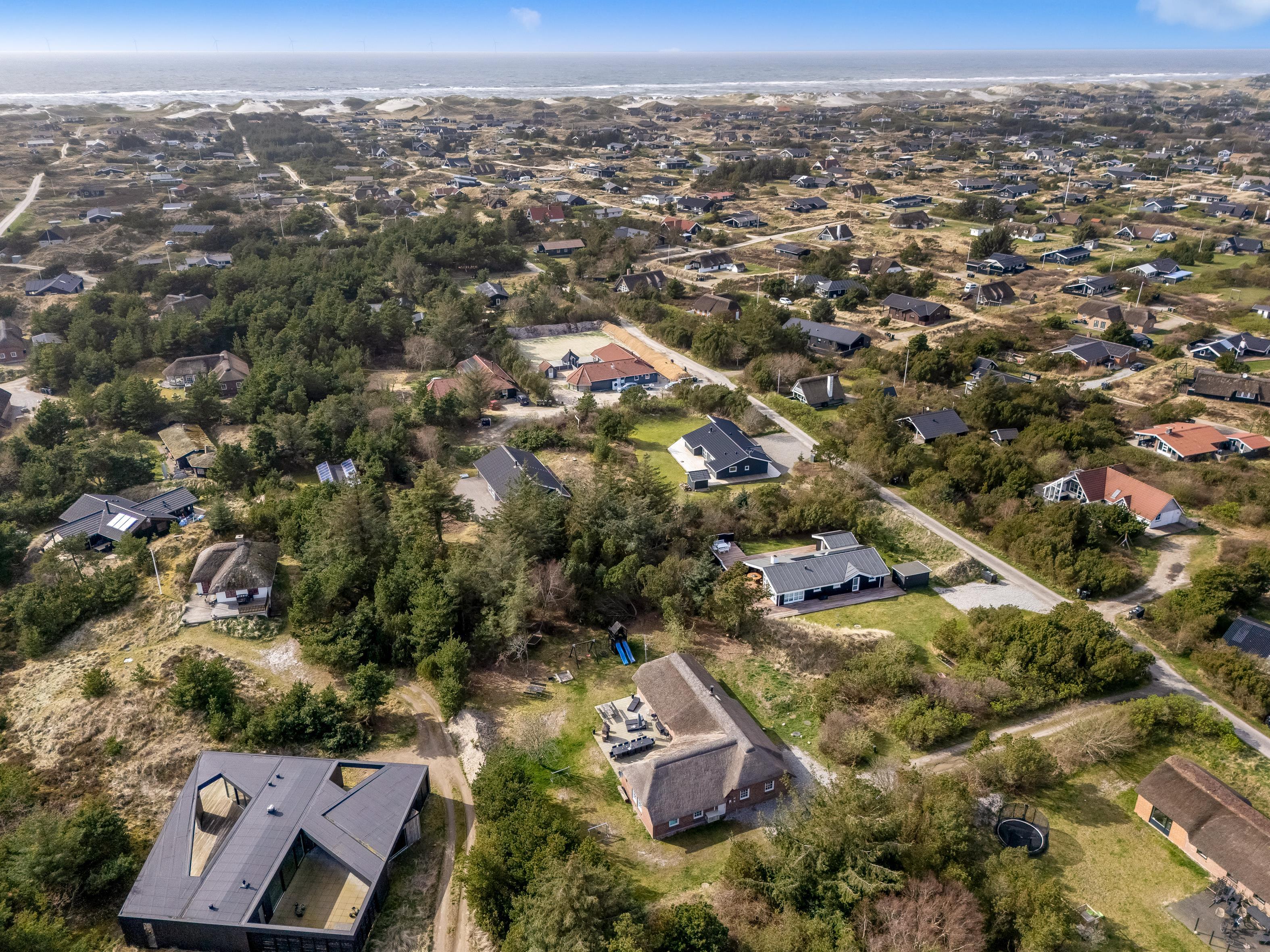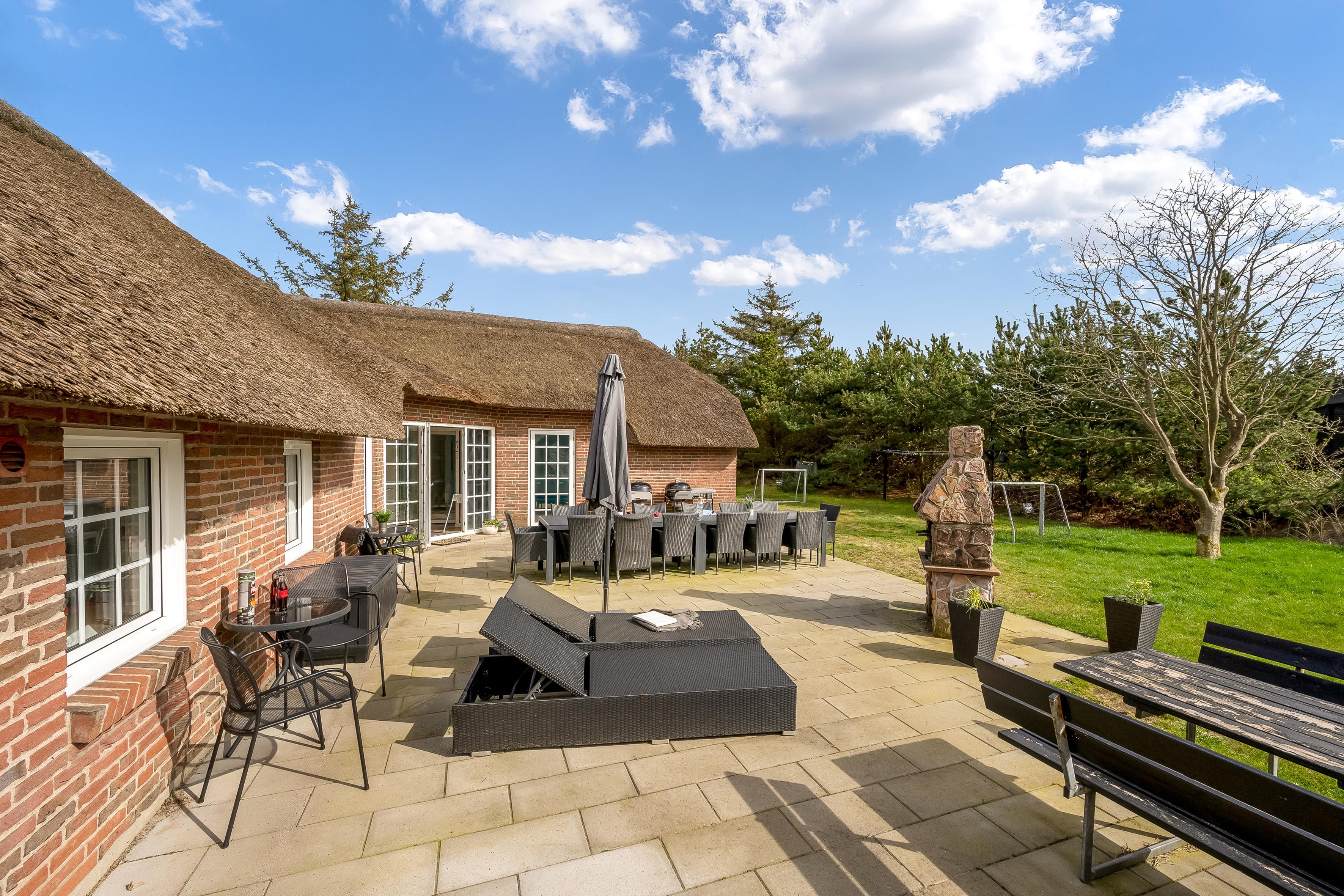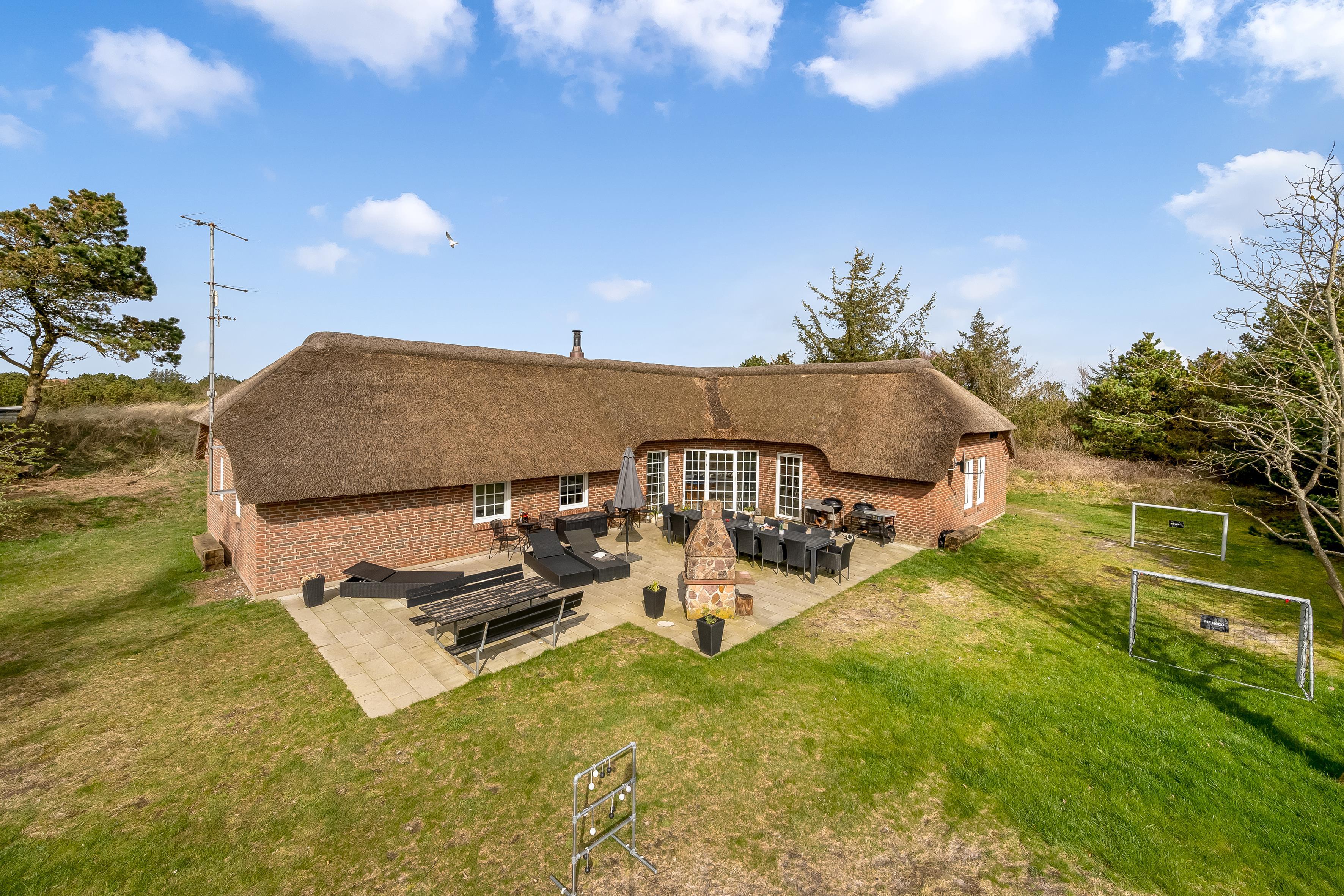 Dette store poolhus er bygget i 1992 og moderniseret i 2023 og har plads til 14 personer og maks. 3 kæledyr på imponerende 192 m². Det er ideelt til flere familier eller en stor gruppe. Kun 800 meter fra den brede strand ved det fantastiske Vesterhav er det en fantastisk base for en dejlig og afslappende ferie tæt på den danske natur.