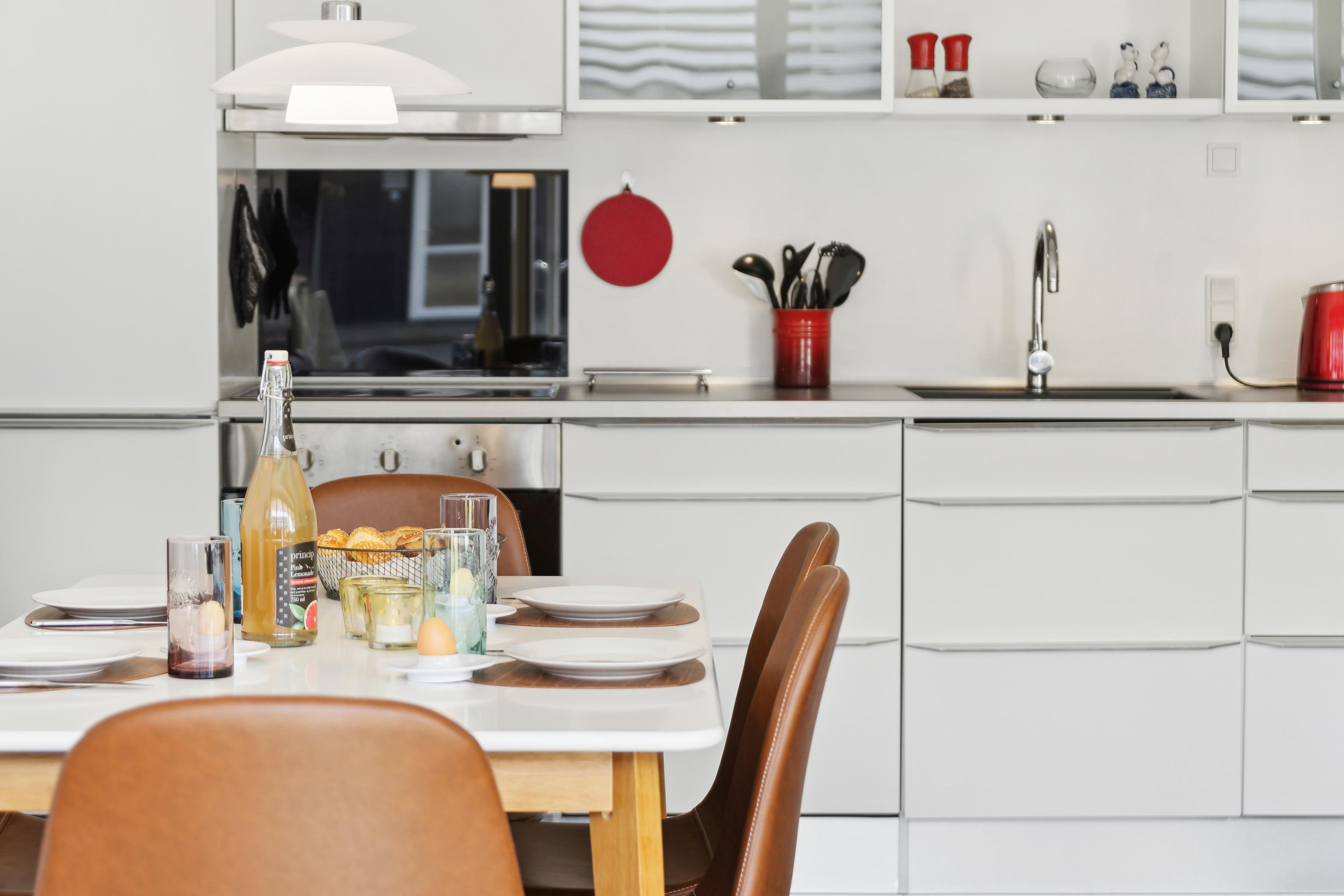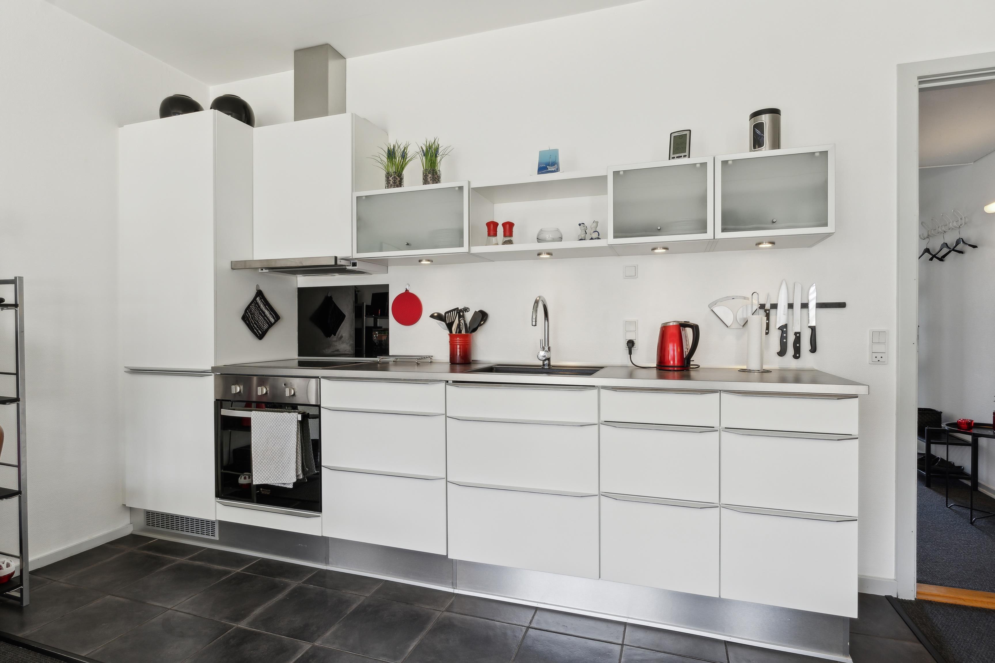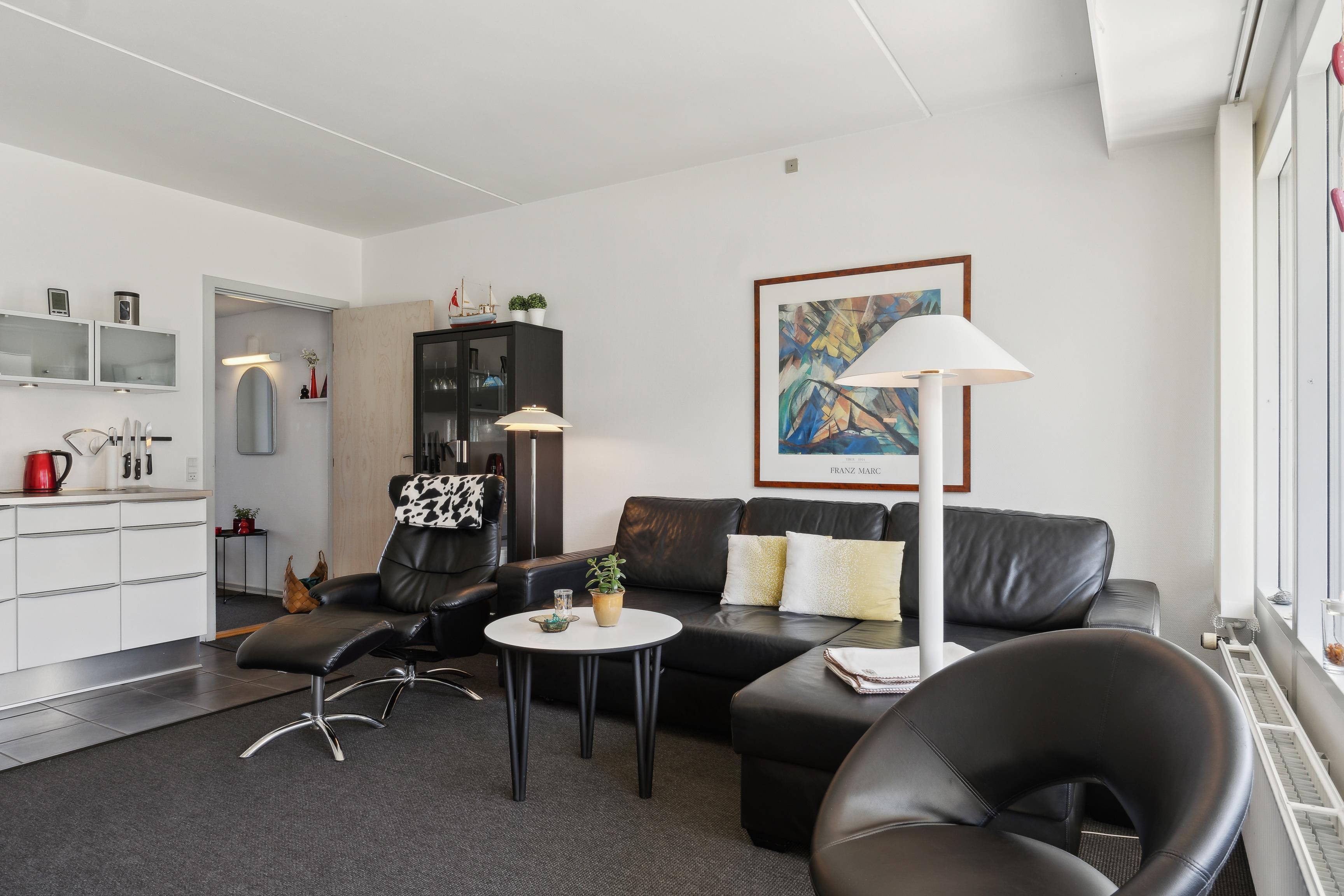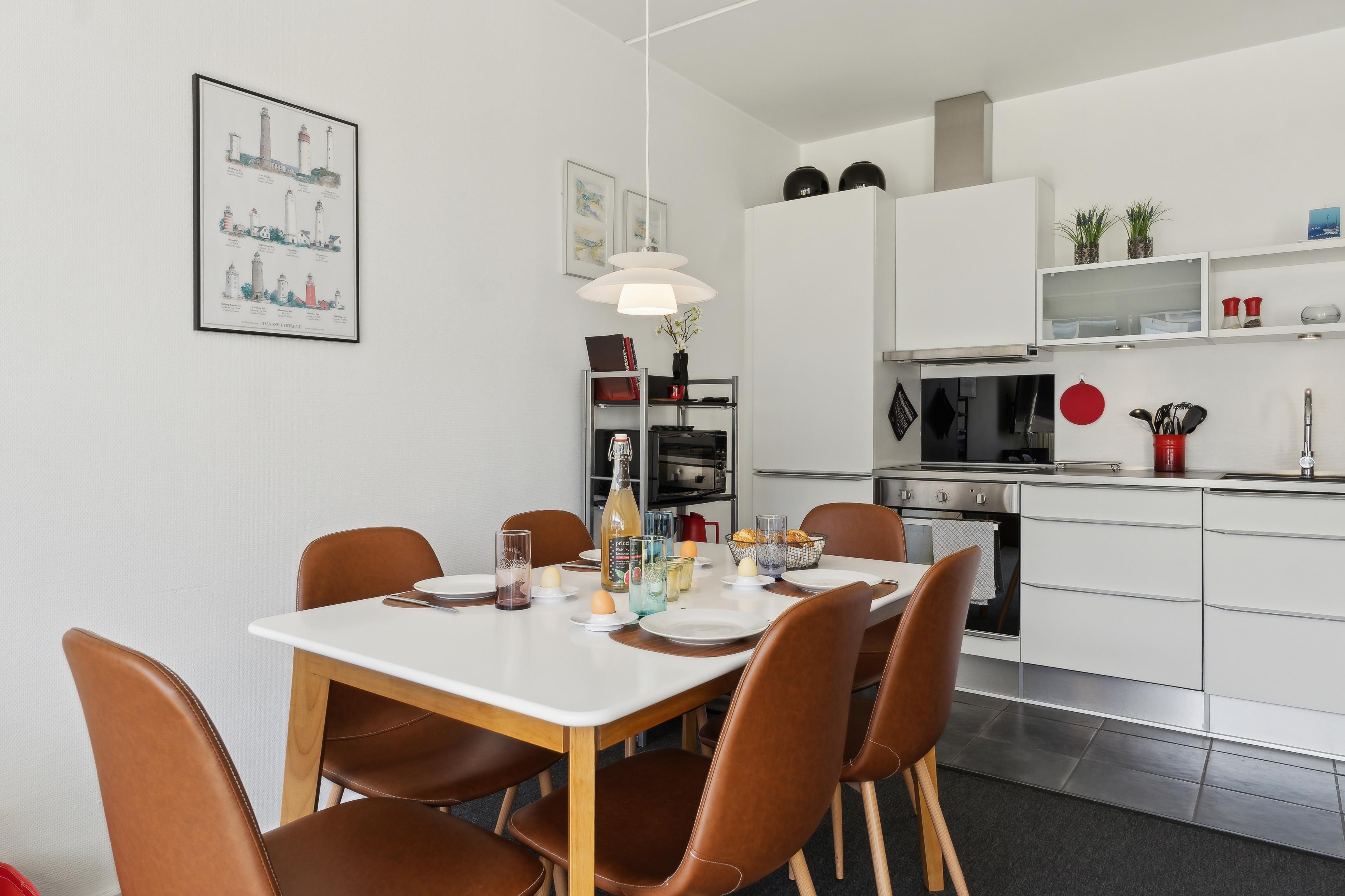 Lejligheden er på 50 kvadratmeter, og alrummet fungerer som hjertet i jeres ferieophold. Her er køkken, stue og spiseplads samlet, så I har masser af muligheder for at tilbringe tid sammen – hvad enten I laver mad, spiller spil eller bare slapper af. Køkkenet er veludstyret, og når maden er lavet, kan I glæde jer over, at der er en opvaskemaskine, som tager sig af opvasken.