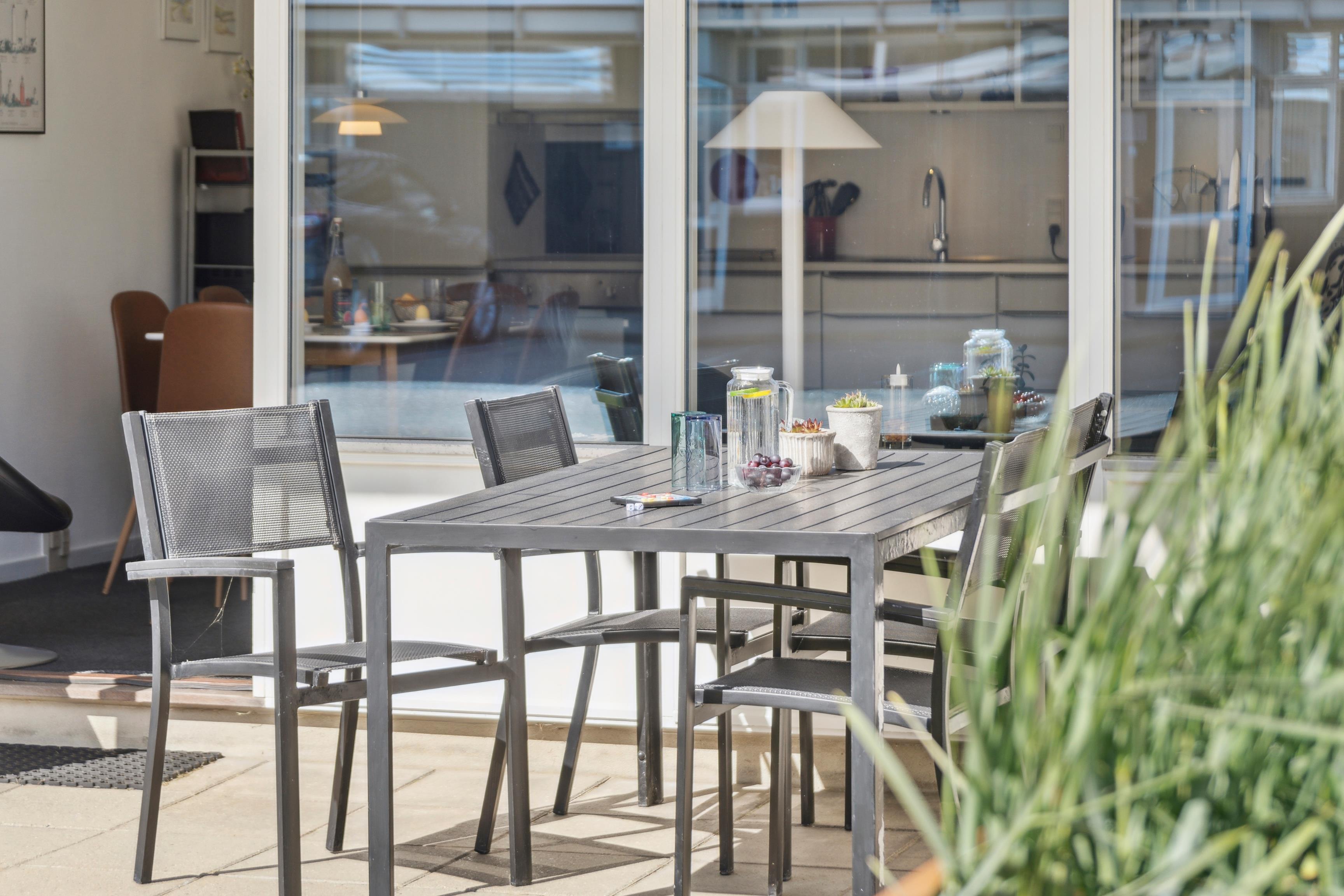 Fra alrummet kan I træde ud på den overdækkede terrasse, hvor I kan sidde i havemøblerne og nyde ferieøjeblikkene – måske med lyden af bølgerne som baggrundsmusik.