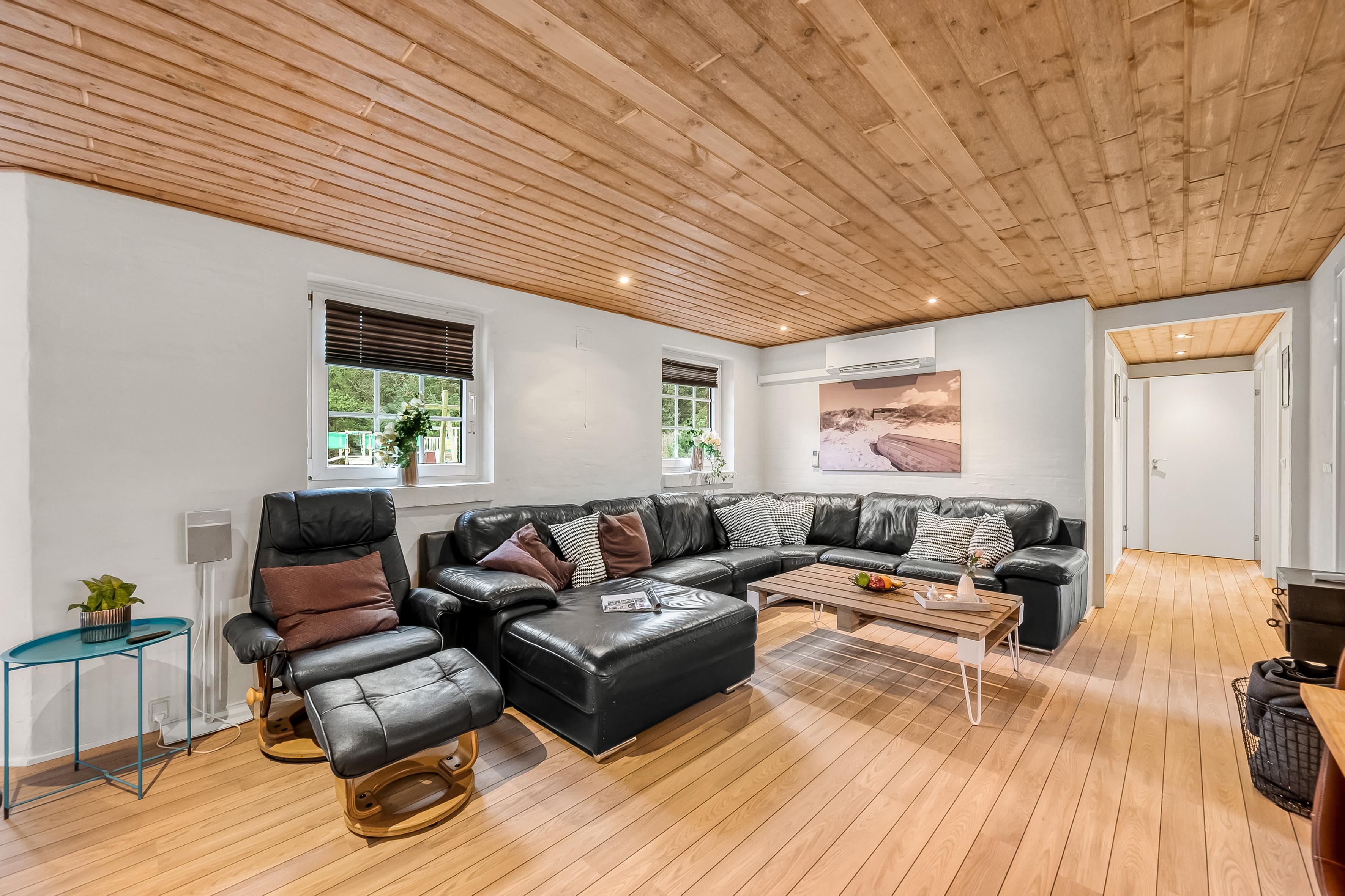 Slå jer ned i det store sofaarrangement foran den store fladskærm og nyd en aften med film eller spil. Der er også underholdning i form af et bordfodboldbord og trådløst internet.