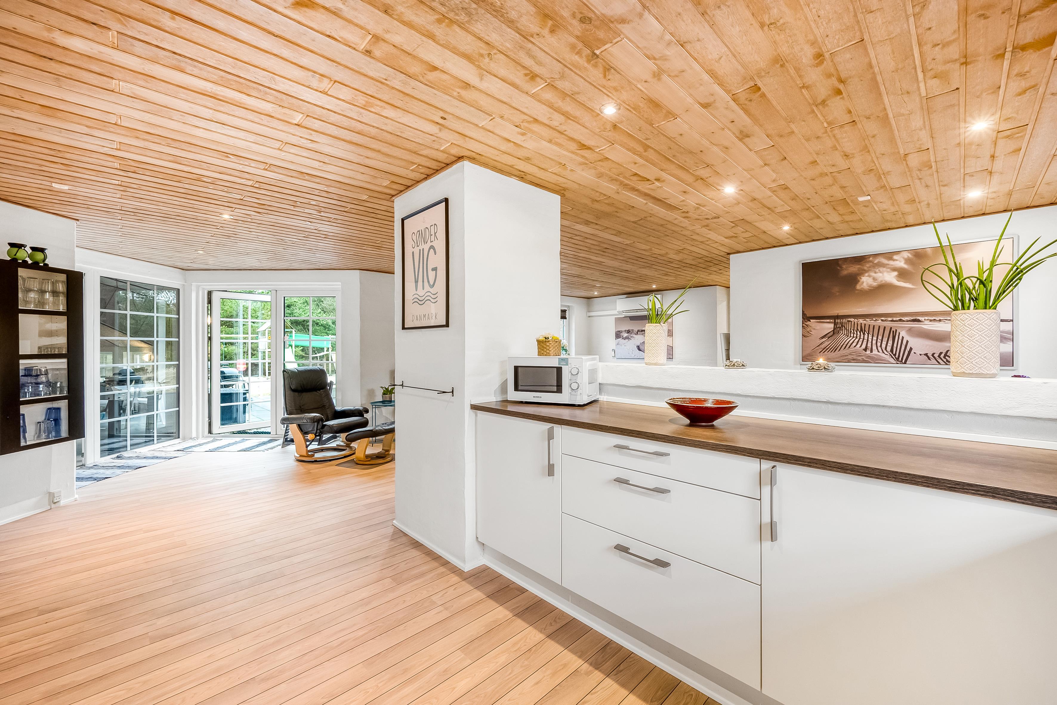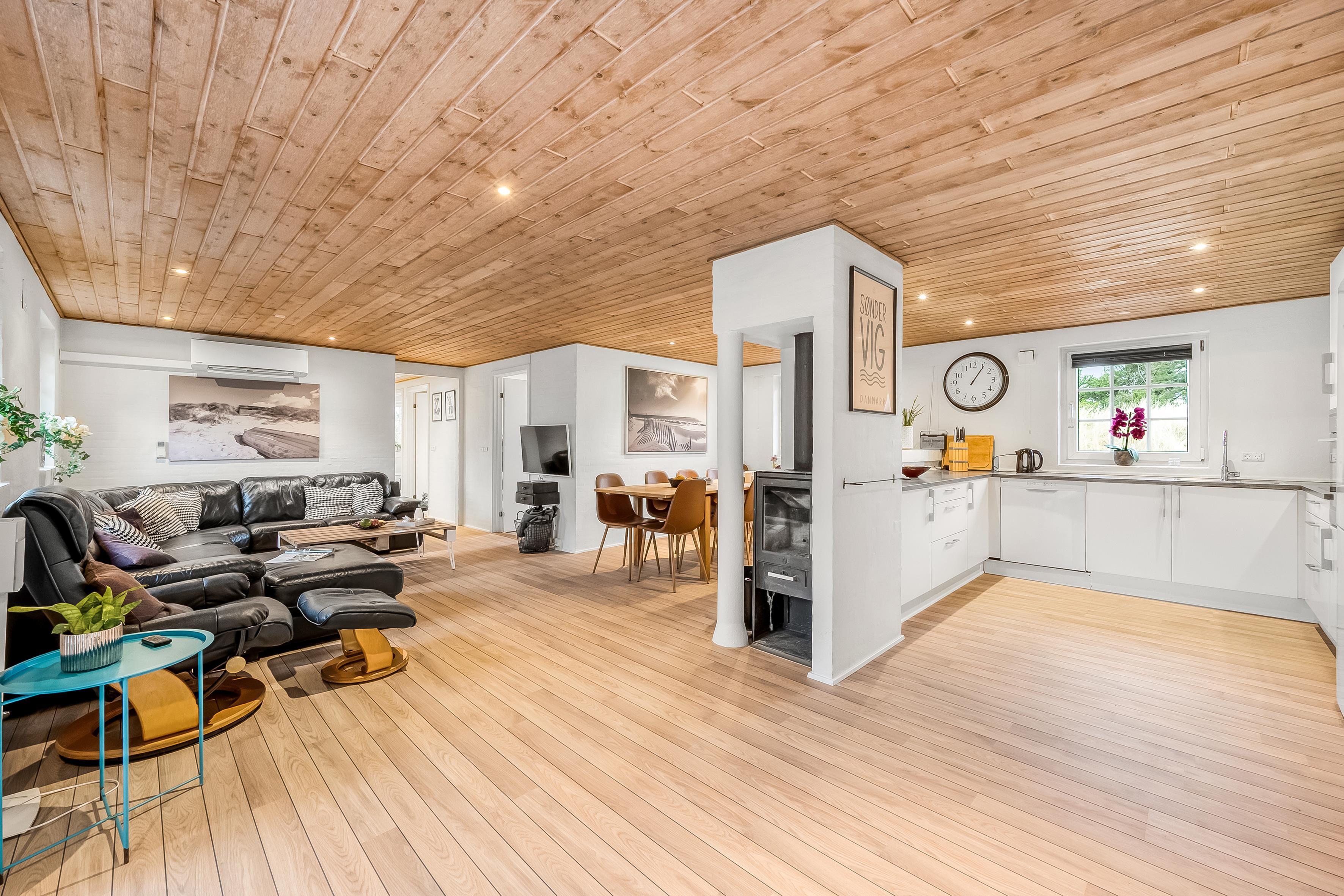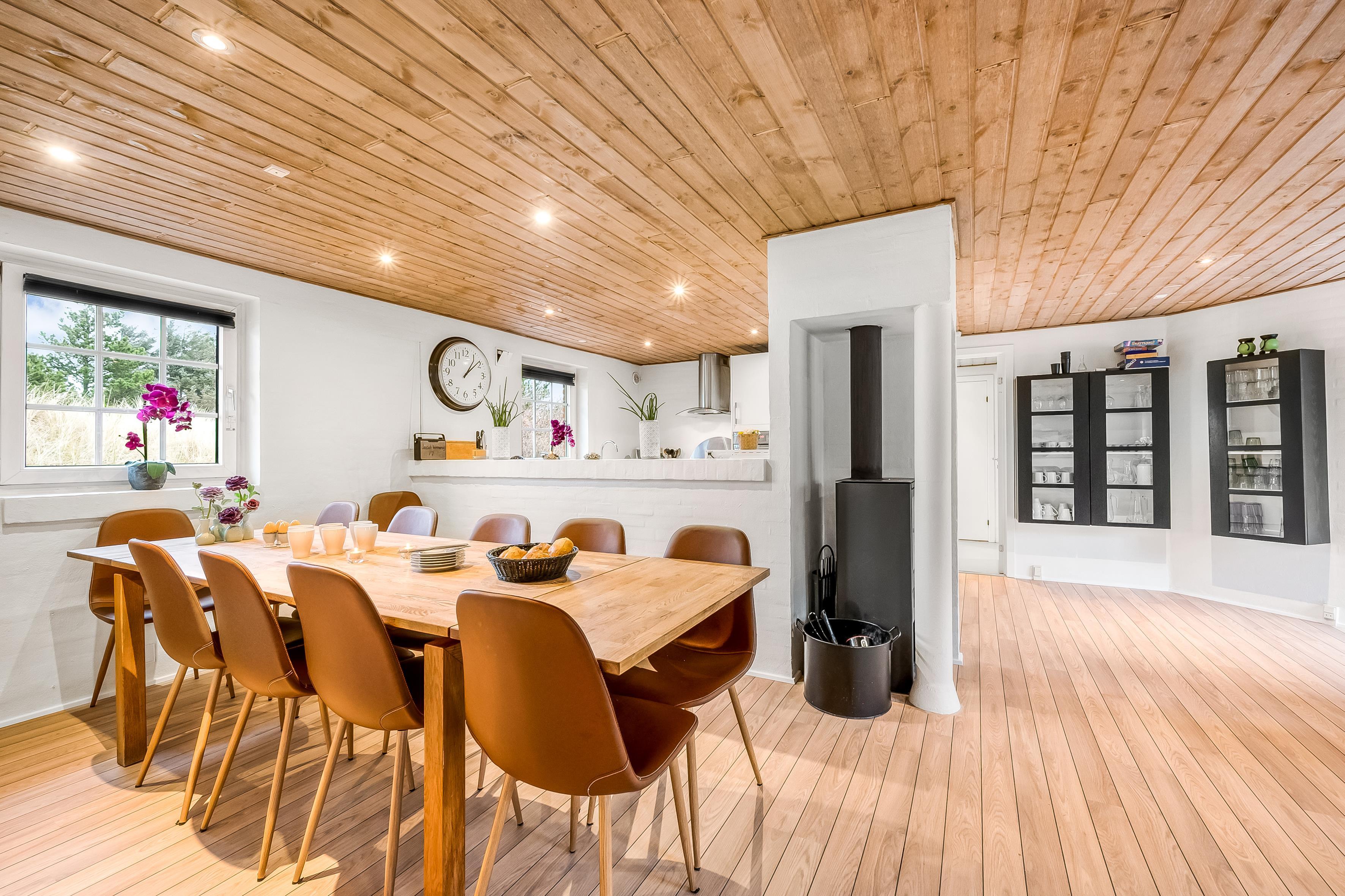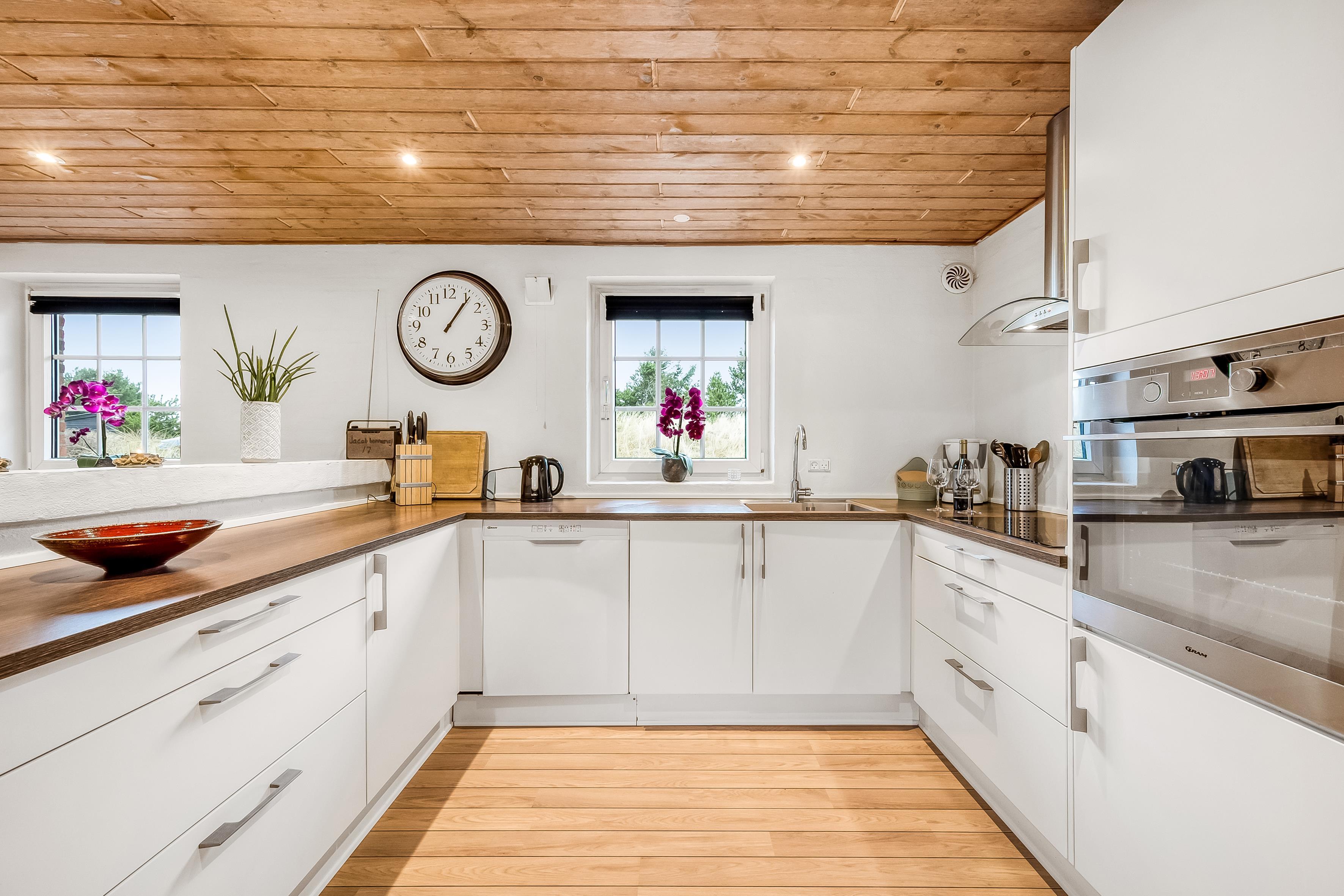 Det veludstyrede køkken-alrum er et socialt samlingspunkt, hvor I kan lave lækre måltider. Køkkenet er udstyret med moderne faciliteter, herunder en opvaskemaskine, ovn, 4 keramiske kogeplader, mikrobølgeovn og et køleskab med en 94 liters fryser. Brændeovnen tilføjer hygge og varme til rummet.