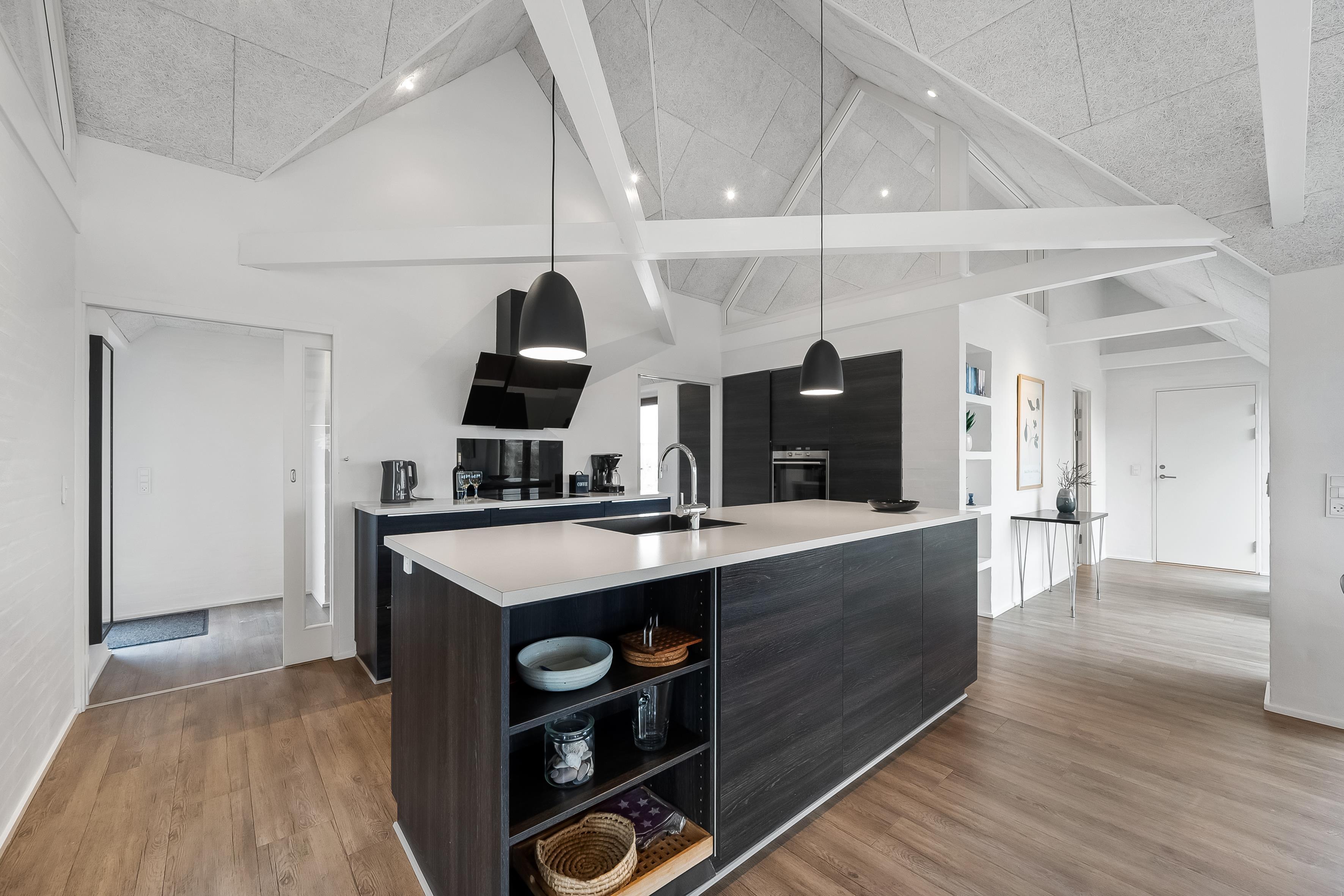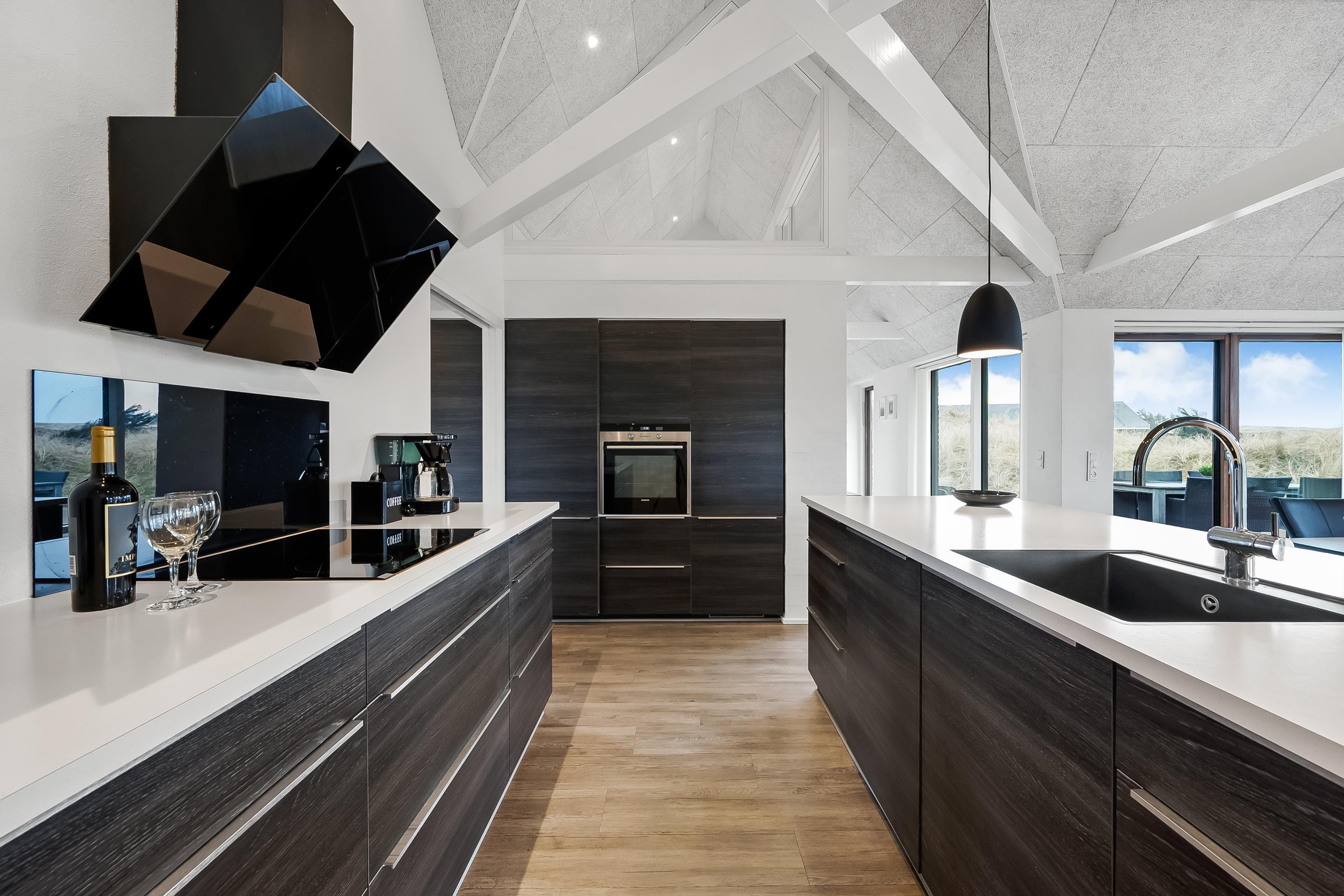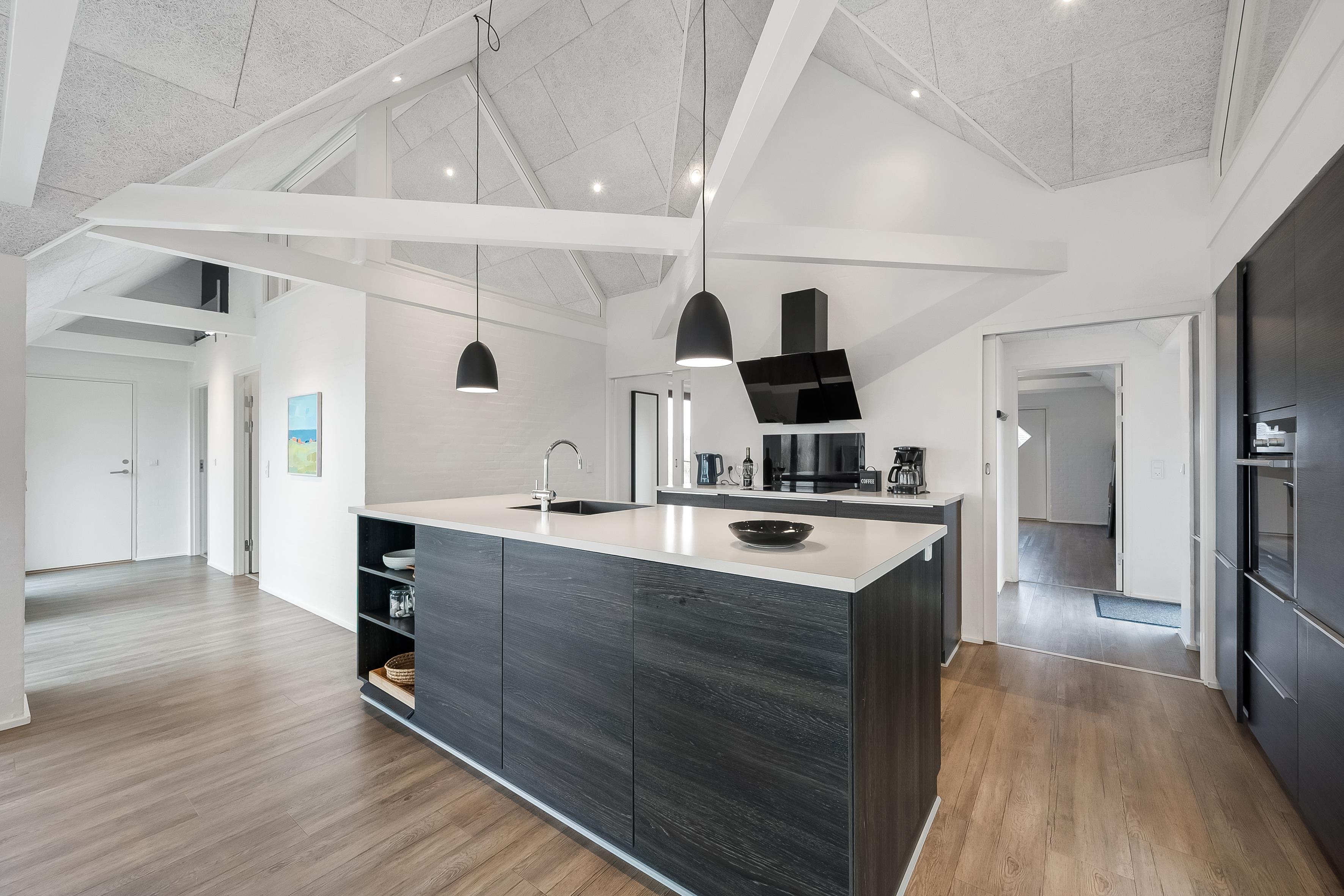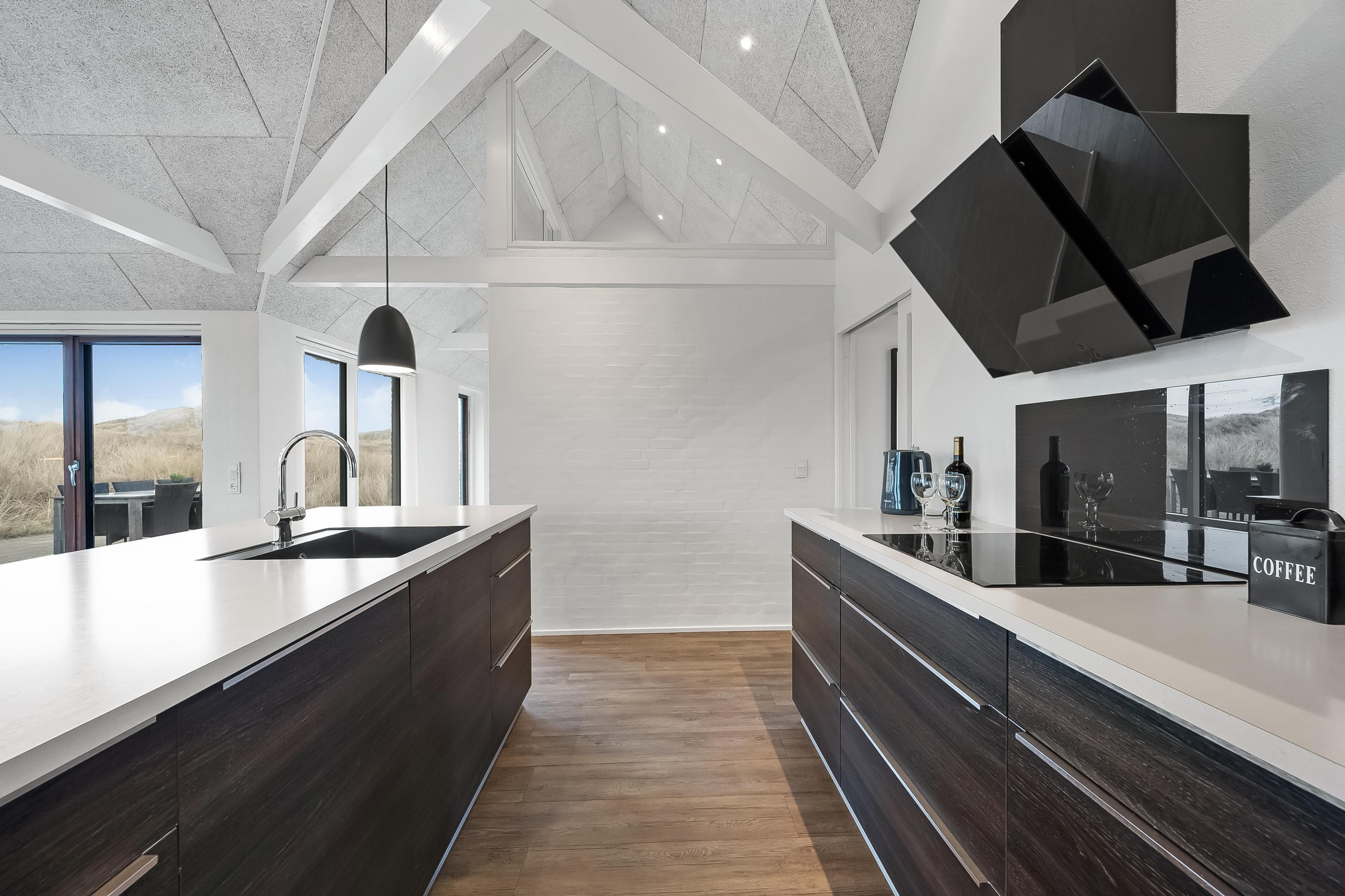 I det rummelige åbne køkken og opholdsstue møder moderne elegance praktisk funktionalitet. Store vinduer tilbyder panoramaudsigt over de betagende klitter, mens møbler af høj kvalitet inviterer dig til at slappe af og koble fra. Et fladskærms-tv med satellitmodtagelse af tyske kanaler, en dvd-afspiller og Wi-Fi sørger for underholdning for hele familien. En brændeovn skaber en hyggelig atmosfære på kølige aftener. En energieffektiv varmepumpe og gulvvarme i hele huset sikrer behagelige temperaturer året rundt.