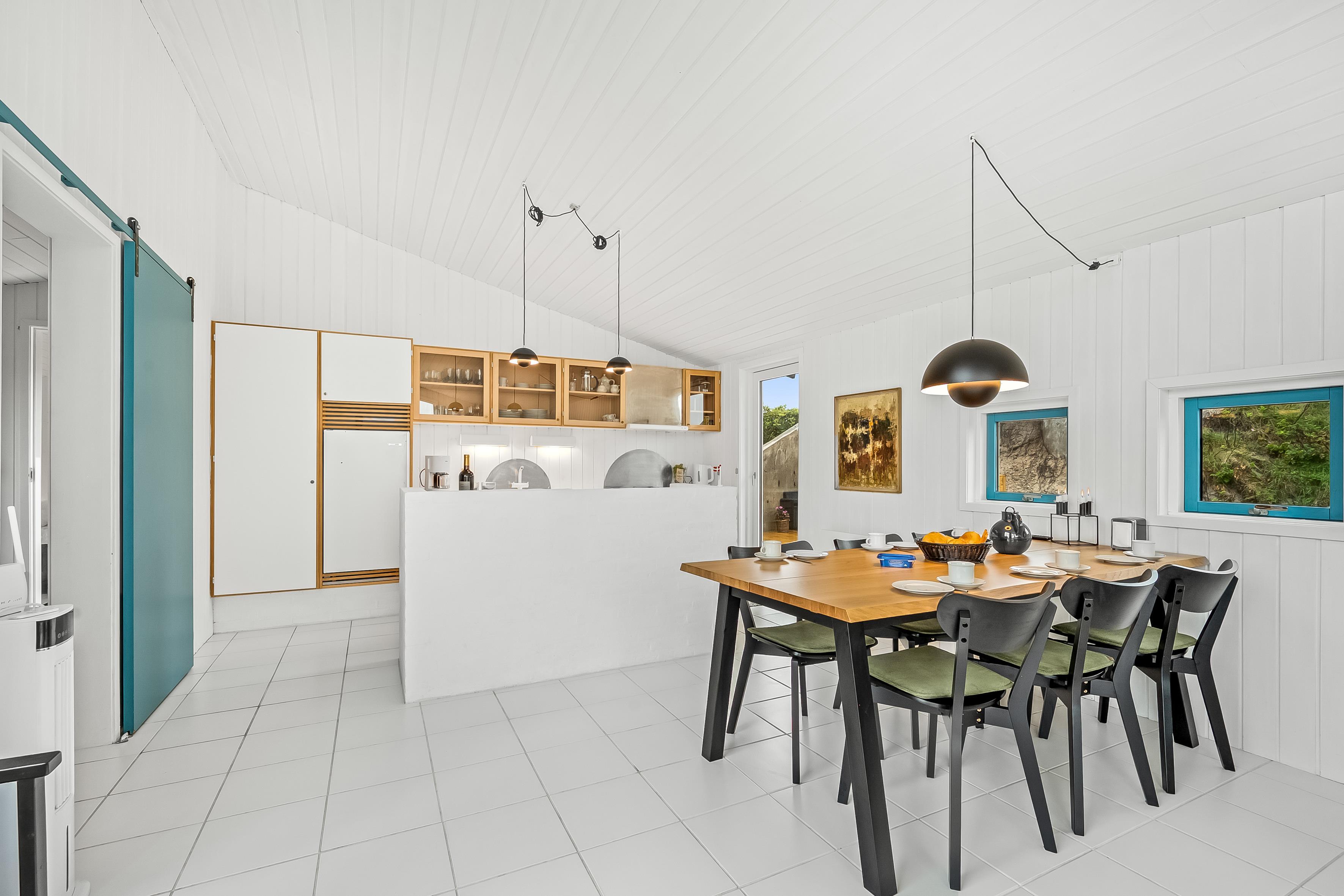 Indvendigt er huset også designet til komfort og afslapning. Den åbne stue med store vinduer fra gulv til loft lukker masser af naturligt lys ind. Pejsen skaber en særlig hyggelig atmosfære, når flammerne blafrer, og det tørre træ knitrer. Huset har også en omkostningseffektiv og energieffektiv varmepumpe, som hjælper dig med at indstille din egen personlige temperatur. I det åbne køkken finder du alt, hvad du behøver for at bage hjemmebagt brød og duftende pandekager, mens familien samles til et kortspil ved spisebordet eller ser en film i den komfortable stue.