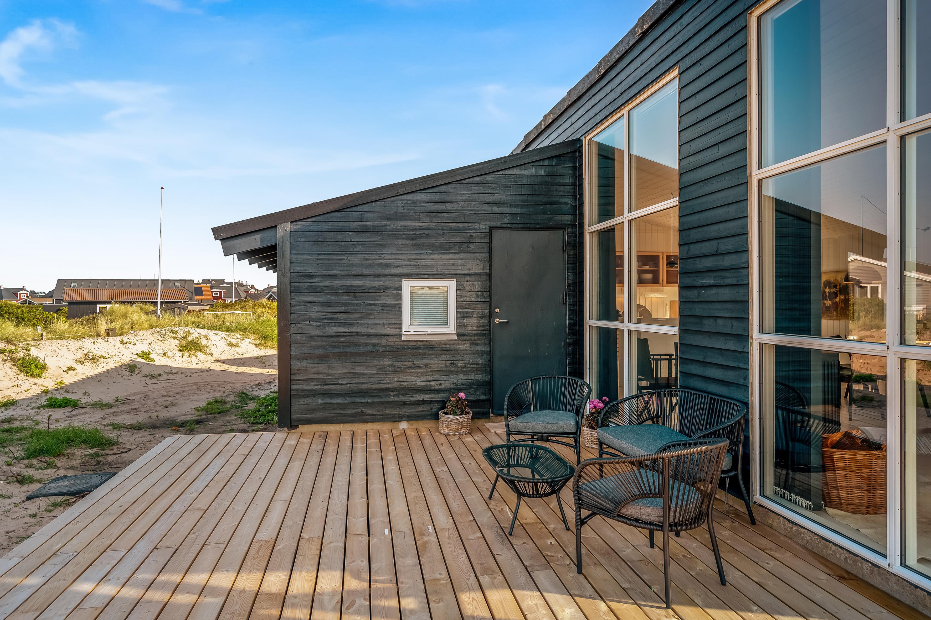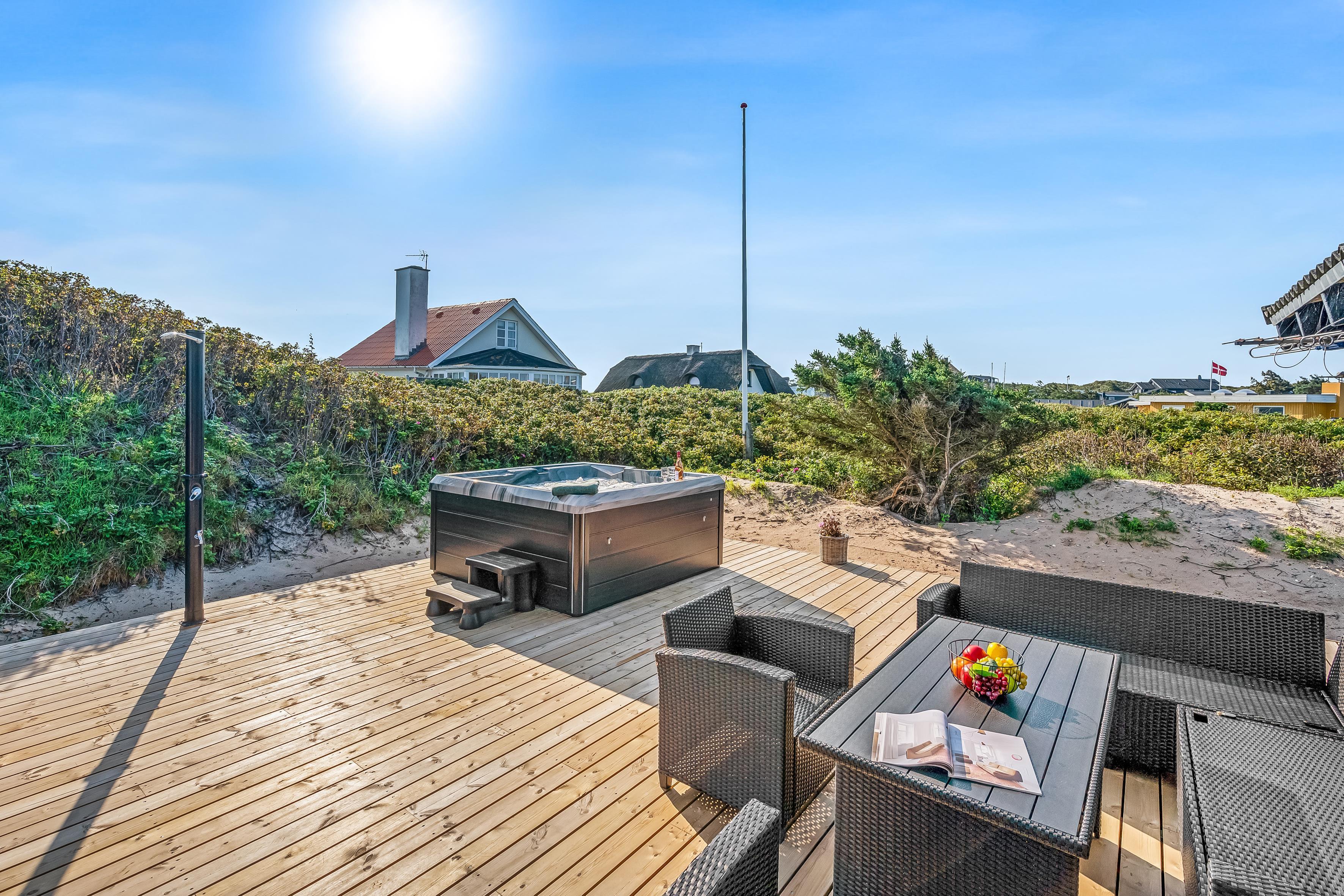 På den store, indbydende terrasse kan du nyde en dejlig grillfest eller slappe af i spabadet og derefter slappe af i det rummelige opholdsområde. Terrassen strækker sig næsten helt rundt om huset, så du finder altid et behageligt sted at slappe af med en god bog eller blot slappe af.