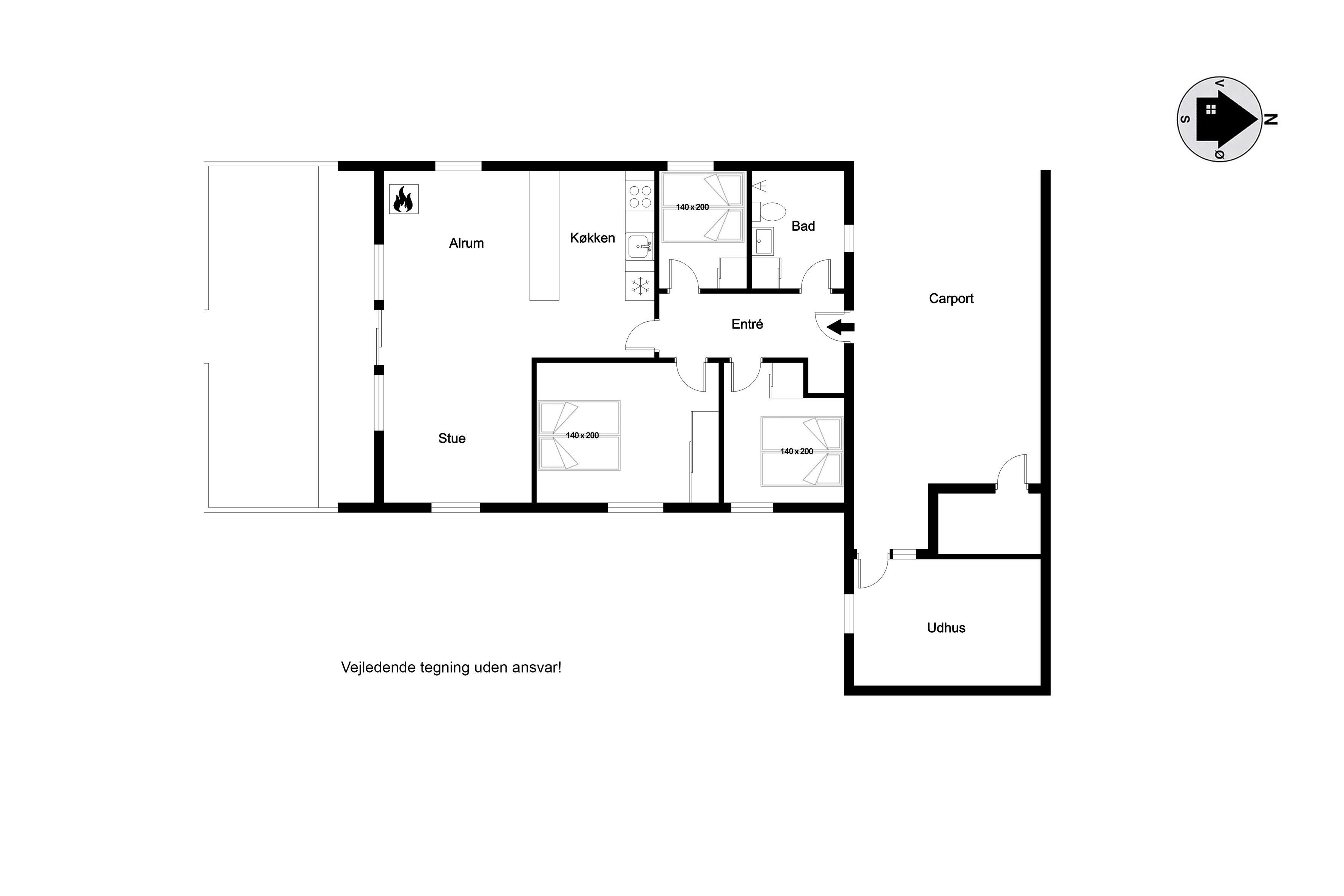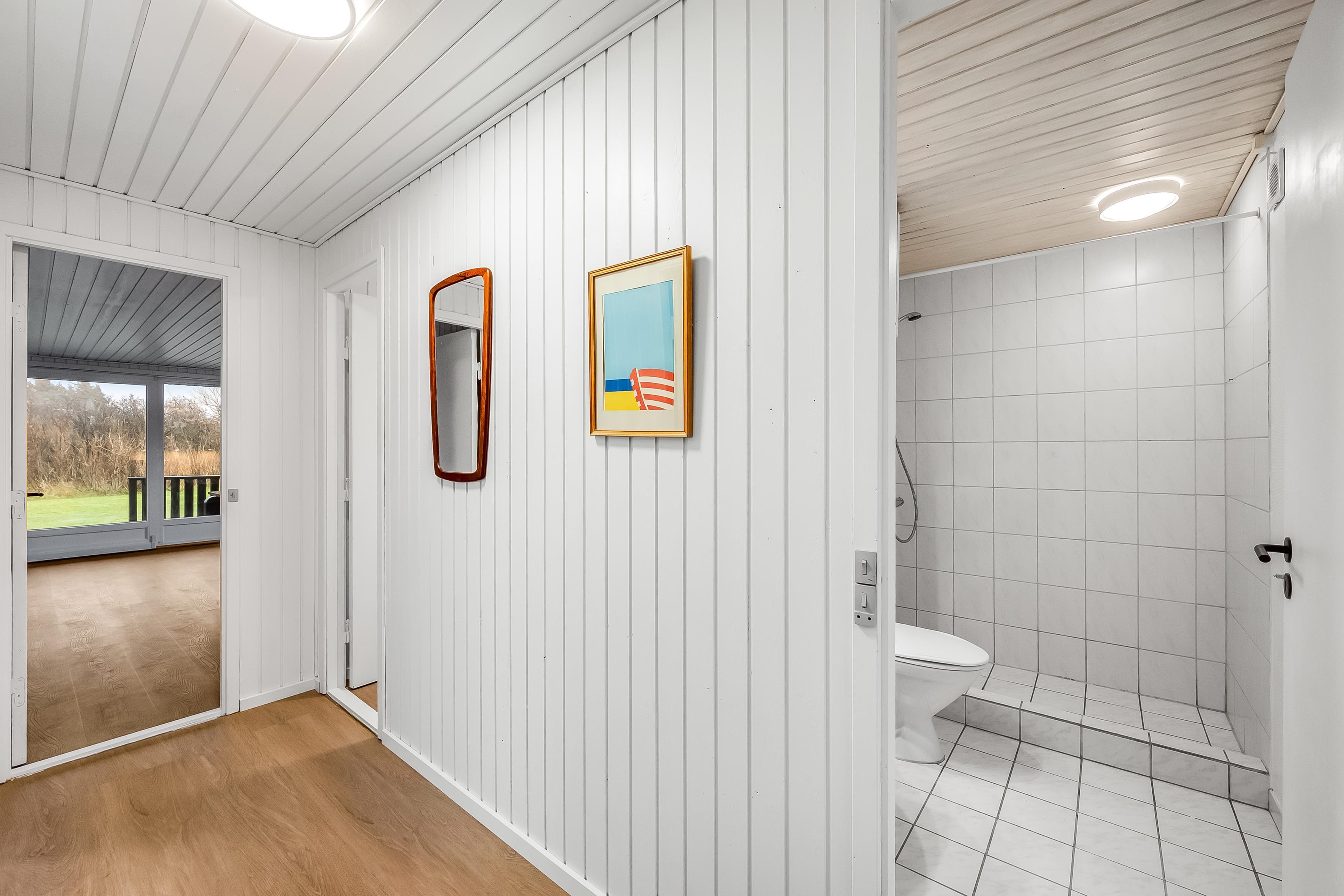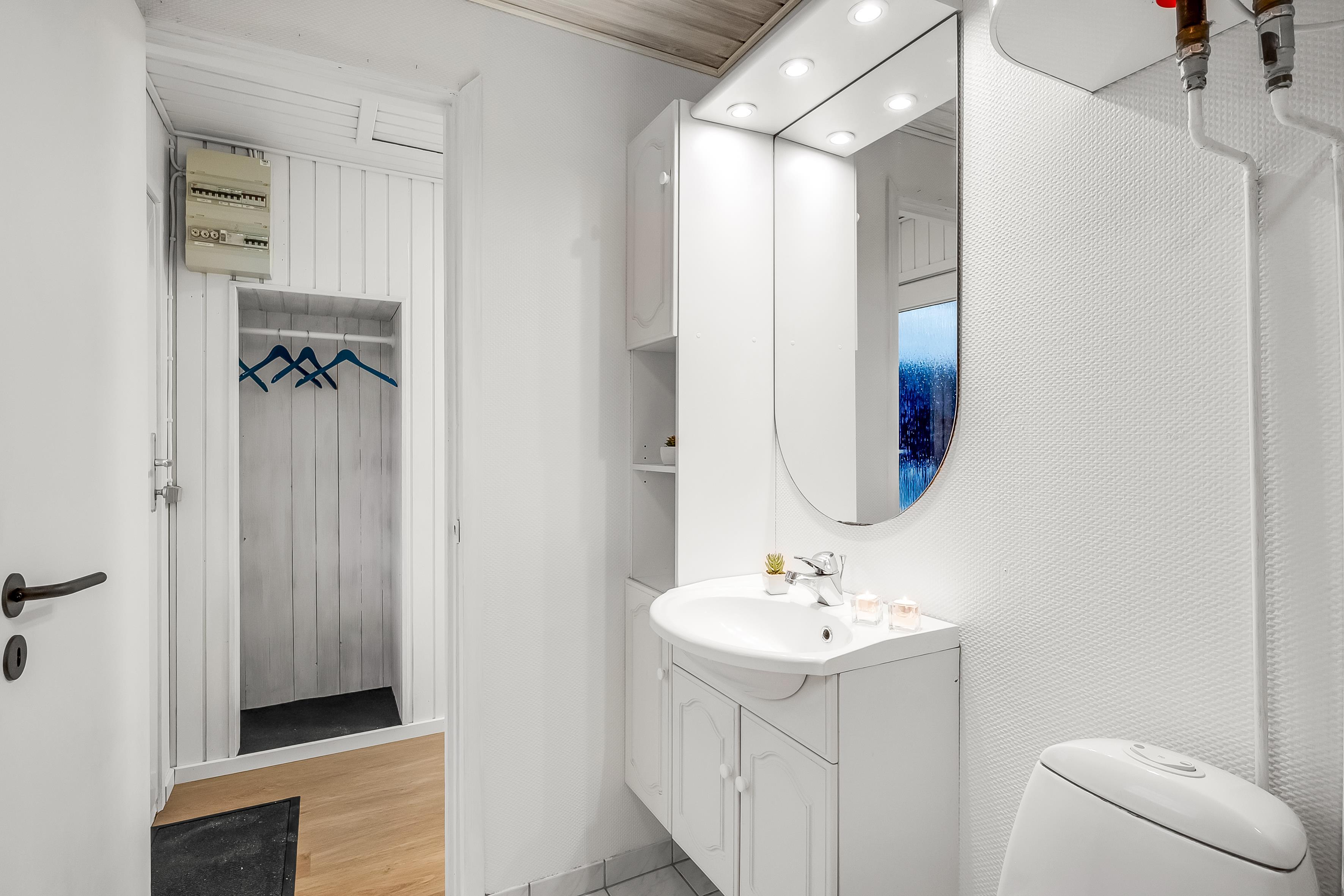 Feriehuset har 3 lyse soveværelser, hvor I kan sove trygt efter en dag fyldt med aktiviteter. Badeværelset er udstyret med bruser og toilet samt et højskab, hvor I kan opbevare jeres personlige kosmetiske ting.