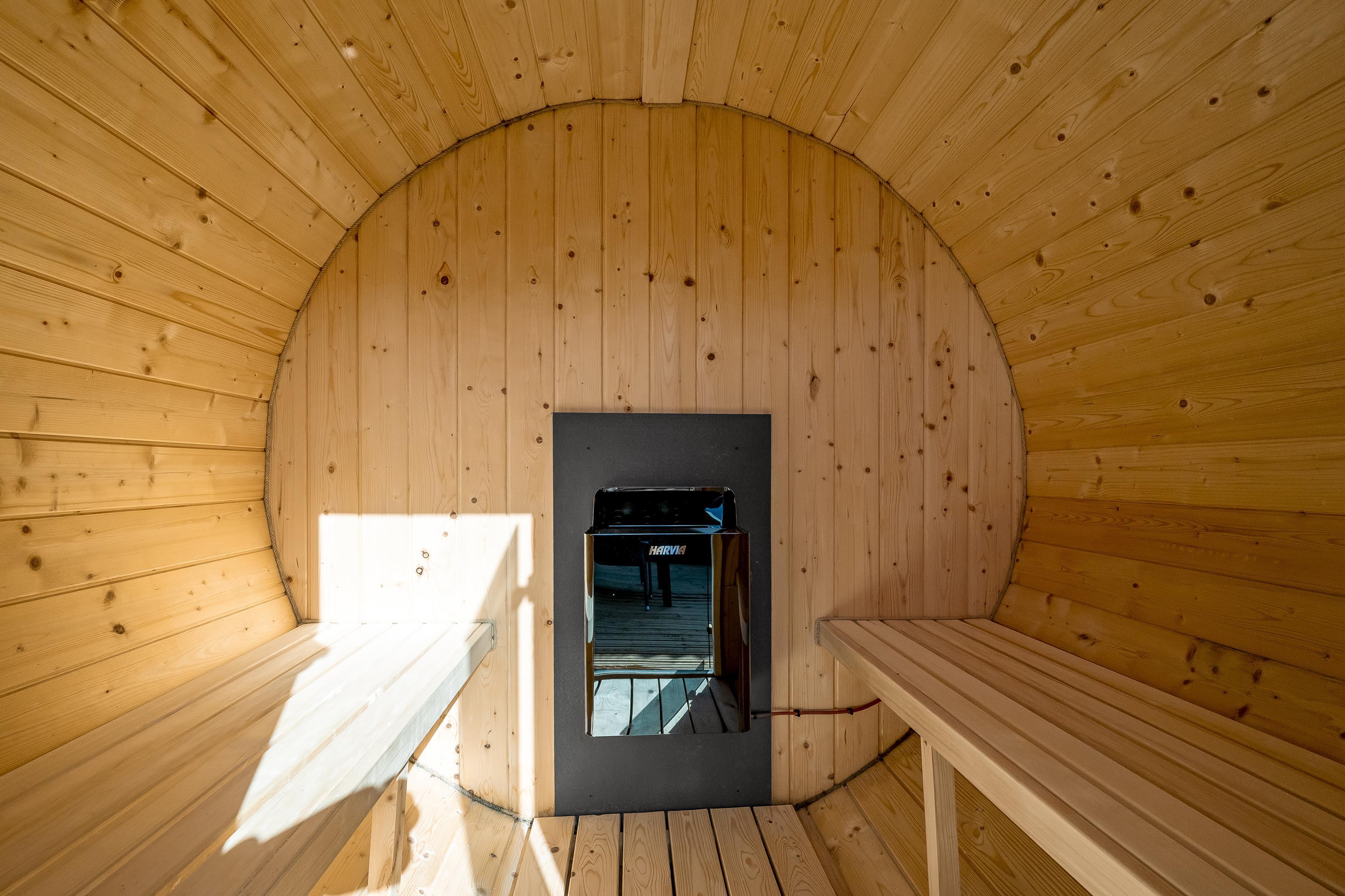 Slap af på den 1.200 m² store grund i den friske luft og nyd omgivelsernes fred og skønhed. Terrassen er delvist overdækket, hvilket gør den til et ideelt sted at slappe af, grille eller spise under åben himmel, selv i køligere vejr. Glem ikke det udendørs spabad og sauna.